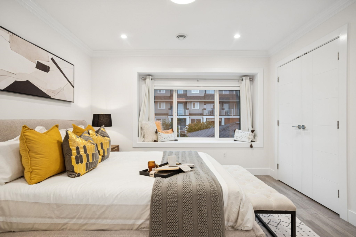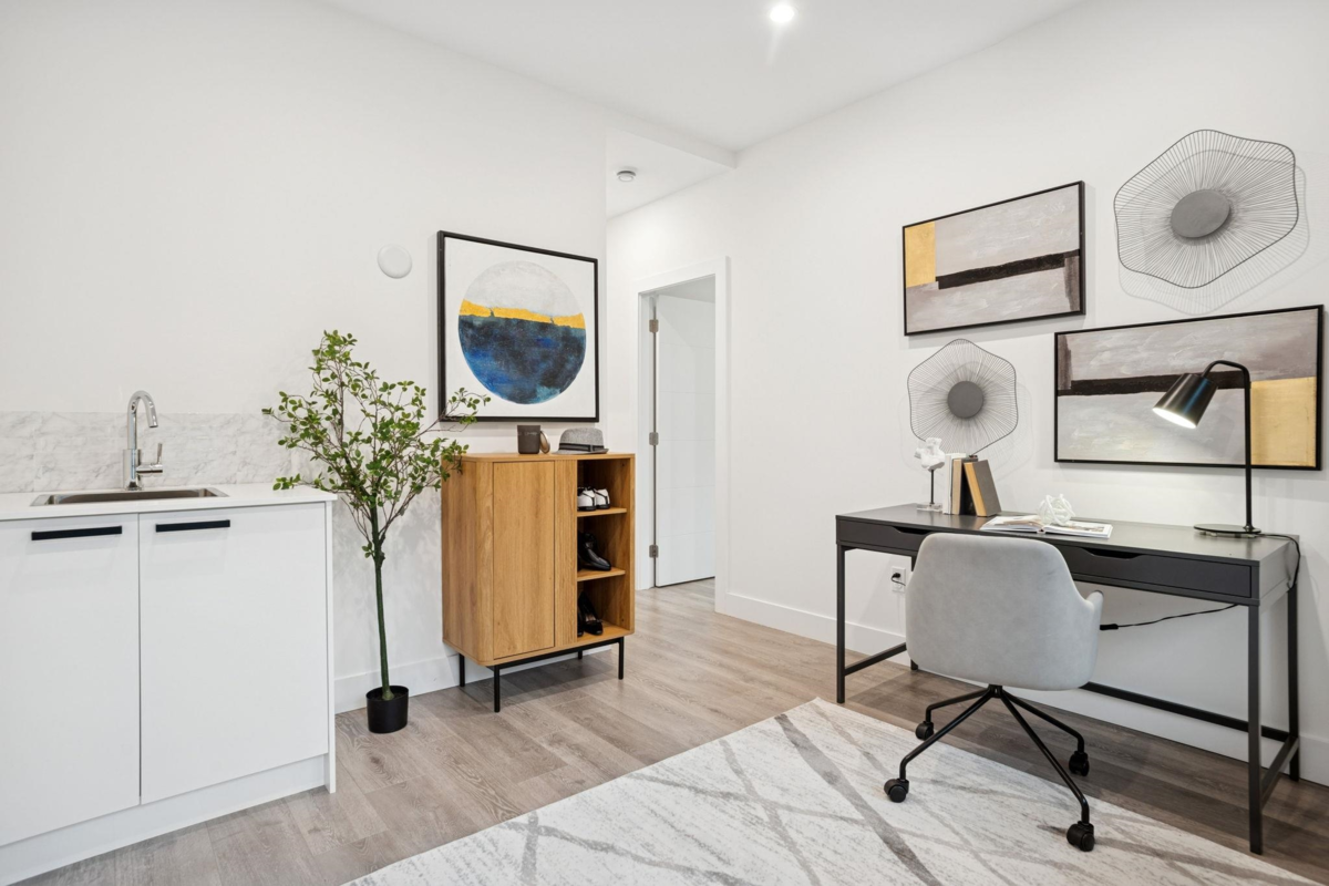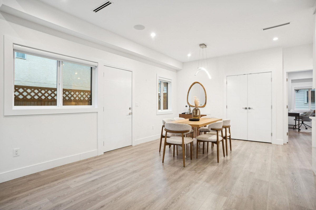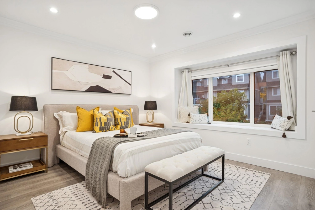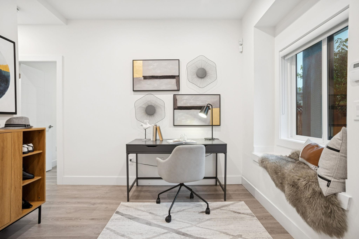 Well-designed 4 bed/4 bath modern duplex blends comfort, style, and function. Bright main living area features over-height ceilings and large windows that invite natural light. A well-equipped kitchen with quality appliances offers space for daily cooking and entertaining, while spa-inspired bathrooms add a relaxing touch. Stay comfortable year-round with radiant in-floor heating and A/C. Smart home features include built-in speakers, central vacuum, and a security camera system. The flexible main floor layout includes a bedroom, den, and full bath with separate entrance—ideal for a mortgage helper or in-law suite. Enjoy a fenced yard, single garage, and extra parking. Conveniently located within walking distance to local parks, community amenities, Highgate Shopping, top-ranked schools.