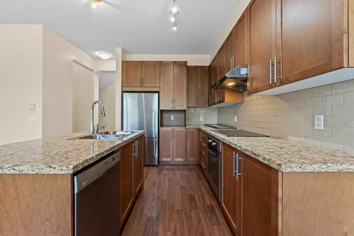 Gorgeous executive townhome at Cathedral Grove by renowned Polygon. Spanning close to 2000 sqft, this 4-bdrm/3.5-bath home offers ideal blend of space, comfort & style. Fresh new paint throughout, Open living/dining rm, separate family rm, gourmet kitchen w/ granite countertops, S/S appliances. Cozy nook opens onto spacious deck, ideal for morning coffee. 3 generously sized bdrms & 2 baths upstairs, walk-in closet in master bdrm. Ensuite bdrm in lower level, perfect for teens/guests/office. side-by-side 2-car garage. Clubhouse features outdoor pool/hot tub/gym/lounge/theatre. Prime location: walk to Sunnyside Elem, Southridge School, Morgan Crossing shops/restaurants. Minutes to Community Centre, Hwy 99. Assessment $1,041,000. Excellent to live-in or invest.