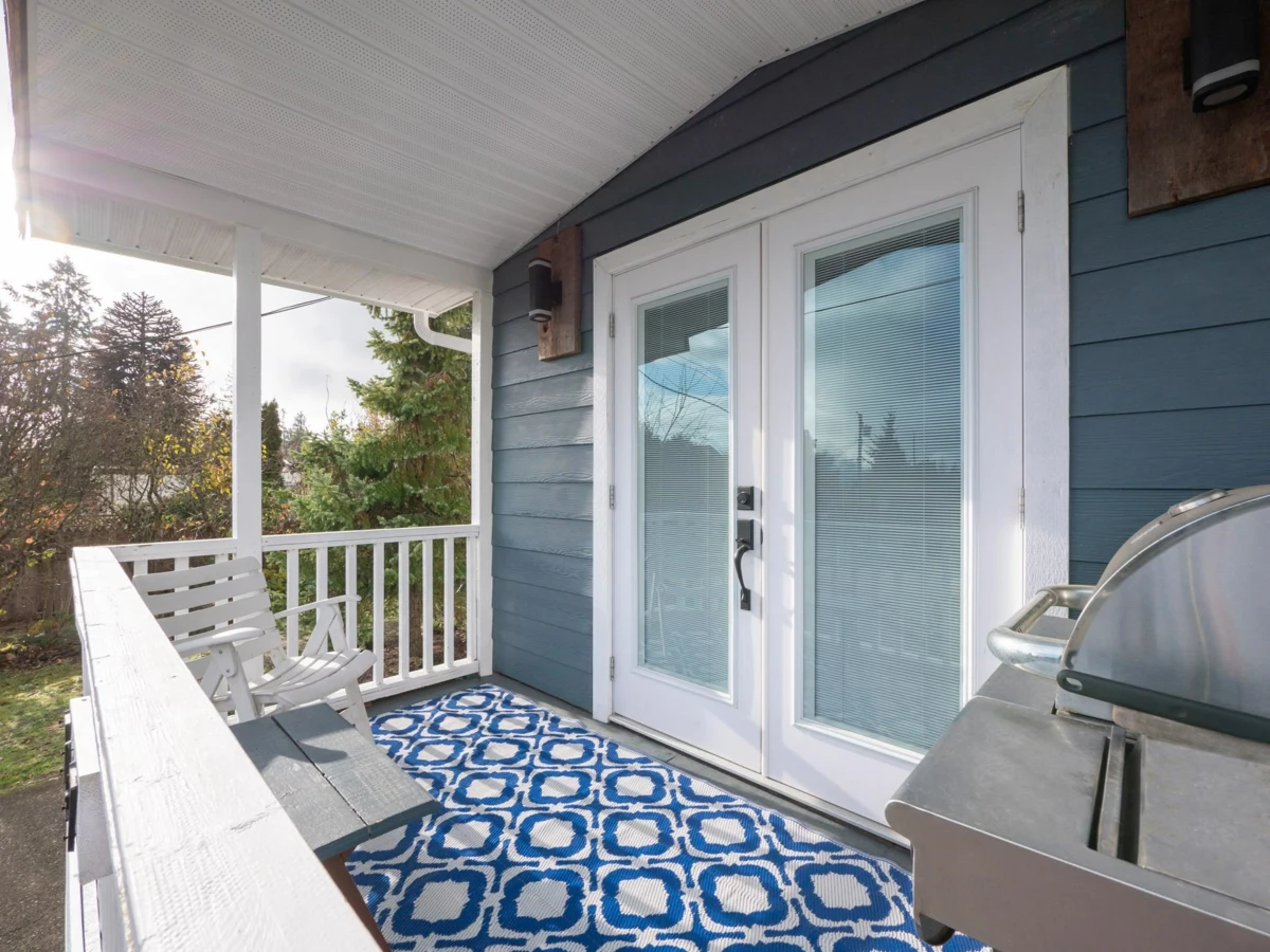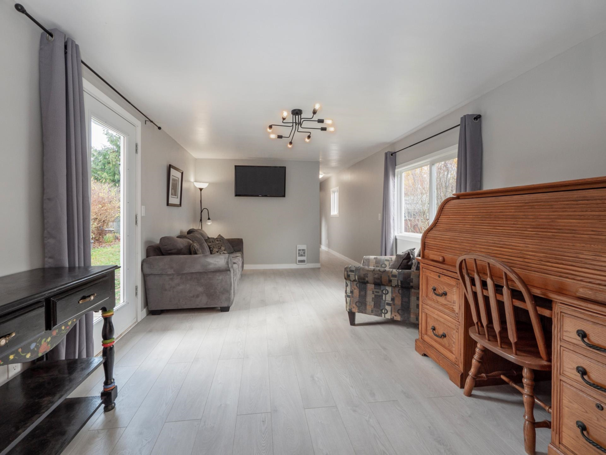 Affordable Renovated Home in Central Gibsons - Own this updated 2-bed, 1-bath home on a sunny lot in Gibsons - Extensively renovated in 2021, it features a modern kitchen with stainless steel appliances, gas range, IKEA cabinets, and French doors leading to a covered front porch. Enjoy newer windows, flooring, washer/dryer, and a living room ready for a gas fireplace. The west-facing back deck, fenced yard, workshop, and covered storage add to its appeal. With a new roof and CSA certification, this move-in-ready home is within walking distance to all amenities. Ask your REALTOR for full list of upgrades.
