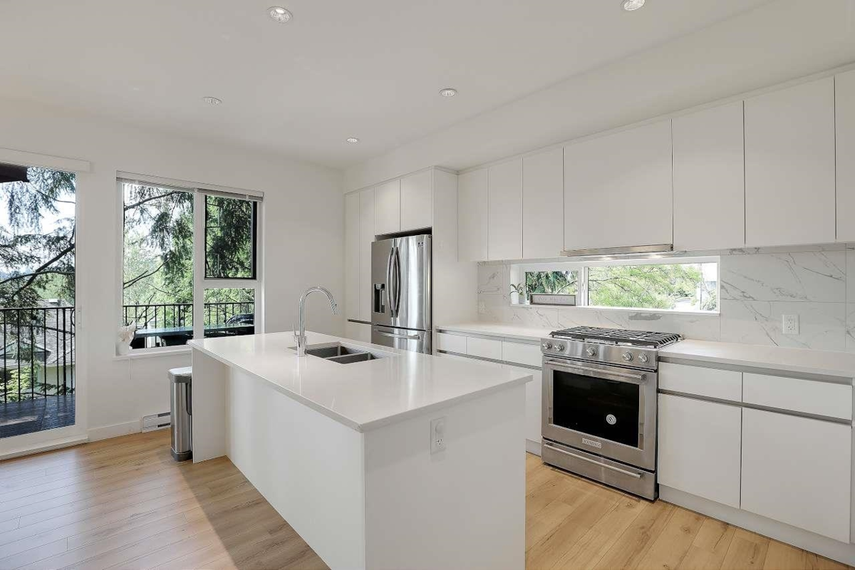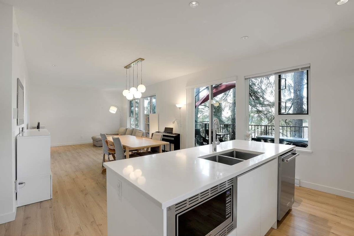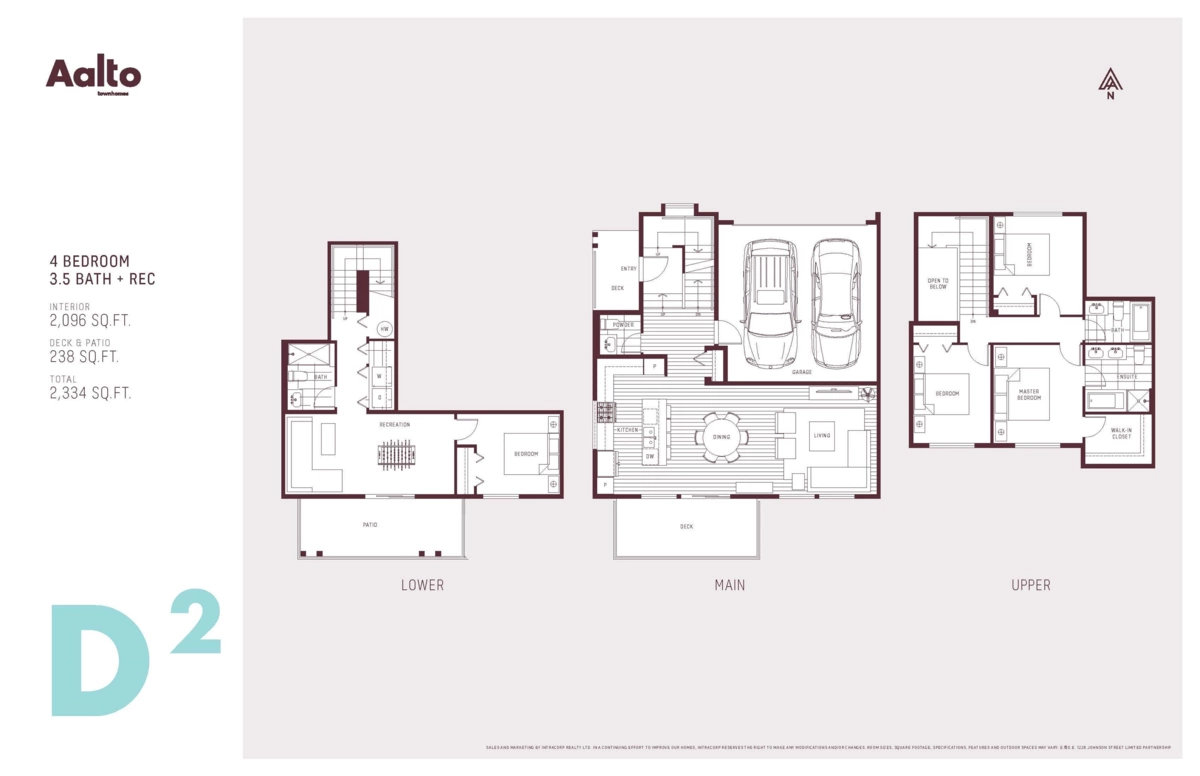 Welcome to Aalto by Intracorp — a quality-built, centrally located 4-bed, 3.5-bath duplex. Enjoy bright south-facing living and dining areas, an oversized kitchen island with seating, and chef-grade KitchenAid appliances with modern cabinetry and stone countertops. Upstairs features 3 bedrooms and 2 full baths. The lower level includes a large rec room with balcony access, a guest bedroom, and full bath. Side-by-side double garage is EV-ready. Walk to schools, parks, trails, shopping, and SkyTrain. School catchment: Walton Elementary, Scott Creek Middle, Gleneagle Secondary.