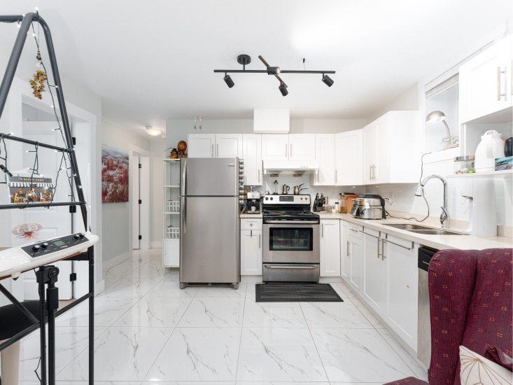 A Perfectly Curated Home for Modern Living! This 3,672 sq. ft., 3-level home blends contemporary elegance with traditional charm, featuring 7 bedrooms, 5 bathrooms, a legal 2-bedroom suite, and a 1-bedroom in-law/mortgage helper. The upper level has 3 spacious bedrooms, while the main floor includes a guest bedroom with a full bath. Enjoy a gourmet chef’s & wok kitchen with quartz countertops, pantry & ample storage, an elegant family room with built-ins, 12’ ceilings, radiant heat, A/C, HRV, security cameras & new home warranty. A covered patio is perfect for year-round BBQs, with a grassy backyard & gated driveway leading to a 2-car garage. Backs onto Ron McLean Park, minutes to schools, Highgateisopping, golf course, restaurants & SkyTrain.