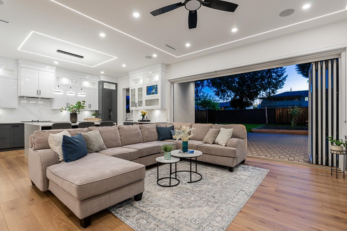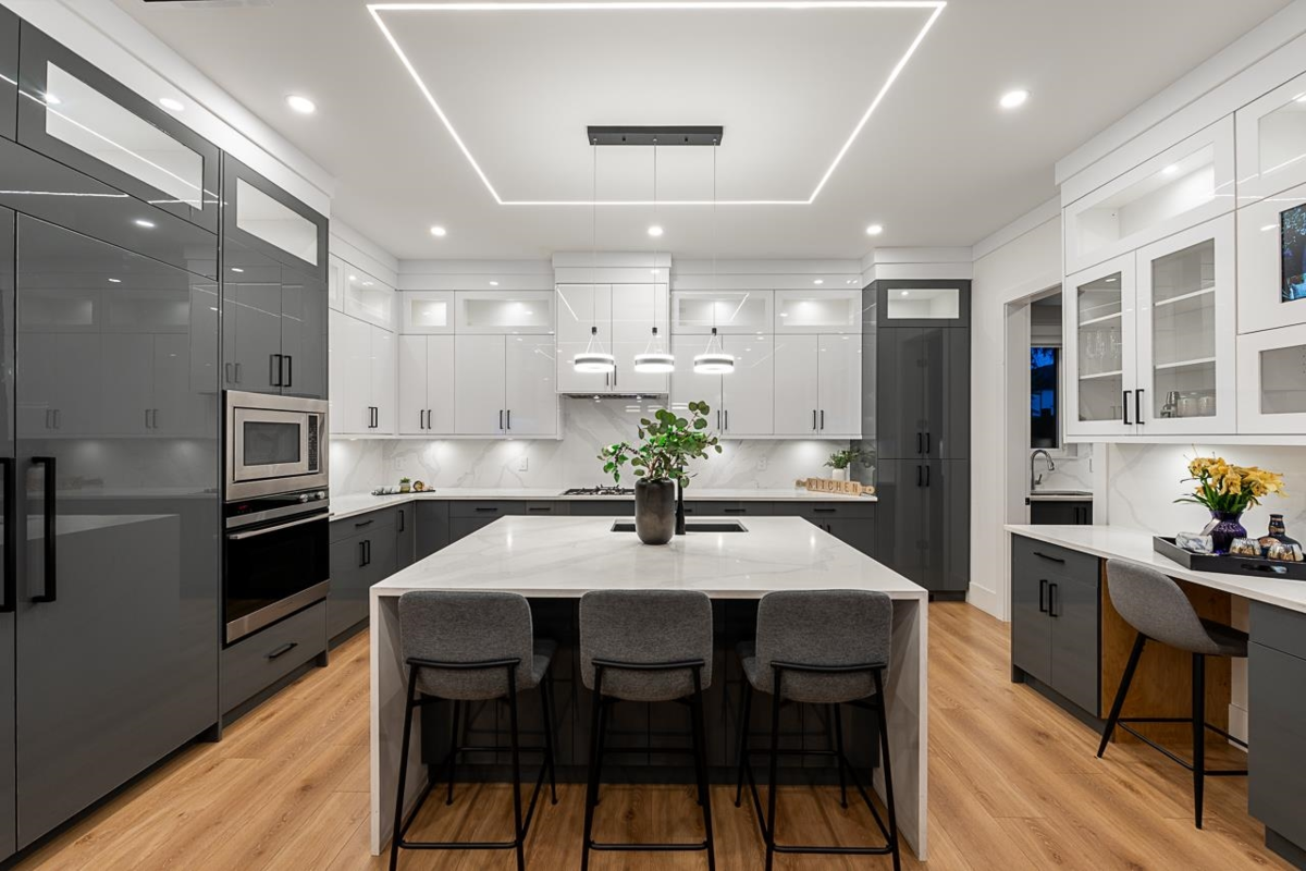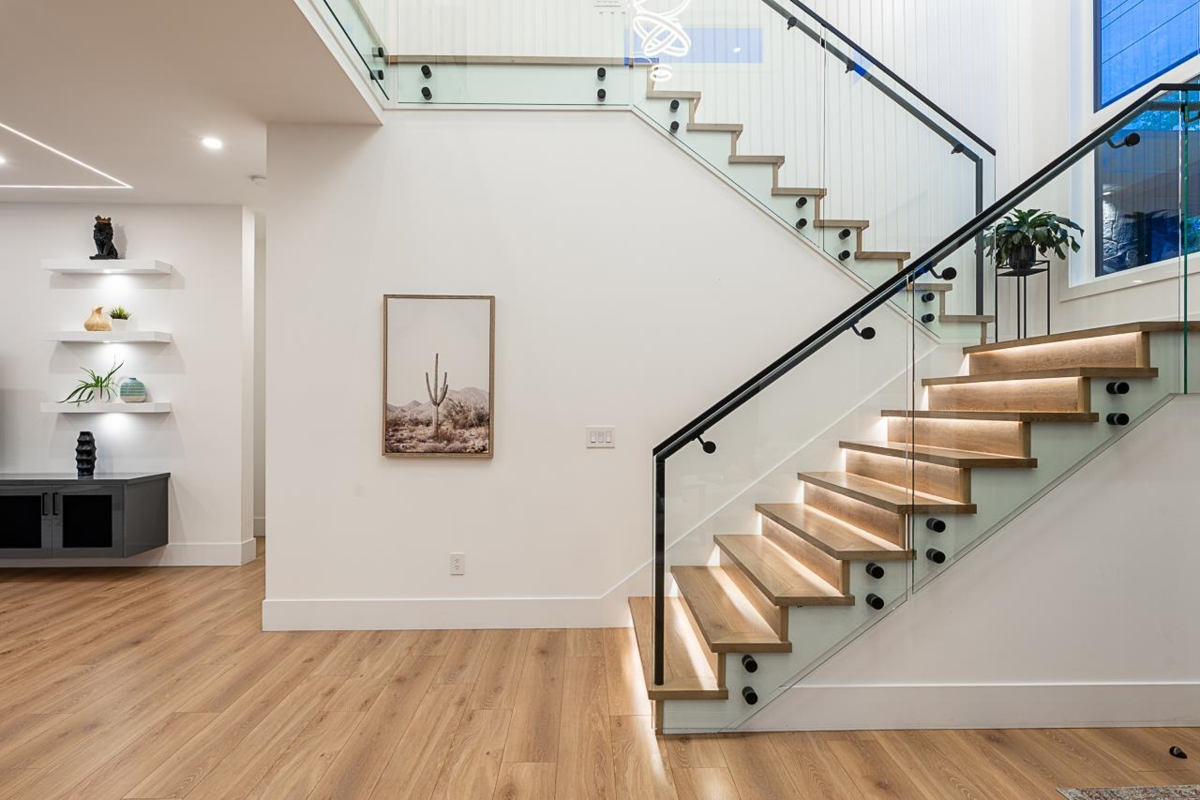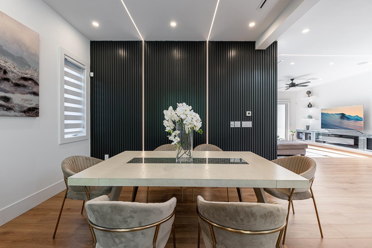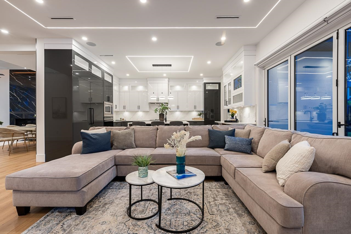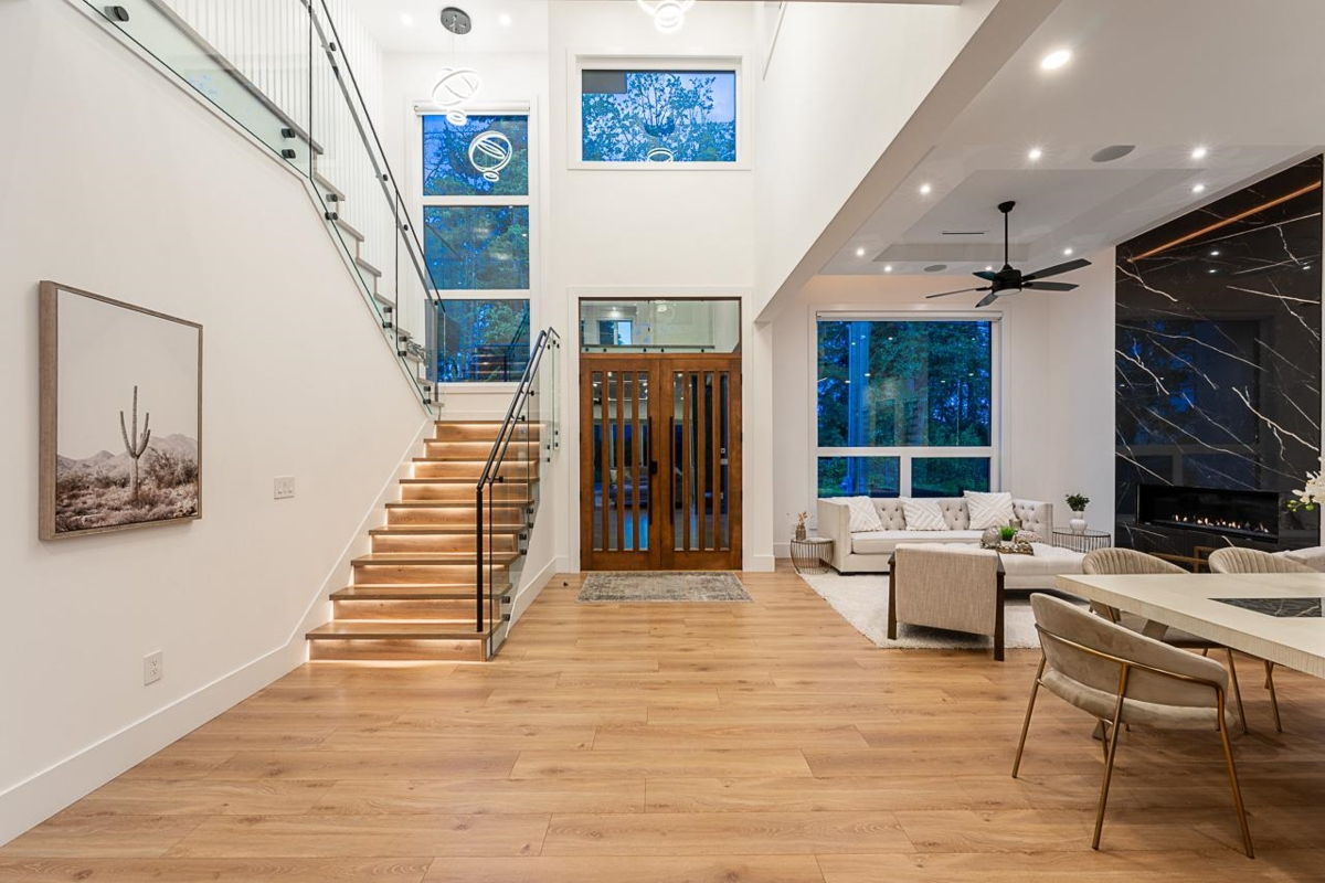 Exquisite Custom-Built Luxury Home- Experience unparalleled elegance in this custom-built home, boasting over 3,700 sq ft of luxurious living on a generous 7,200 sq ft lot in Surrey, BC. The impressive entryway captivates with 20-foot soaring ceilings, oversized windows, and a bespoke wood front door hinting at exceptional craftsmanship. Discover imported wide-plank Spanish flooring, sleek glass railings, and modern ceiling strip lighting. The expansive family area flows effortlessly to the backyard through 15-foot glass folding doors, perfect for entertaining. Enjoy 12-foot ceilings in the living area and 10-foot ceilings throughout, enhancing spaciousness. This magnificent property also features two separate 1-bedroom suites, offering excellent rental income potential.