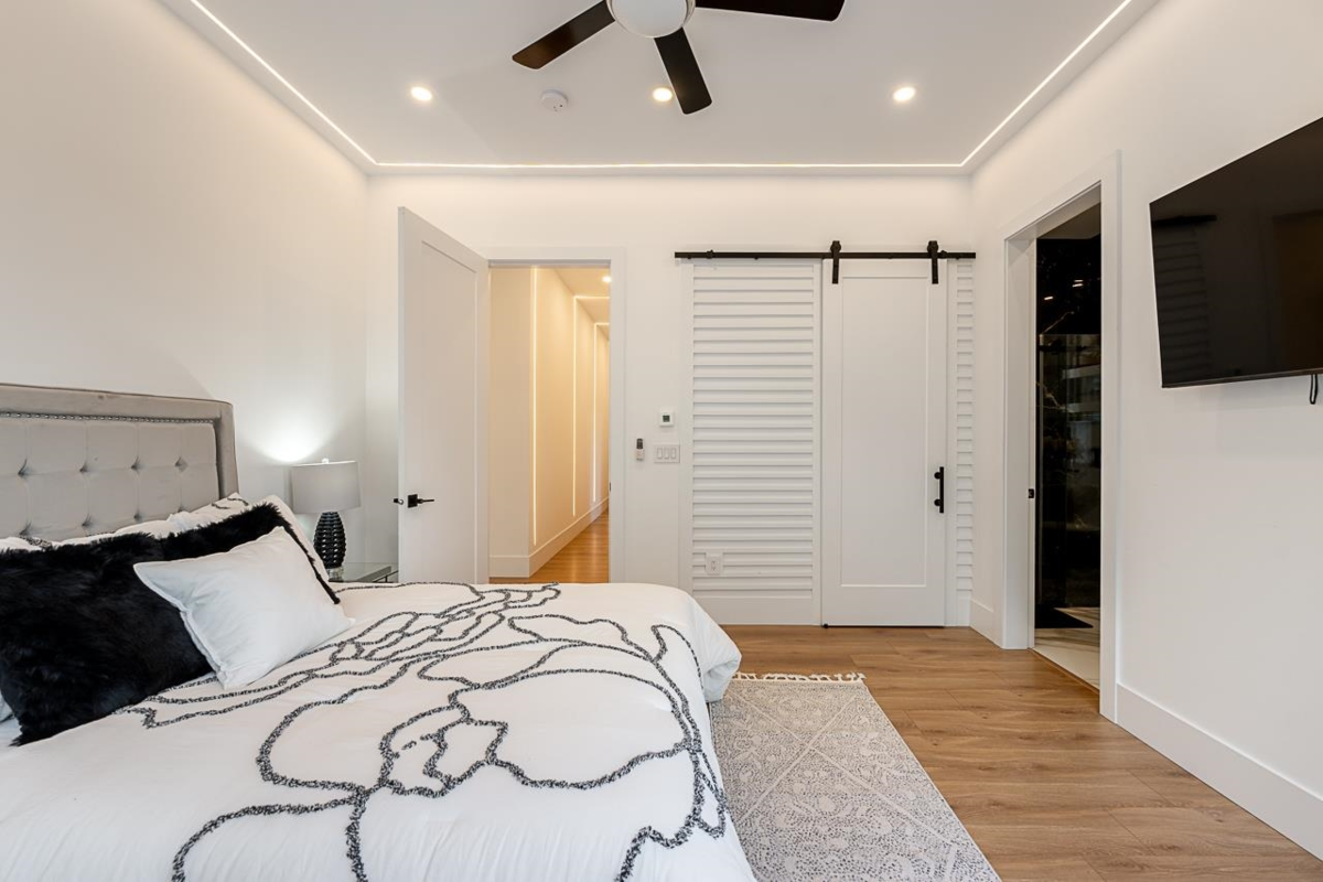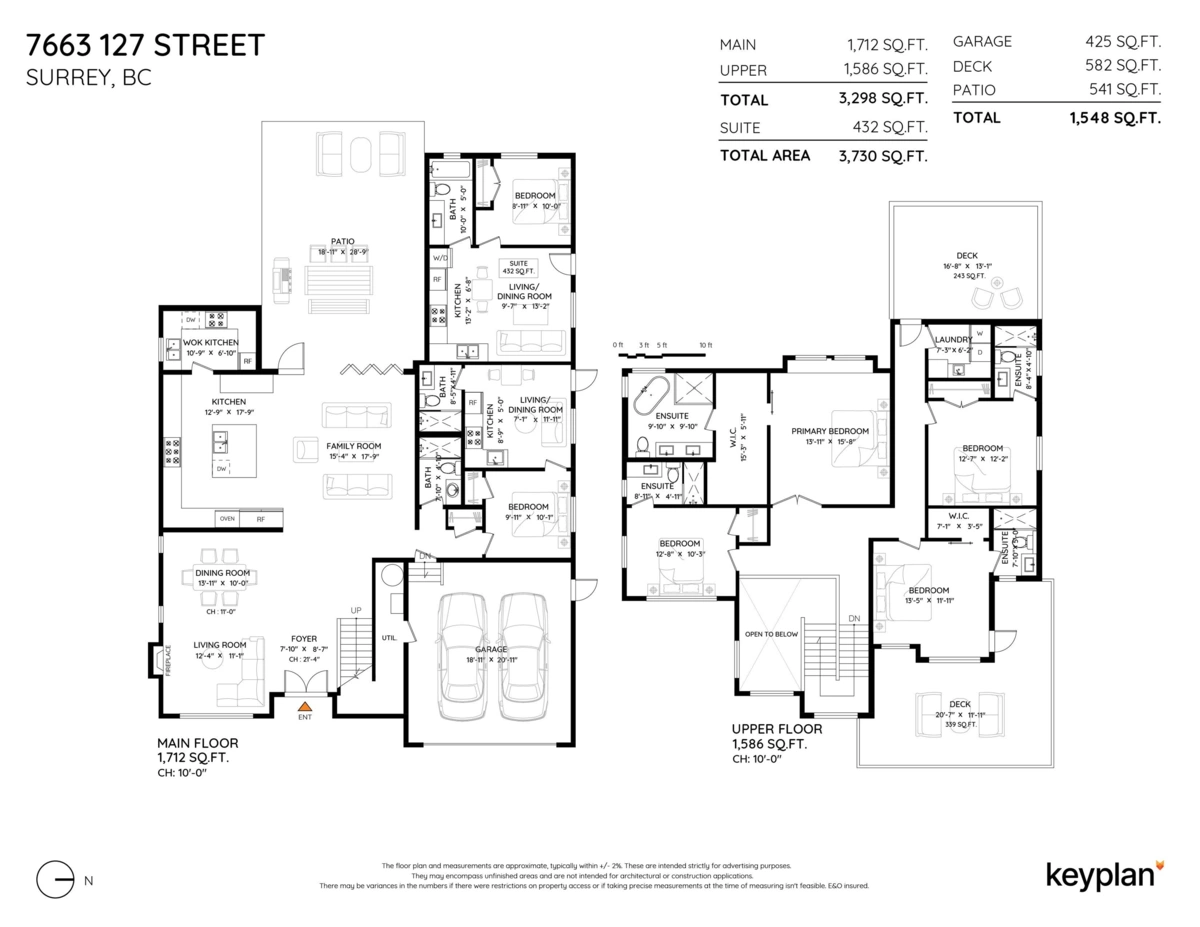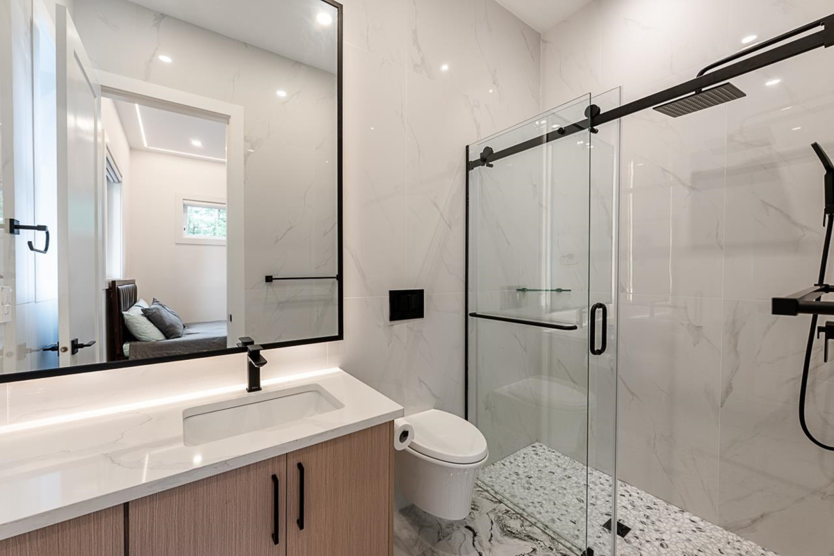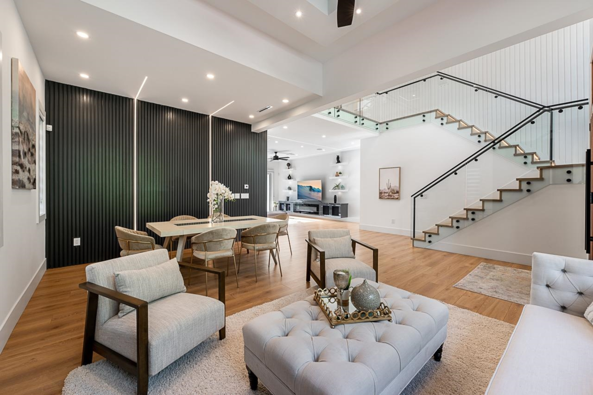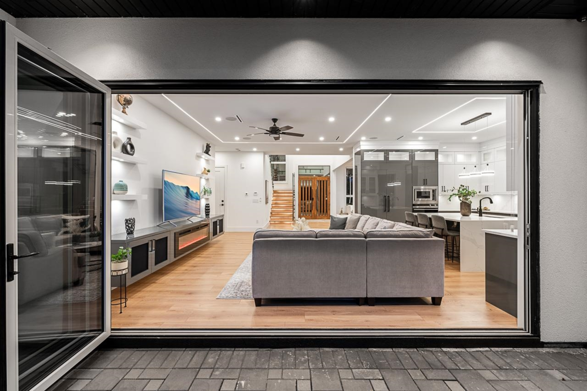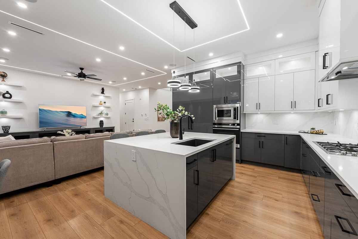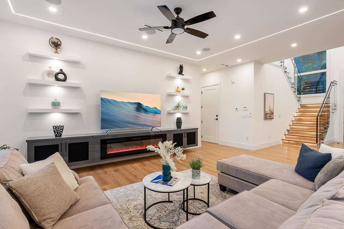 Exquisite Custom-Built Luxury Home- Experience unparalleled elegance in this custom-built home, boasting over 3,700 sq ft of luxurious living on a generous 7,200 sq ft lot in Surrey, BC. The impressive entryway captivates with 20-foot soaring ceilings, oversized windows, and a bespoke wood front door hinting at exceptional craftsmanship. Discover imported wide-plank Spanish flooring, sleek glass railings, and modern ceiling strip lighting. The expansive family area flows effortlessly to the backyard through 15-foot glass folding doors, perfect for entertaining. Enjoy 12-foot ceilings in the living area and 10-foot ceilings throughout, enhancing spaciousness. This magnificent property also features two separate 1-bedroom suites, offering excellent rental income potential.