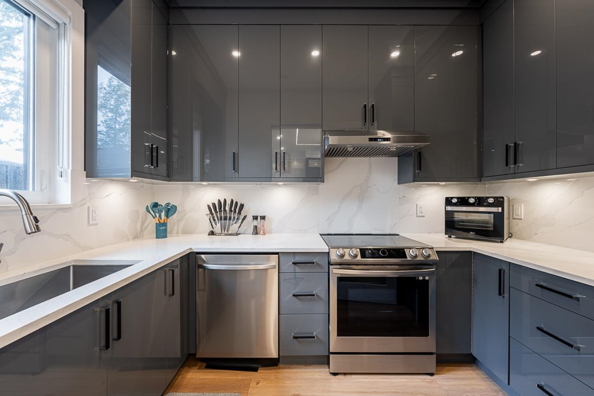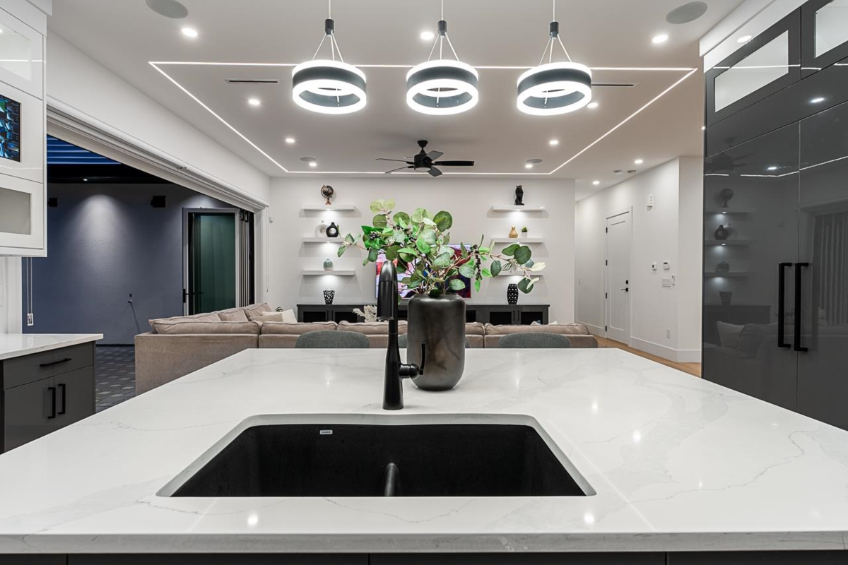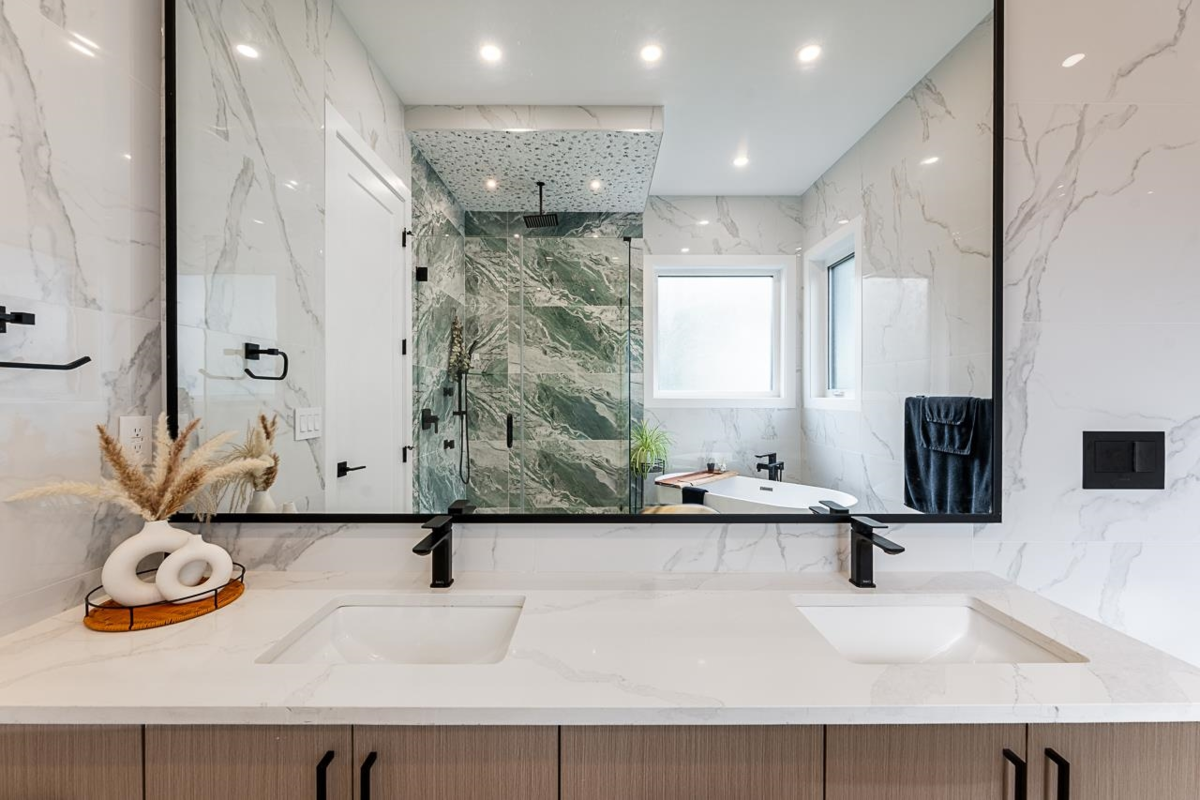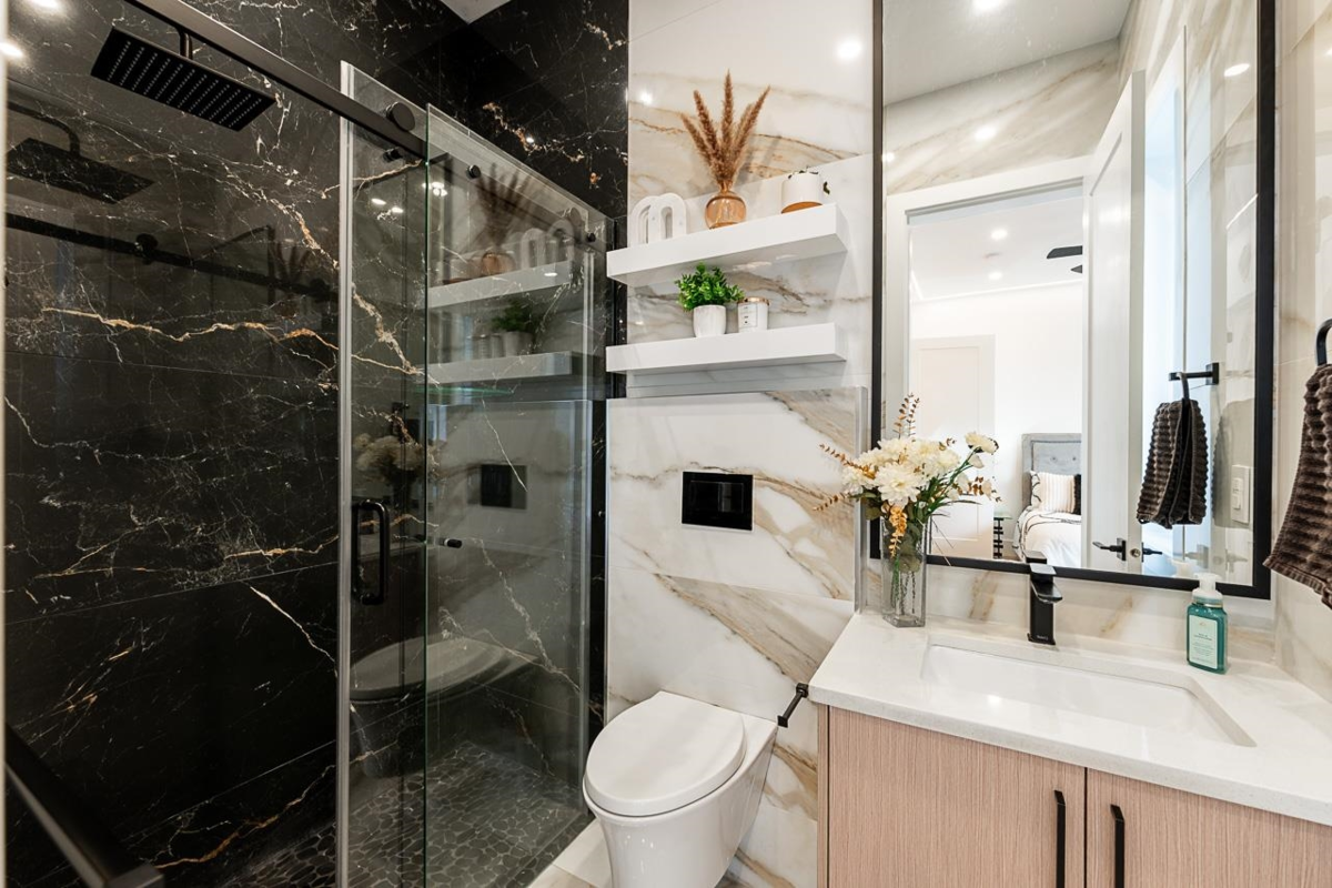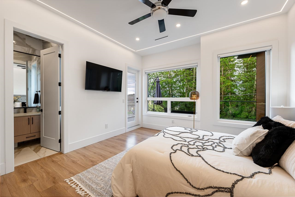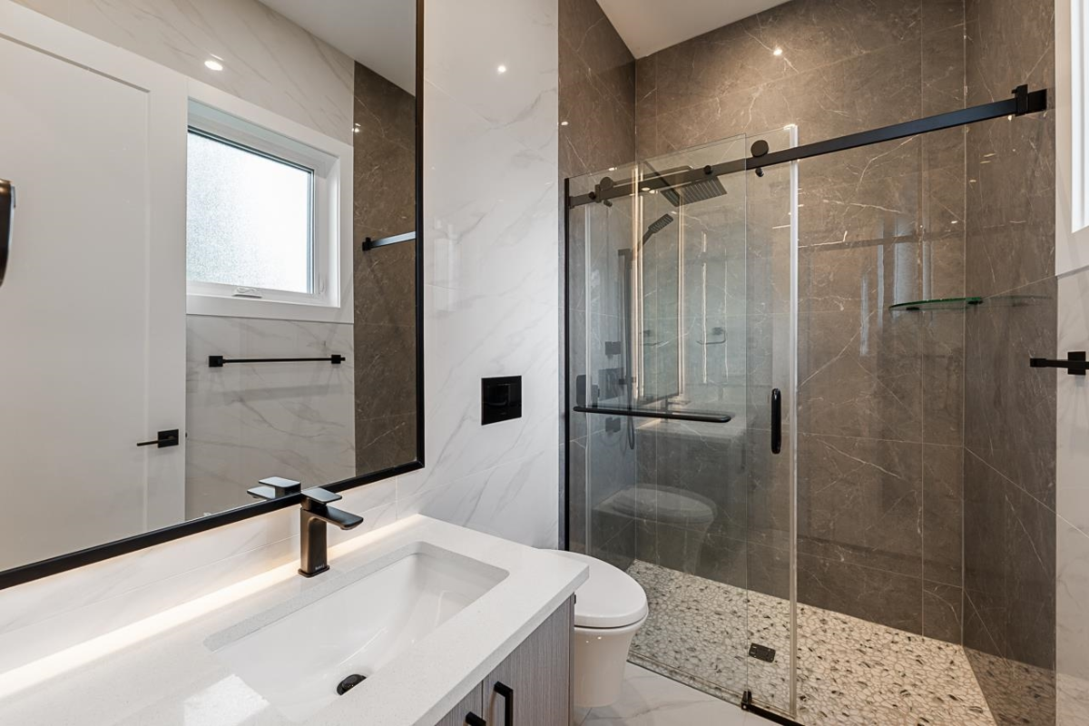 Exquisite Custom-Built Luxury Home- Experience unparalleled elegance in this custom-built home, boasting over 3,700 sq ft of luxurious living on a generous 7,200 sq ft lot in Surrey, BC. The impressive entryway captivates with 20-foot soaring ceilings, oversized windows, and a bespoke wood front door hinting at exceptional craftsmanship. Discover imported wide-plank Spanish flooring, sleek glass railings, and modern ceiling strip lighting. The expansive family area flows effortlessly to the backyard through 15-foot glass folding doors, perfect for entertaining. Enjoy 12-foot ceilings in the living area and 10-foot ceilings throughout, enhancing spaciousness. This magnificent property also features two separate 1-bedroom suites, offering excellent rental income potential.