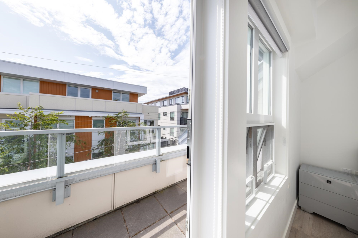 It's Real Townhouse. Not Stacked Townhouse or Apartment townhouse; This meticulously crafted townhouse is tucked away in a quiet Vancouver West community, known as “Cherry Blossom Street.” Set in the back row for peace and privacy, it also offers access to top school catchments. A spacious private garden is perfect for play or weekend BBQs, while hardwood floors, central A/C, heating, and Miele appliances ensure year-round comfort. The primary suite boasts 10’ ceilings, a bright ensuite, and balcony storage. The basement includes an oversized EV-ready parking stall with direct entry and a versatile multipurpose room has heater and HRV for office, playroom, or storage. A dedicated bike room completes this ideal family home. *** Open House Nov 30 Sunday 2-4pm ***