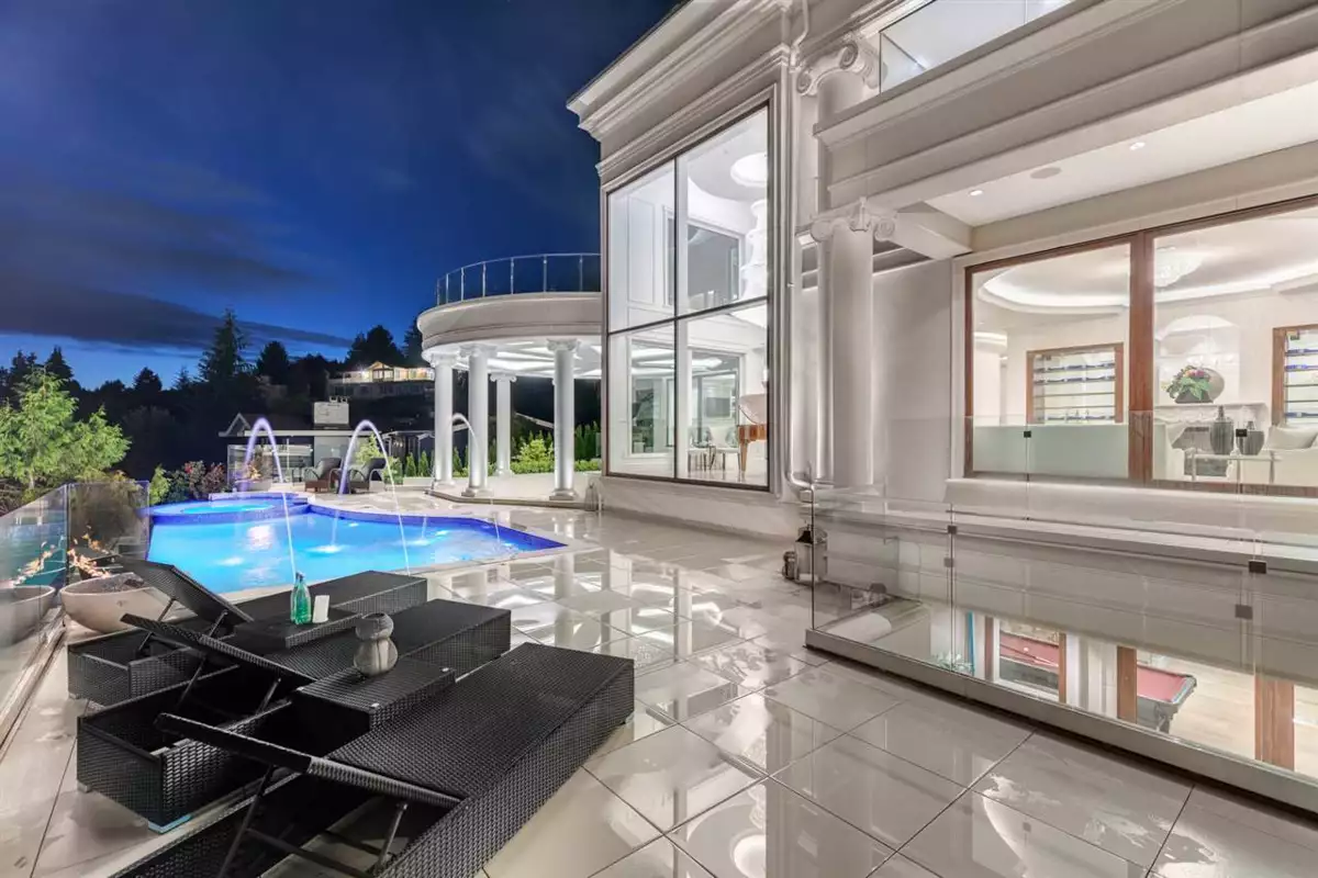 Spectacular 180 wide panoramic view of ocean, city, & Lions Gate Bridge. This gorgeous 8000+ sqft home located in most prestigious BP. Featuring an open concept plan offering 6 bdrm, 8 bath. Expansive living across three levels, main features an impressive grand foyer and living room, crystal chandelier, the highest quality appliances, granite island and counter top, large entertainment size family room and dining room leading out to a private terrace and infinity edge pool. 4 luxurious bedrooms up ensuited & walk in closets! The lower level features a games area with full bar, theatre, sauna, gym & yoga area, rec room, plus two guest suites! Close to shopping, ski & golf course. Top catchment schools: Chartwell Elementary & Sentinel Secondary. Public Open house on Sat -2 - 4pm, Nov 22nd.