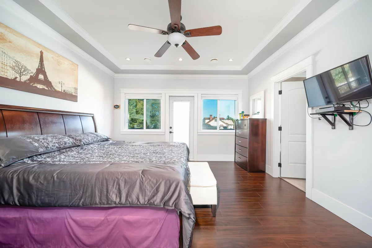 Absolutely a masterpiece of professionally designed and built on a large 6435 Sqft lot in most desirable Moody Park area. Finished 3938 Sqft W/elegance & sophistication, designed to elevate your lifestyle to new heights. Step into the solid grand foyer, greeted by soaring crown molding ceilings and an abundance of natural light, sparkling crystal chandeliers. This well maintained home boasts 8 bdrms, 6 baths, an open floor plan with a chef kitchen SS appliances, custom floor to ceiling cabinetry, and a large quartz island. It equipped with Radiant Heat W/4 Zone Control, Security Sys w/4 HD Cameras, HRV, AC & irrigation system. 1 parent's room on main w/3 pcs baths. 4 bdrms upstairs. 1 bedrm legal suite & 2 bedrooms downstairs w/ separate entry will bring you $3000 more per month. COME ON!