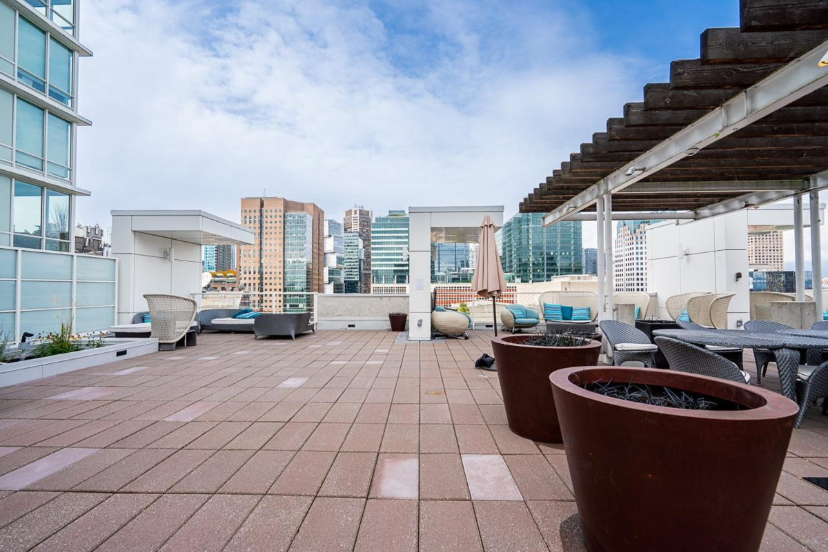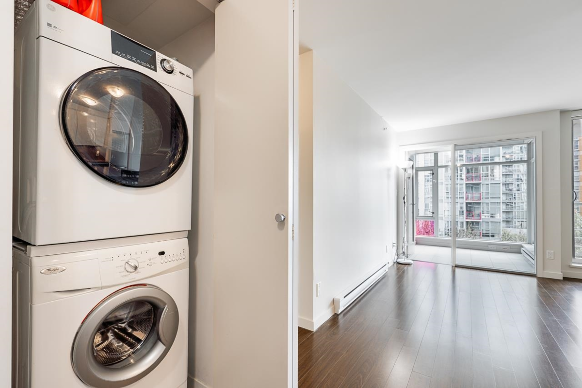 This one offers all the perks that you are looking for! Bright & spacious 1 bed + den + solarium comes with 1 parking + 1 storage locker + 1 bike locker, located at the quiet side of the building with greenery courtyard/city & peak of water views. Featuring smart efficient layout with no wasted space; floor to ceiling windows; good sized bedroom easily fits a king sized bed; versatile den and solarium can be used for office, additional storage, nursery or even a small bedroom. Great location, walk to Skytrain, Costco, Rogers Arena, restaurants, etc. everything that downtown Vancouver offers. Residents enjoy 24hr concierge, exclusive access to indoor swim pool, gym, bowling alley, sauna/steam room, rooftop terrace with bbq/hot tub and much more.