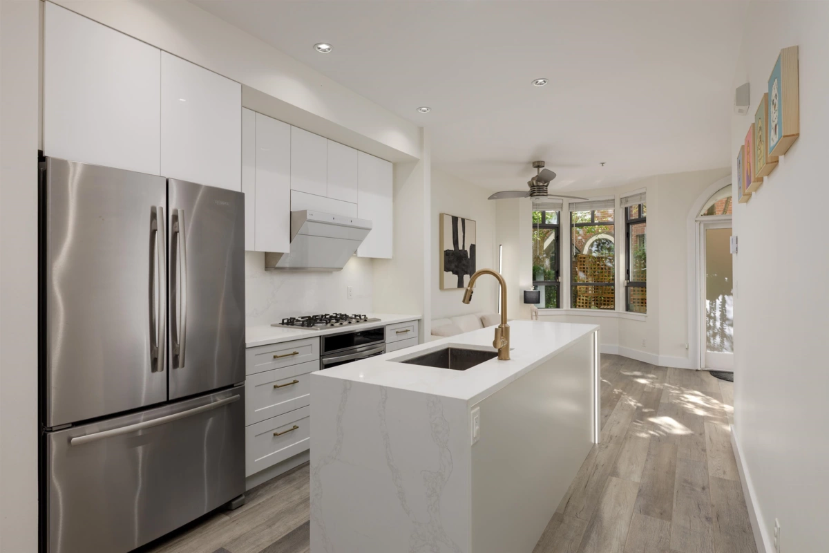 Welcome to Boxwood Green, an exceptional boutique townhome in one of Vancouver’s most desirable West Side neighbourhoods. This beautifully maintained residence offers 3 bedrooms, 3 bathrooms, and 1,636 sqft of well-designed living space. The main floor features open-concept living, dining, and kitchen areas with a brand-new gourmet kitchen, high-end appliances, and access to a quiet south-facing courtyard patio. Upstairs are two spacious bedrooms, while the top floor is a private primary suite with walk-in shower, soaker tub, and balcony. The lower level includes a flexible family room and powder room, perfect for guests or an office. Side-by-side double gated garage, freshly painted, move-in ready, steps to dog park, Granville Island, whole foods and the future SkyTrain station.