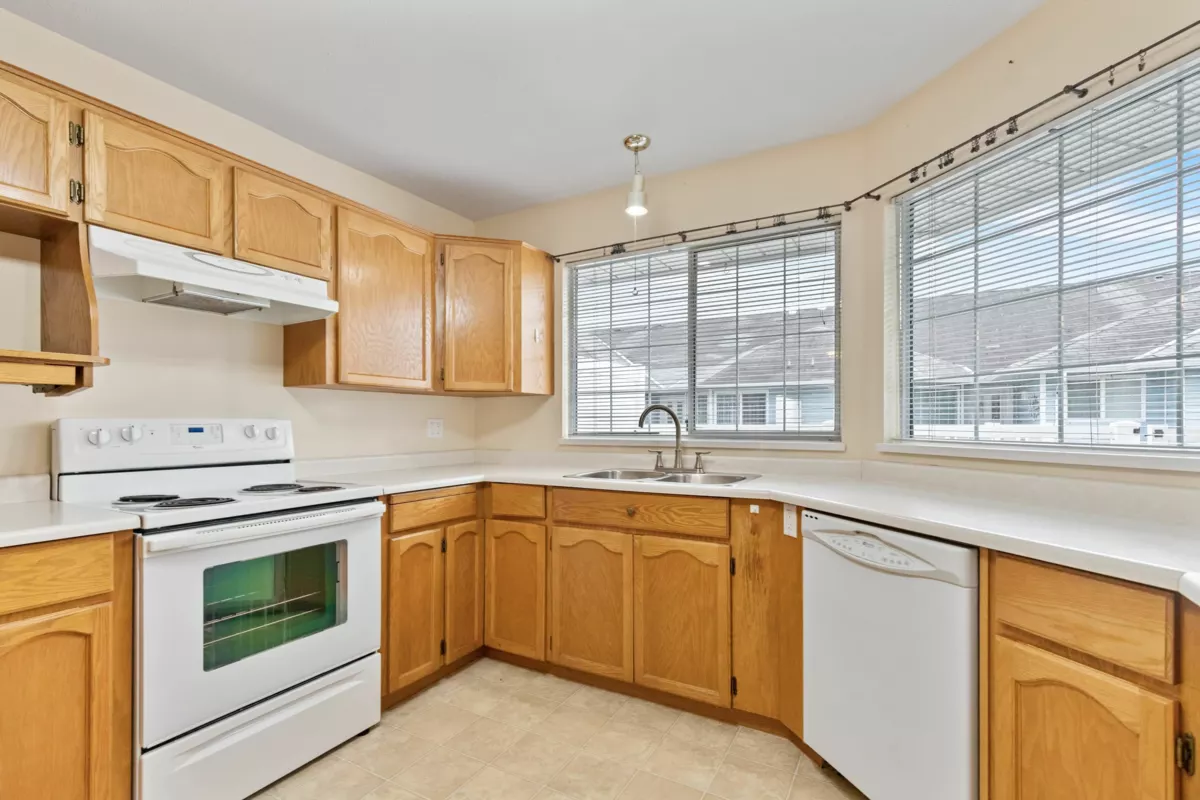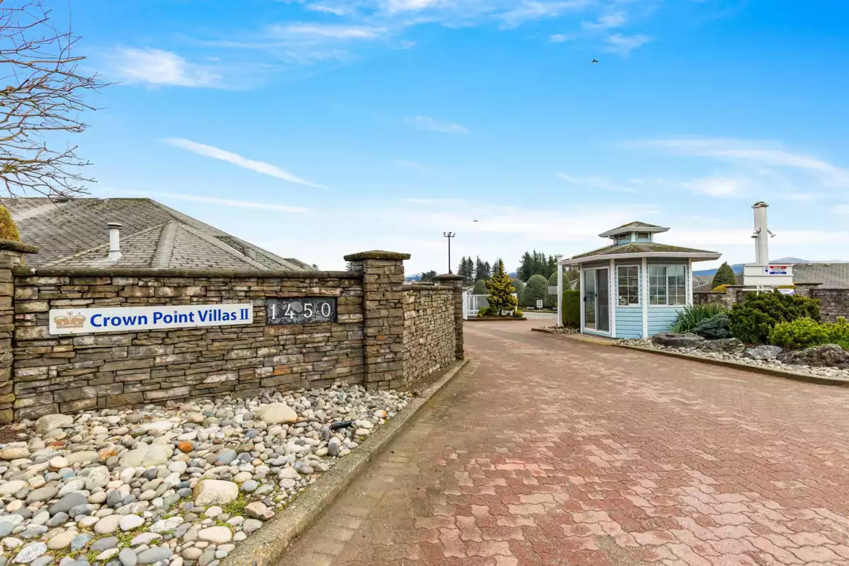 Crown Point Villas! Gated 55+ community, well maintained and ALWAYS in demand. This charming 2-bed, 2-bath single living home offers the perfect mix of comfort and convenience. Spacious eat-in kitchen has plenty of storage and counter space and flows seamlessly into the open living area and back patio. Enjoy an incredible king sized detached workshop, an active clubhouse and tons of visitor parking for family and friends. Prime location in Abbotsford. Close to everything. New PEX plumbing, appliances and fresh paint. Don't miss out on this exceptional opportunity! OPEN HOUSE: Saturday April 20th 2-4pm.