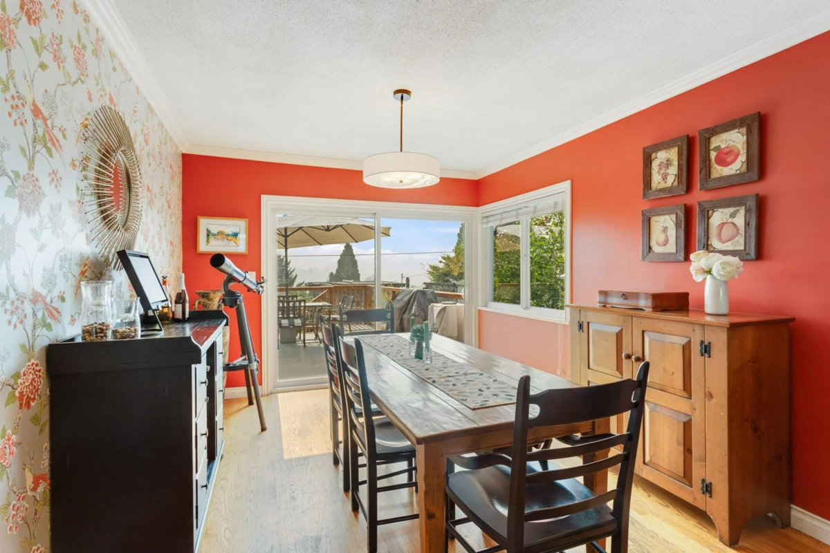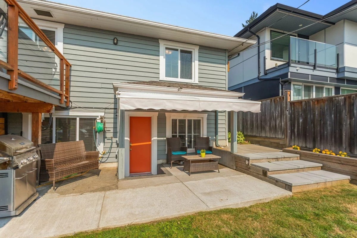 Charming from the street this pretty house with the red door is much larger than it appears. 3 beds on the main with a renovated kitchen (oodles of bells and whistles) huge southeast facing deck off the back with hot tub, view of the Burnaby City lights, MEDIA ROOM DOWN with flex space and shared laundry. 2 bedroom suite down, good sized back yard, vegetable garden, single car garage , lane access with coachhouse potential. Definitely has it all definitley worth a look! Call to view.