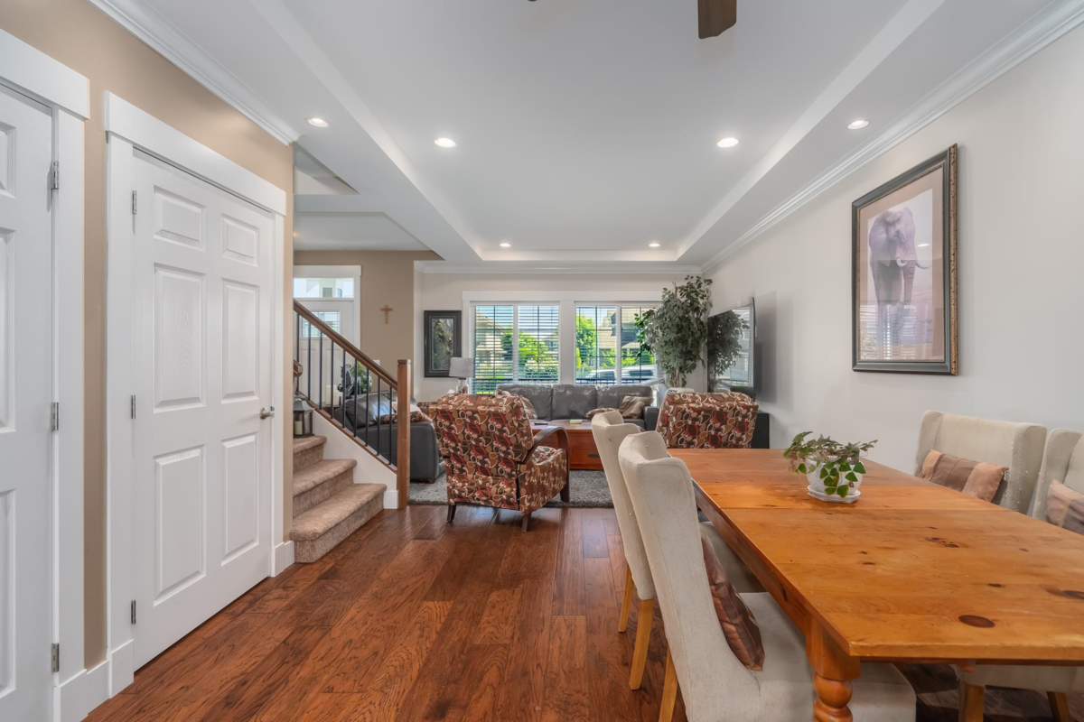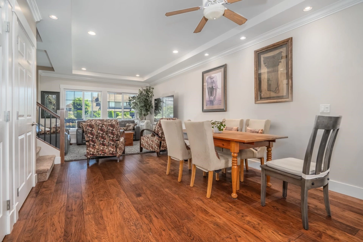 A well cared for attached rowhouse (NO STRATA FEES). This 2711 sqft 2 Storey with full basement offers 3 deluxe bedrooms up & a bdrm/den (has closet) on the main plus a 1 bedroom unauthorized suite down with separate laundry. Access to suite is currently through the main home but with some creativity could be moved outside. Deluxe finishing throughout. Quartz, hardwood and tile work are a few of the defining features. Very low maintenance yard with 20k spent on backyard oasis. Detached double car garage plus additional parking for a total of 5 parking spaces. This is a great place to call home!