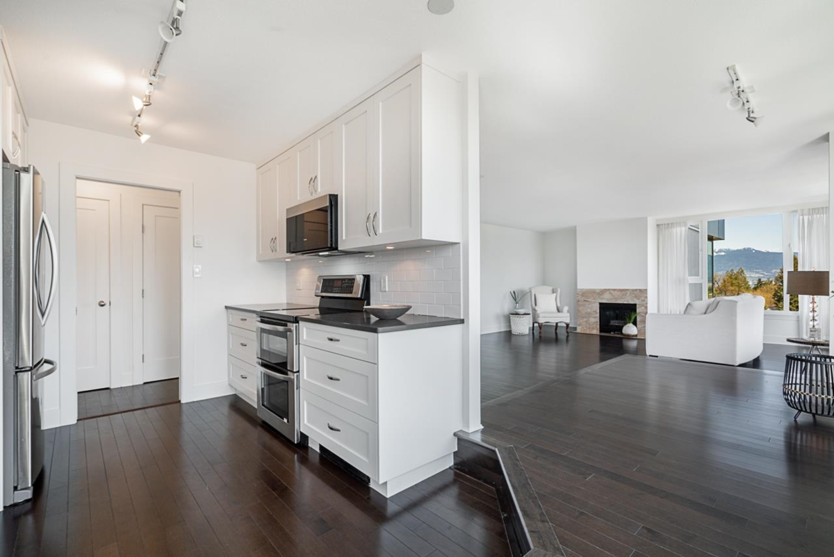 Welcome to THE BELMONT! The GOLD standard in Adult oriented 55+ living in Kerrisdale!! This fabulous building has been fully rainscreened with re-cladded exterior and triple glazed windows, new elevators and completely repiped in 2024.This gorgeous 2 bed & 2 bath Corner unit home has incredible views to the North, East and South & has been beautifully renovated with hardwood floors, highend fixtures (Grohe & Aquabrass) stunning bathrooms with heated floors, chef's kitchen and designer paint throughout.The home is completely turnkey!! Located steps to 41st St one of the most iconic streets in Kerrisdale! Shops and cafes abound. Close to Commmunity centre, biking trail & parks. The location is on a quiet treelined street with hummingbirds mingling by your window! 2 side by side parking!