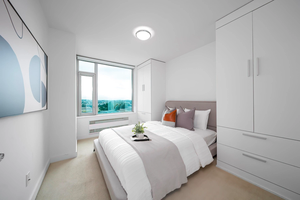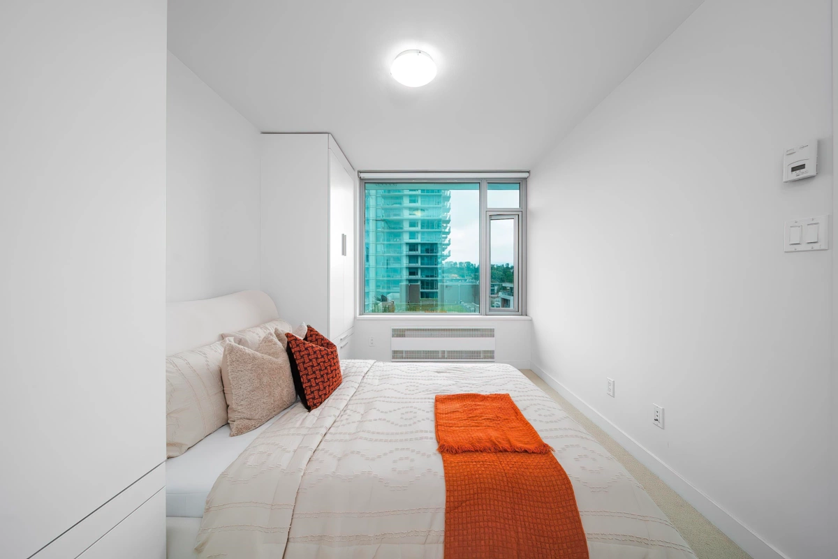Welcome to your new home at MC2, an award-winning development by lntracorp! This 2-bedroom, 2-bathroom residence offers 760 sq ft of modern living space with a walk-out balcony and an energy-efficient passive heating and cooling system for year-round comfort. Designed by renowned architect James Cheng, the interiors feature Blomberg gourmet appliances, Caesarstone countertops, and built-in closets for maximum functionality. Enjoy premium amenities, including a 24-hour concierge, fully-equipped gym, meeting rooms, and a rooftop deck. Ideally located just steps from the Canada Line Skytrain, bus loop, T&T Supermarket, Cineplex, and the shops and restaurants of Marine Gateway. Includes 1 parking space and 1 storage locker.