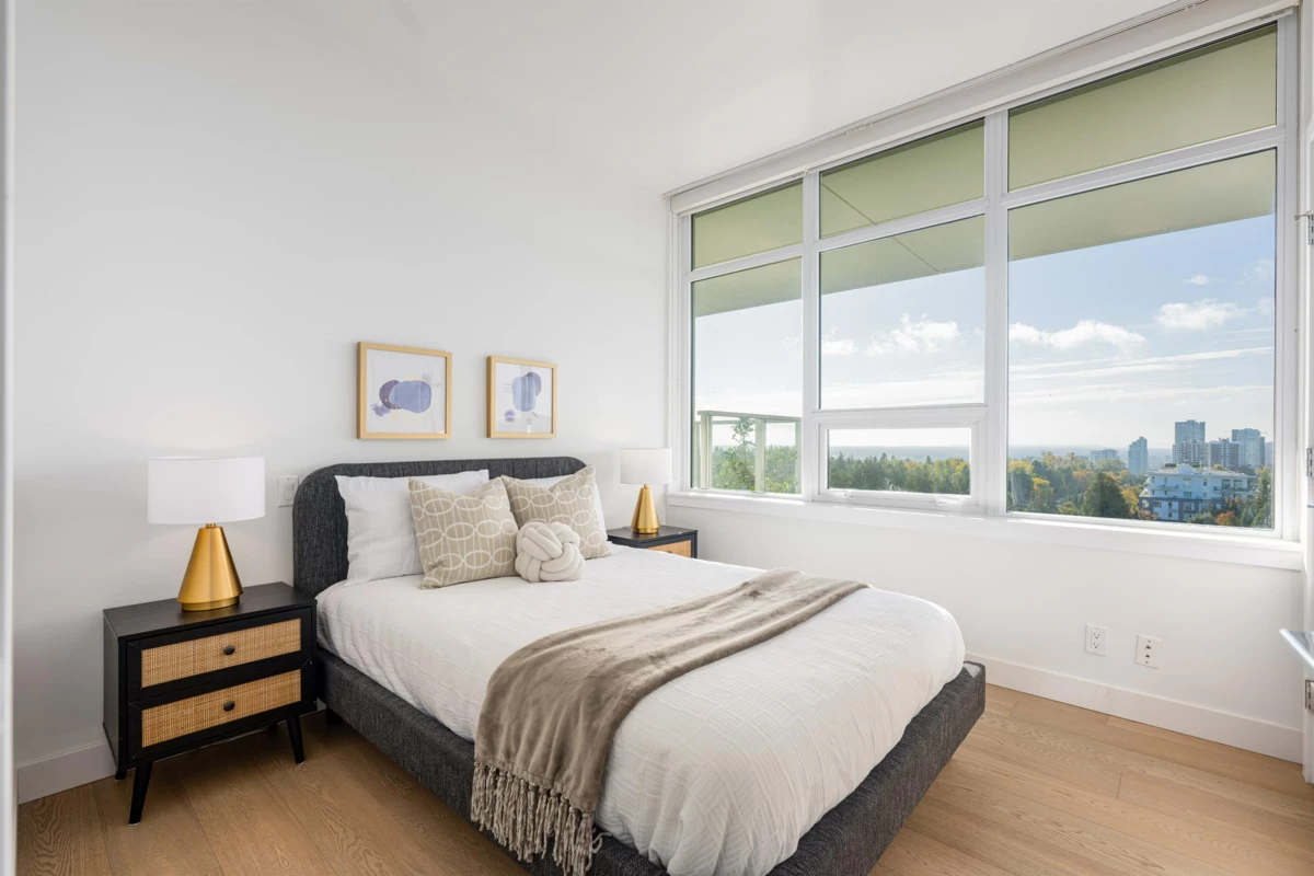 newly renovated 2 bed 2 bath corner Penthouse in Oakridge core place with amazing view. This south-west facing Penthouse has a 180 degree breathtaking view, mountain, water, foliage, city... The best location in Oakridge, just steps to Oakridge mall, 49 street sky train station, cross street to the famous Jamieson Elementary, walk distance to Langara college, YMCA and scenic parks, Adjoining to Alliance Francaise center. LEED GOLD STANDARD building, including A/C, Polished quartz counter top and backsplash, Sleek stainless steel appliance, engineered hardwood floors. countertops.