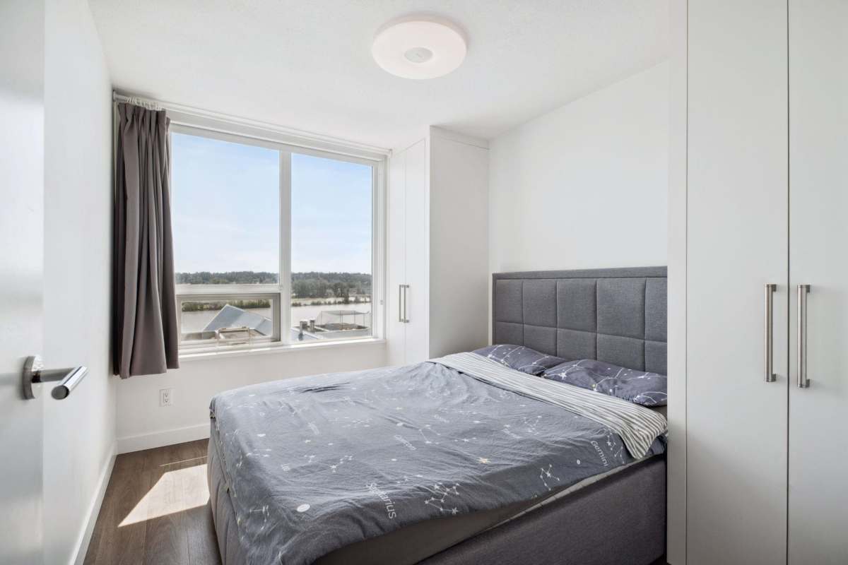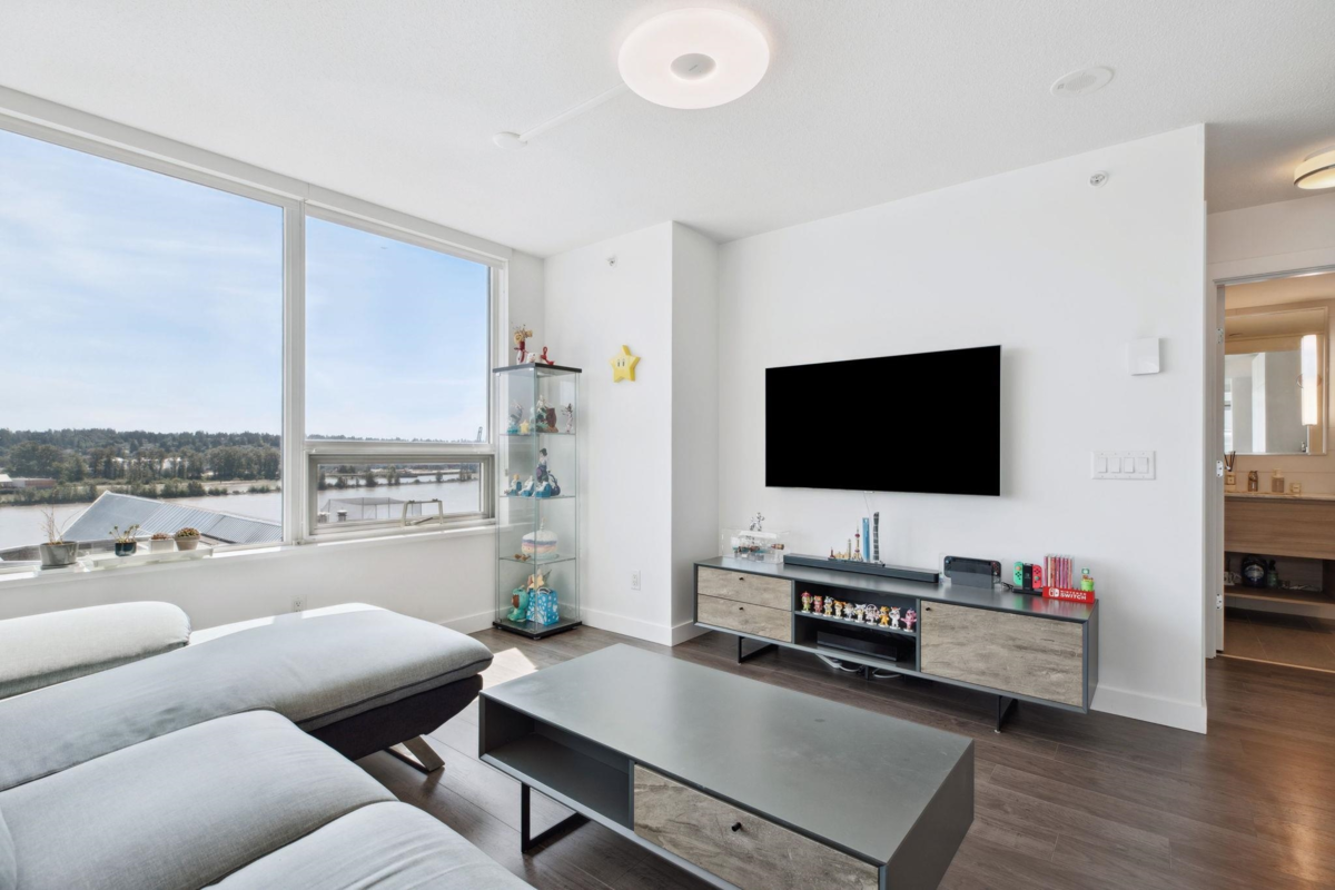 Welcome to RiverSky 2 by BOSA, located in the heart of Downtown New Westminster. This stunning 2-bedroom, 2-bathroom SOUTH-EAST corner offers 900 sq ft of beautiful living space w/ panoramic DIRECT WATER views of the Fraser River and Mt. Baker. The open-concept kitchen features a gas stove, soft-close cabinetry, composite stone countertops, an integrated refrigerator, integrated dishwasher for a very clean modern look. The building offers full-time concierge service and premium amenities including a fully equipped gym, , and a rooftop terrace with sweeping water views, lounge seating, and BBQs. Pet-friendly. and SkyTrain, Anvil Centre, the Quay, shops, restaurants, cafes - newly completed boardwalk. 1 PARKING 1 LOCKER INCLUDED.