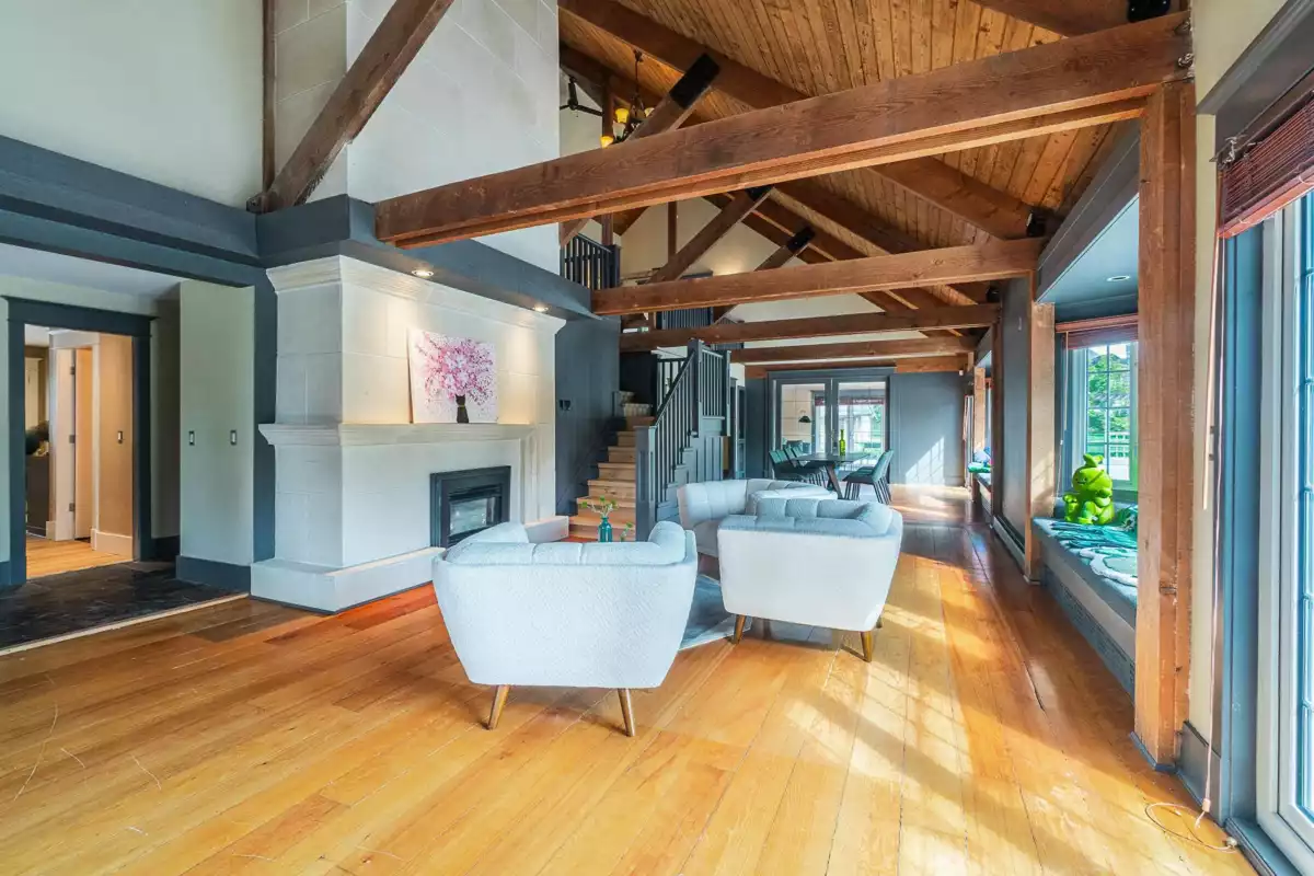 A Stately Northern European Designer resort-style home situated on 5 acres of tree land centrally located in Richmond, BC. The recent renovations including costing $500,000 for the interior and an additional $400,000 for the land preparation including rain run-off,$500,000 for the Japanese Garden,and New flooring New Painting etc. When you first enter this gorgeous interior-designed home, you will be impressed with its high vaulted woodbeam ceiling and grandeur architecture accented by big elegant windows dressed with the best california shutters. At the rear of the property you will find a natural pond with good sized 'Karps' and 'Emu's' roaming in their own fenced area . This is truly a very special property.Must see!