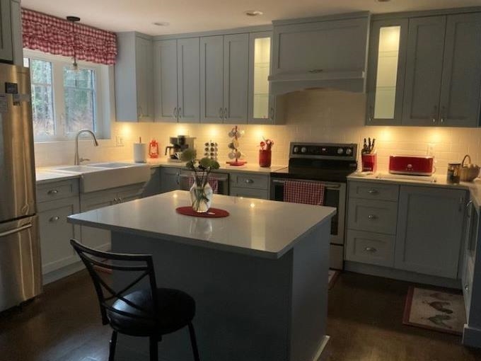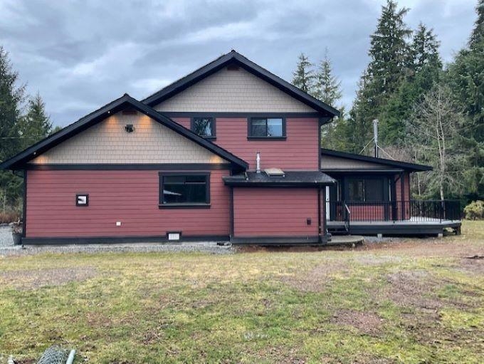 This spacious 2-story home features 5 large bedrooms and 3 bathrooms, with an open floor plan including a beautiful custom kitchen, family room, and dining area. The property, located on a gated rural street in town, boasts a secure driveway that extends over 400 feet. The master bedroom has its own deck, and the updated main bathroom has heated floors. The existing RV parking has 30 amp power. fantastic fire pit, a , as well as plenty of grassy space for outdoor activities. The property is zoned RU16. - Fantastic upgrades include solar panels, hardy board siding , canopied balcony off primary bedroom which has beautiful coffee bar. Sunroom wired for sound, ready for fireplace and air conditioned. House feature a 40 amp charging plug in the double garage. Peace and serenity abounds.