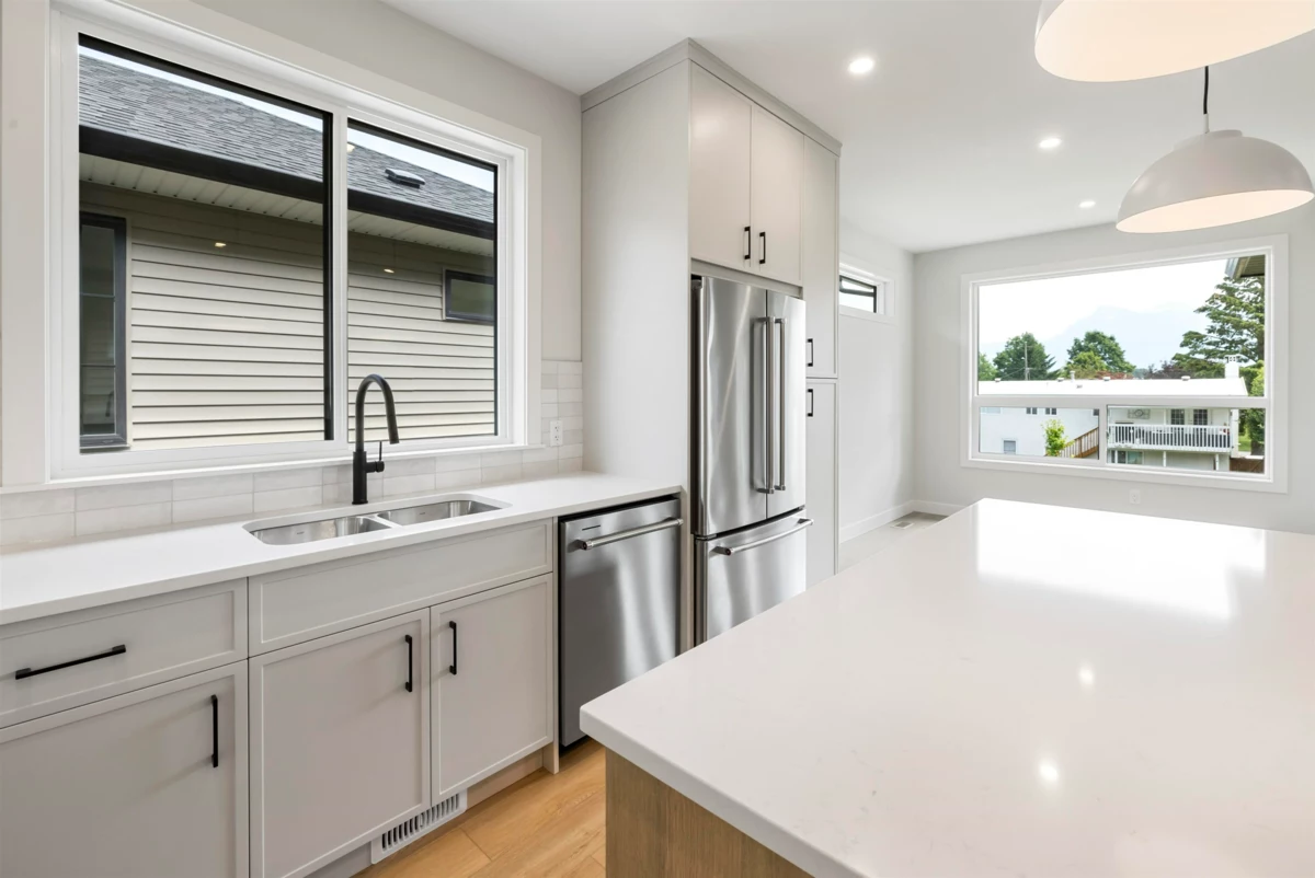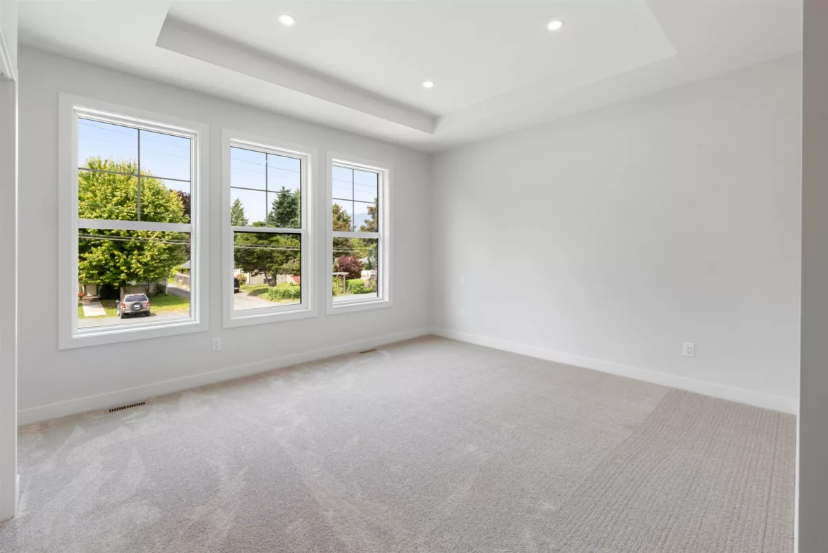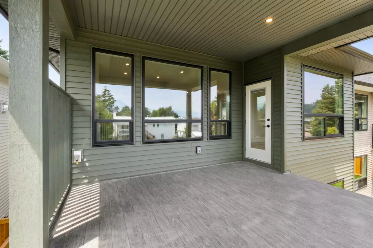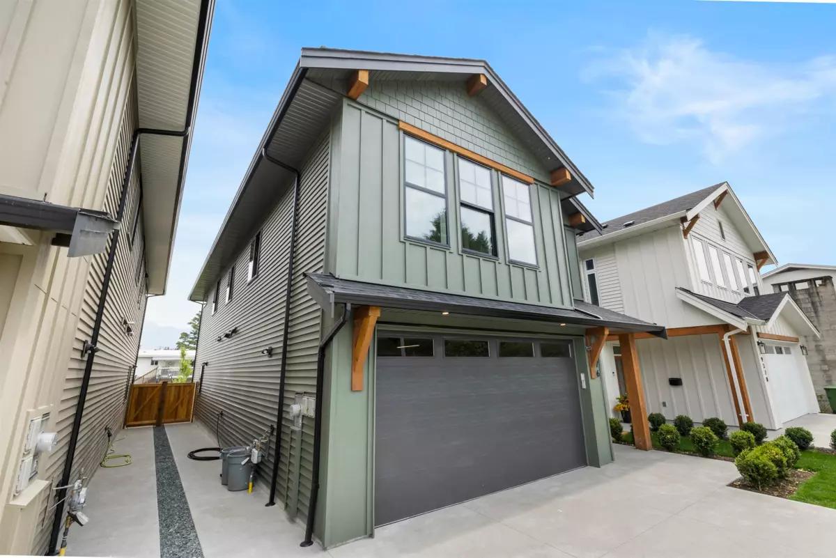 Brand new Basement entry home with a large covered deck viewing Mount Cheam, built by a reputable local builder. Great offering with a nice sized lot (generous back yard) in an amazing location on the Chilliwack side. Awesome floor plan with ample square footage. 4 bedrooms, 2 bathrooms on the main floor. Generous sized master bedroom with walk in closet and ensuite. Large driveway for vehicle parking. Basement includes 2 bedrooms, a large recreation room with a covered deck. (roughed in to easily accommodate a spacious 2 bedroom unauthorized suite) A quality built home with fine finishings, stunning kitchen, gas BBQ outlet, triple pane windows, Heat pump, on a quiet road with great access to the highway and amenities.