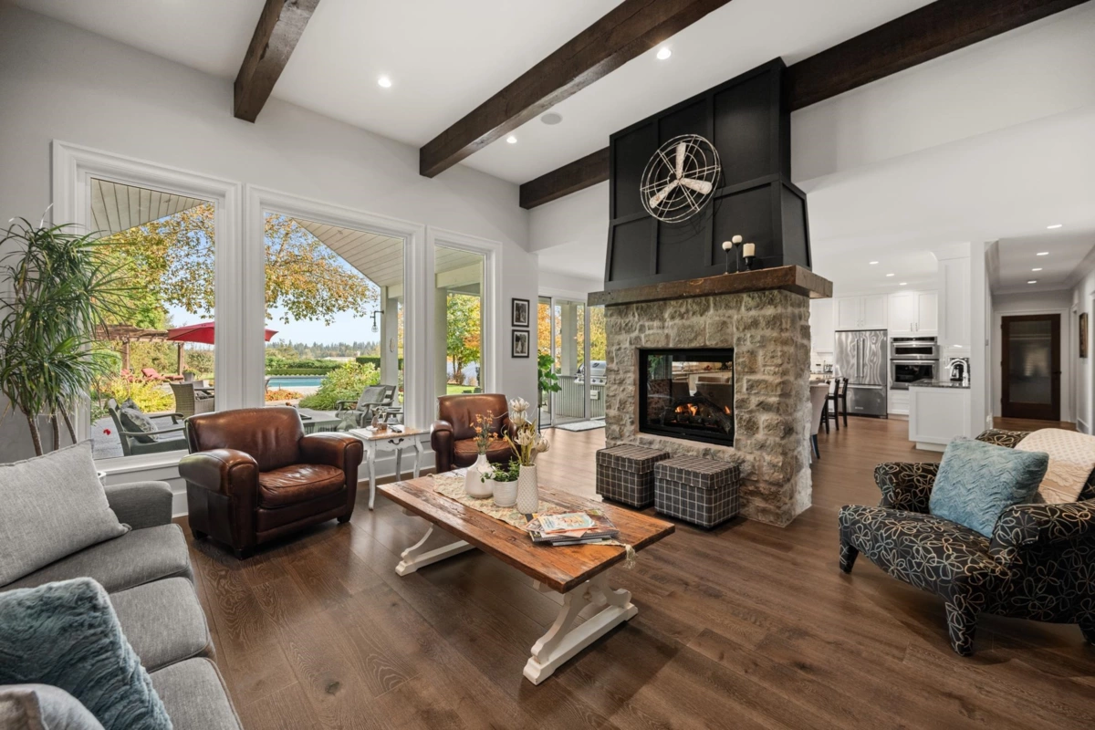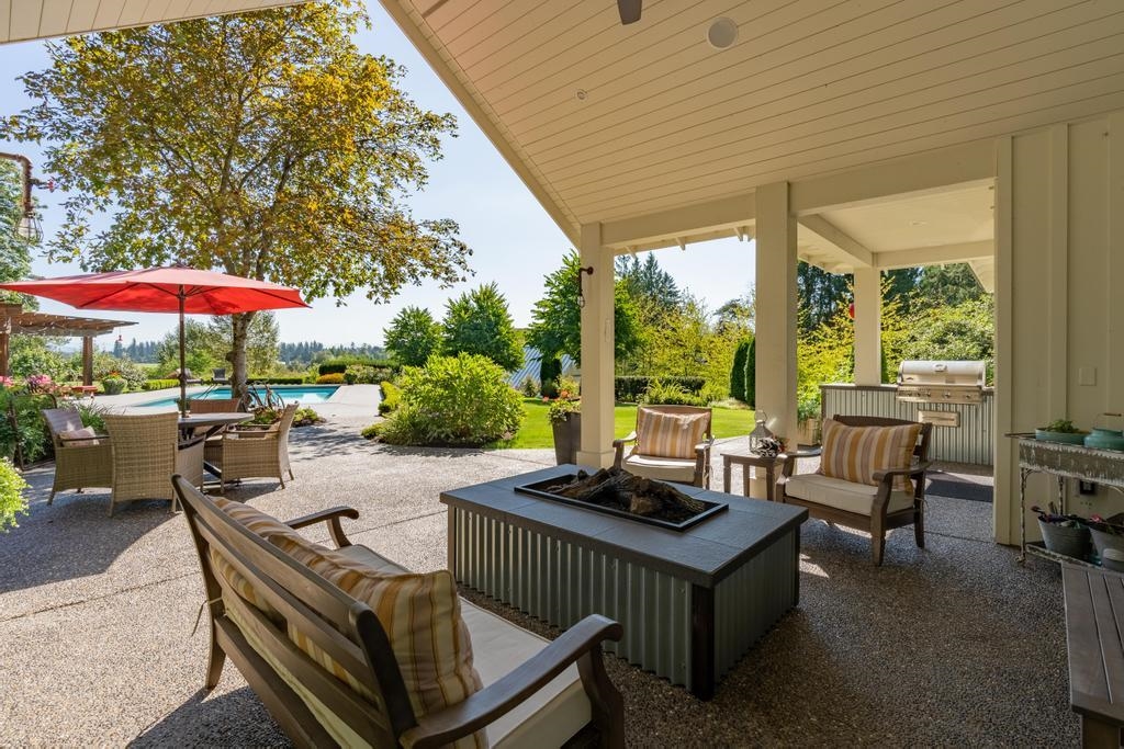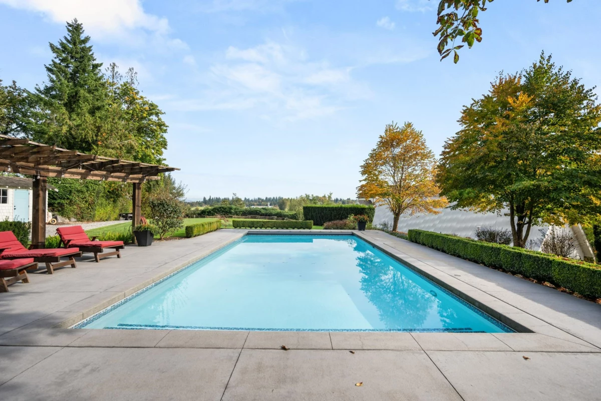 Beautiful 6200 sq. ft. beautifully crafted custom home. This farmhouse inspired gem just out of Ft Langley sits on a Knoll overlooking pastoral farmland with a view to Mount Baker on a quiet no thru country road with beautiful properties. Featuring a chef's kitchen, c/w high end appliances, pantry, large eating area and a magnificent great room looking onto a covered patio, outdoor living area complete with B/I BBQ, gas fire table, beautiful 16 x 36 pool, pool shed c/w a 3 pc bathroom and outdoor area. Upper floor features the Master Bed. with lux. ens, 2 other large bed with ensuites. Beaut. fully finished suite. Lots of landscaping with specimen trees, shrubs and stone walls. A 28' x 59' sq. ft. heated shop with loft. Bonus RU1 zoning allows for 2nd residence! Great Location.