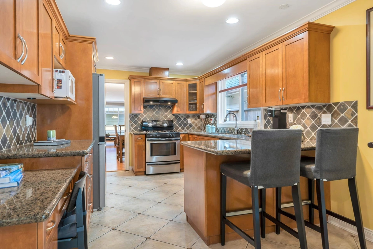 Rarely Available Riverfront Home! Beautifully maintained 2-level home on one of the most desirable riverfront properties along Seymour Blvd. Nearly 1,500 sq.ft. on the main with formal living/dining, a gourmet kitchen with stainless appliances & granite counters, family room, and direct walk-out access to private patios. Features include 2 gas fireplaces, radiant hot water heating, hardwood/tile floors on the main, and 3 spacious bedrooms + 2 full baths up. Recent updates include a new roof and exterior paint (2025). Quiet, local-traffic only street, close to recreation, shopping, transit, and just minutes to the bridge & 15–20 minutes to downtown. Double garage with excellent storage.