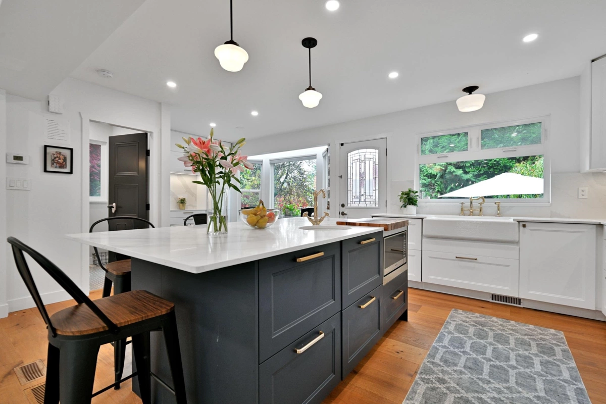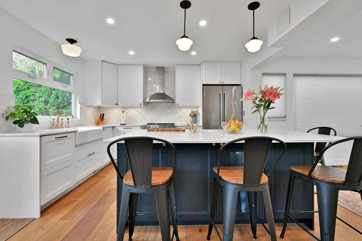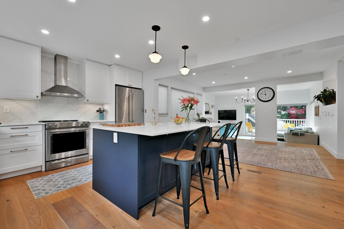 Fully renovated 4-bed, 4-bath 2-storey w/basement home in wonderful Port Moody neighbourhood. Open-concept main floor dazzles with real engineered hardwood floors. Gourmet kitchen features KitchenAid appliances, quartz counters, smart lighting, and seamless flow to living/dining. Upstairs: serene primary bed w/in-floor heated ensuite, plus 2 generous spare beds. Bright basement hosts a 1-bed suite w/separate entry & laundry, vinyl plank, LED pots, full kitchen & soundproofing—ideal for guests or income! Tiered backyard is a private oasis—sundeck, garden beds, mature hedges & flexible play space or dog run. Nearby to quality schools; Newport, Suter Brook, & Brewery Row; skytrain, Rocky Point Park, and popular walking trails. This rare gem won't last—book your showing today!