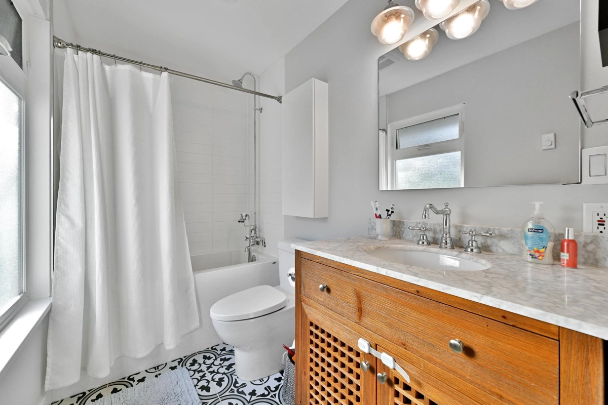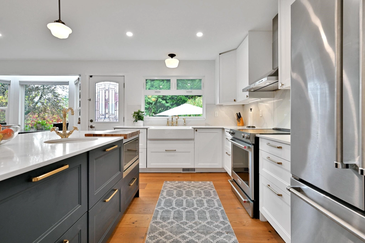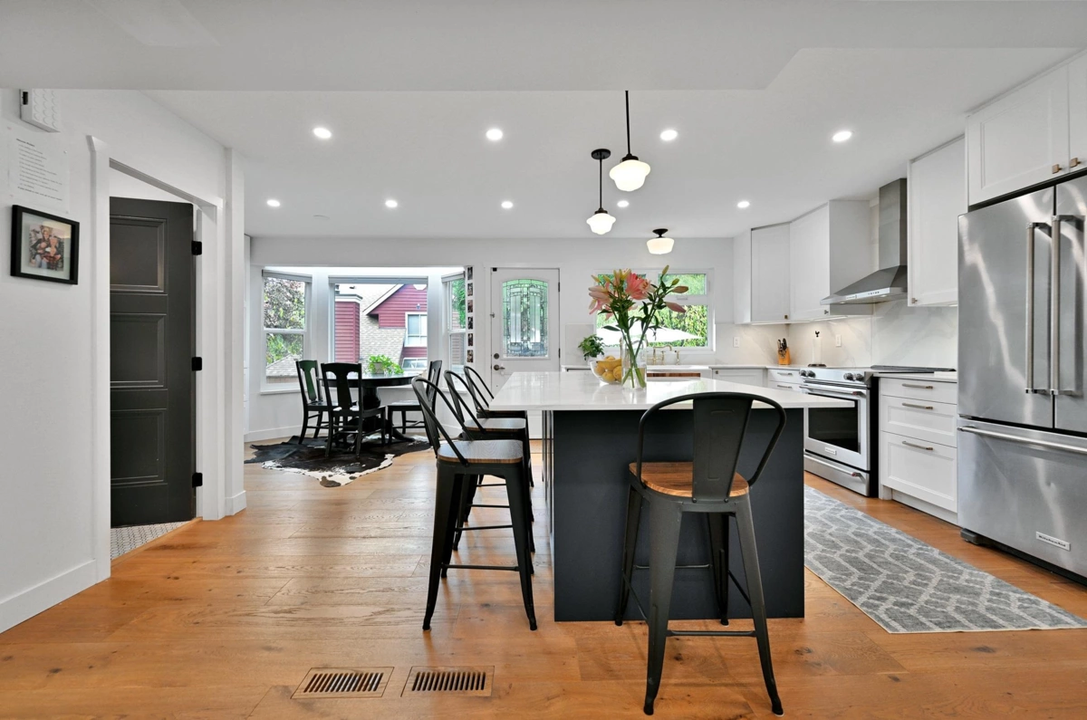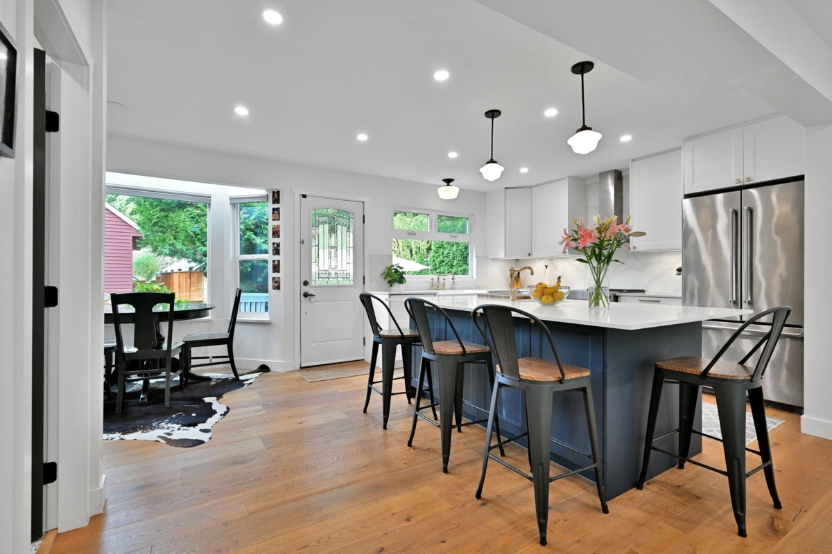 Fully renovated 4-bed, 4-bath 2-storey w/basement home in wonderful Port Moody neighbourhood. Open-concept main floor dazzles with real engineered hardwood floors. Gourmet kitchen features KitchenAid appliances, quartz counters, smart lighting, and seamless flow to living/dining. Upstairs: serene primary bed w/in-floor heated ensuite, plus 2 generous spare beds. Bright basement hosts a 1-bed suite w/separate entry & laundry, vinyl plank, LED pots, full kitchen & soundproofing—ideal for guests or income! Tiered backyard is a private oasis—sundeck, garden beds, mature hedges & flexible play space or dog run. Nearby to quality schools; Newport, Suter Brook, & Brewery Row; skytrain, Rocky Point Park, and popular walking trails. This rare gem won't last—book your showing today!