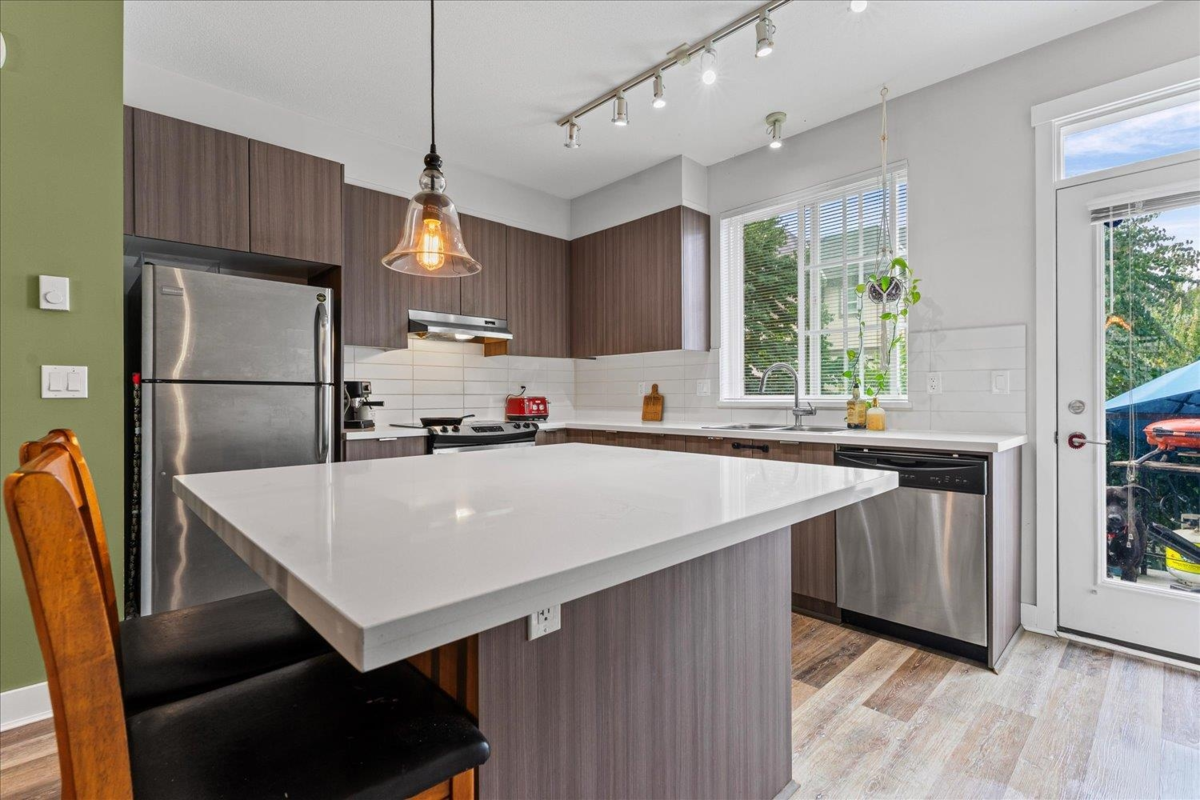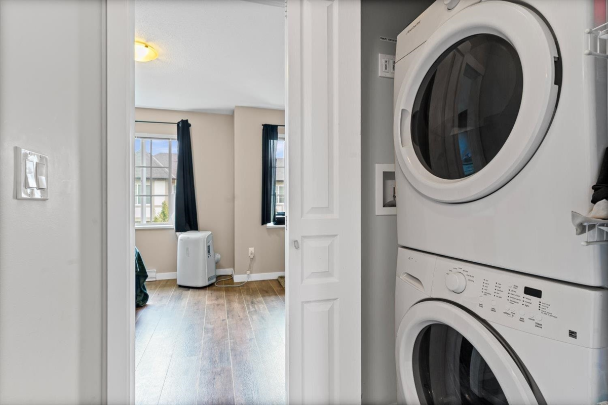 This Brighton townhome offers updates throughout, including brand new flooring and lots of fresh paint that gives the space an open, welcoming feel. The kitchen flows into a spacious dining and living area complete with beautiful feature wall. Enjoy the west facing patio for BBQ'ing of soaking up sunsets. Upstairs you’ll find 2 huge bedrooms, one with a 4 piece ensuite with walk-in shower, as well laundry and a second 4 piece bathroom. The double tandem garage offers plenty of storage and opens to a fully fenced backyard. This unit has an additional parking stall in front of the garage door. This complex offers exclusive access to Club West’s 8,400+ sq ft of resort-style amenities, including an outdoor pool, hot tub, fireside lounge, games room, and more!