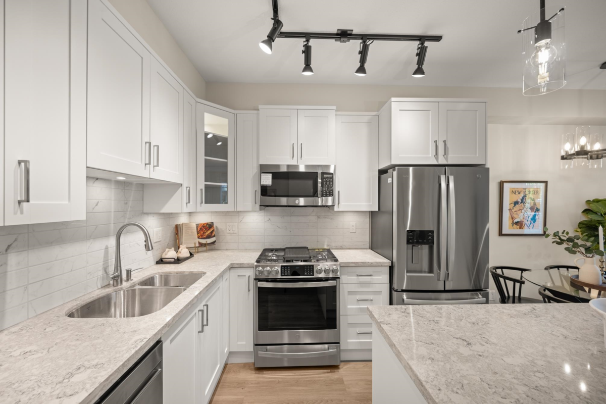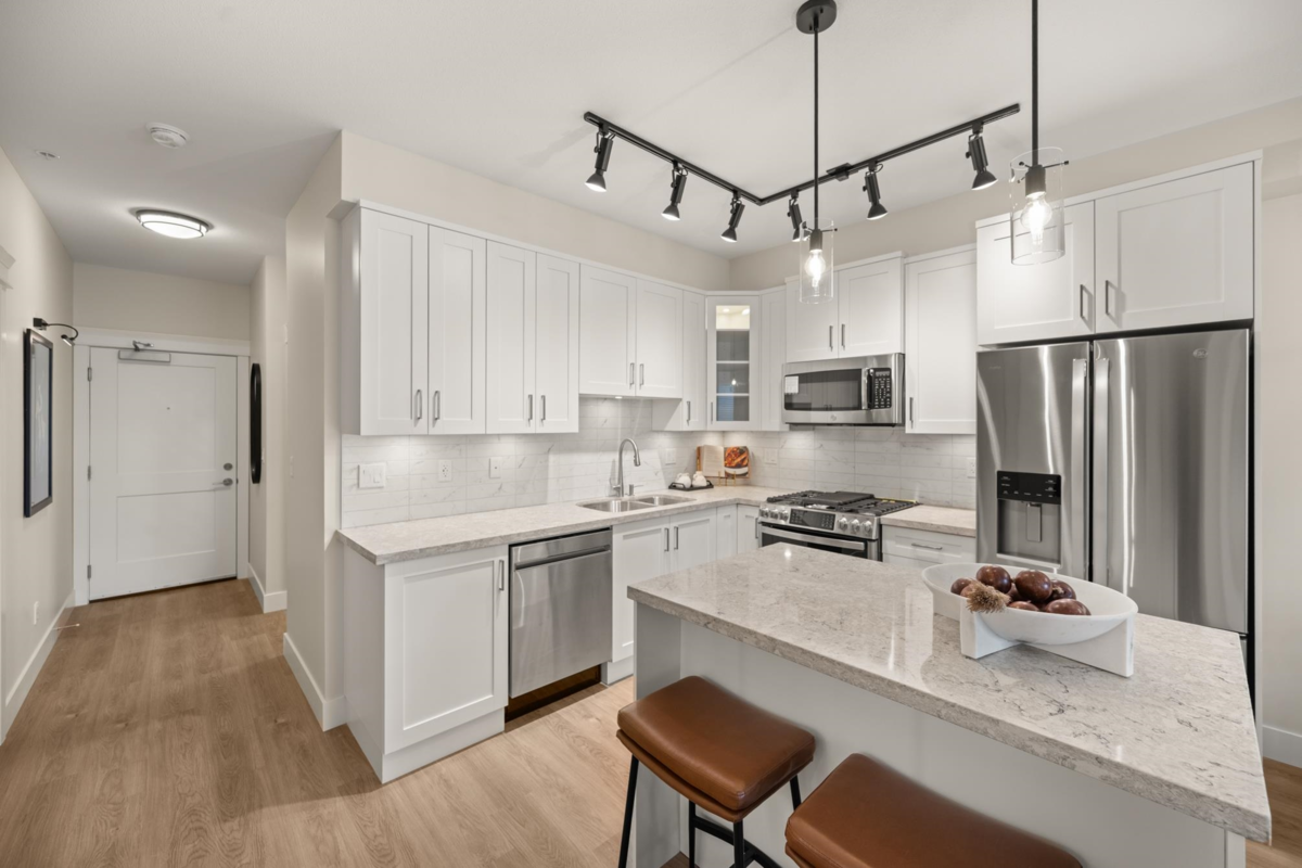 RARE 4 BED! Welcome to Walnut Park by Quadra Homes! Enjoy 9' ceilings, air conditioning, stainless steel appliances, white quartz countertops, sleek white shaker cabinets, and durable vinyl plank flooring! The bathroom features heated tile floors for extra comfort, while the built-in closet organizers and in-suite safe add practicality and peace of mind. Comes with secure underground parking, a massive storage locker, and access to an EV charger. Relax on your bright North-East facing balcony or take advantage of the impressive amenities including a large fitness centre and rooftop lounge. Steps away from restaurants, shops, groceries, schools and more - this location has it all!