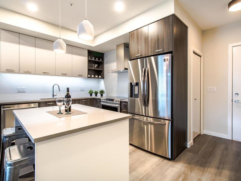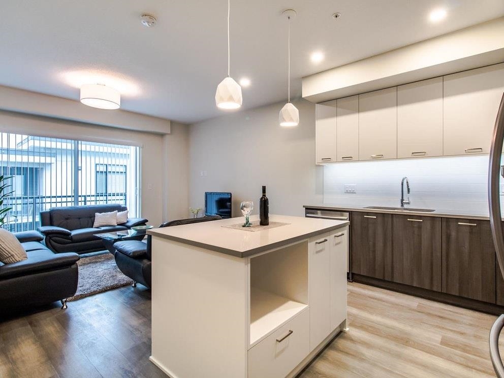 Welcome to Park Hill in Willoughby Heights! This bright and quiet 1-bedroom, 1-bath home offers 695 sq. ft. of open-concept living facing East and next to a peaceful greenbelt. Enjoy a spacious kitchen with quartz counter, plenty of built-in storage, modern vinyl flooring, and a large bedroom with walk-in closet. The ensuite bathroom features double sinks and a full size tub. Perfect for first-time buyers, downsizers, or investors seeking a modern, move-in ready home in a quiet location. Includes 1 parking stall. Open House: Sat/Sun Nov 8 & 9 2-4PM.