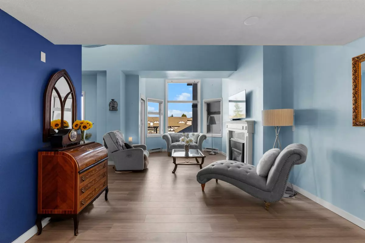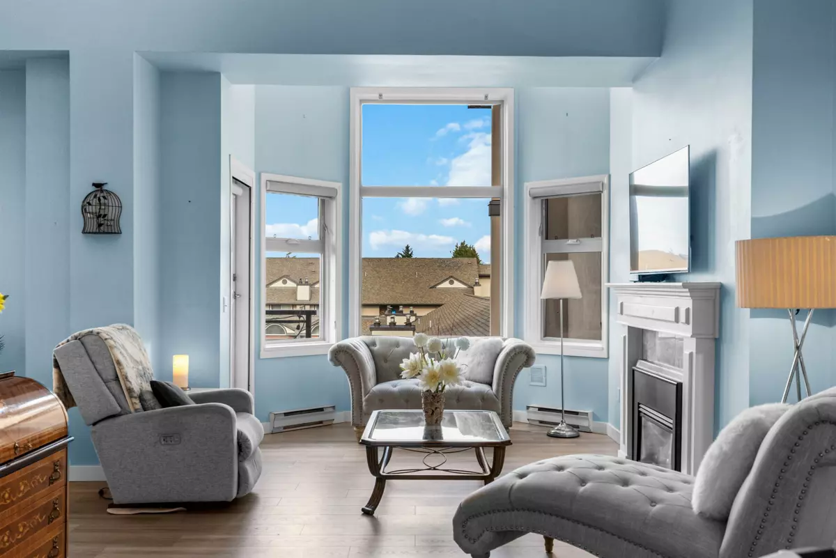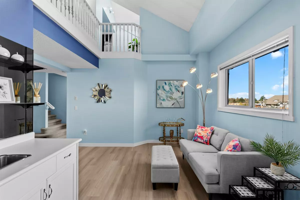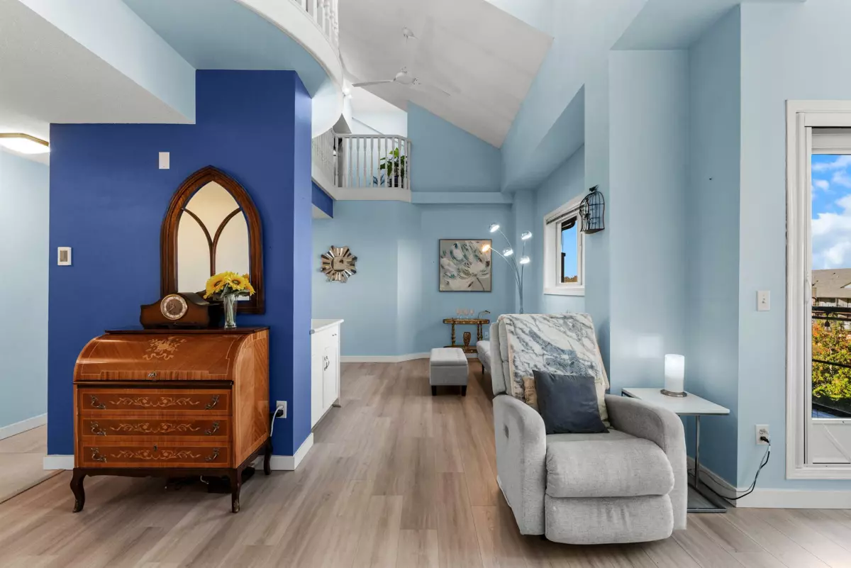 This incredible penthouse spans the 5th and 6th floors in one of Ladner’s only concrete, rain screened buildings! Bright and airy with over 1,800 sq.ft., 19-ft vaulted ceilings, and two-story windows that fill the home with natural light. The main level features a brand-new kitchen, spacious living and dining areas, cozy gas fireplace, and primary bedroom plus ensuite. Upstairs offers two additional bedrooms or office/flex space with its own private entrance. Enjoy North Shore mountain views, a large balcony, and an unbeatable central location just steps to shops, dining, and parks! Pets allowed w/restrictions + 2 parking spots.