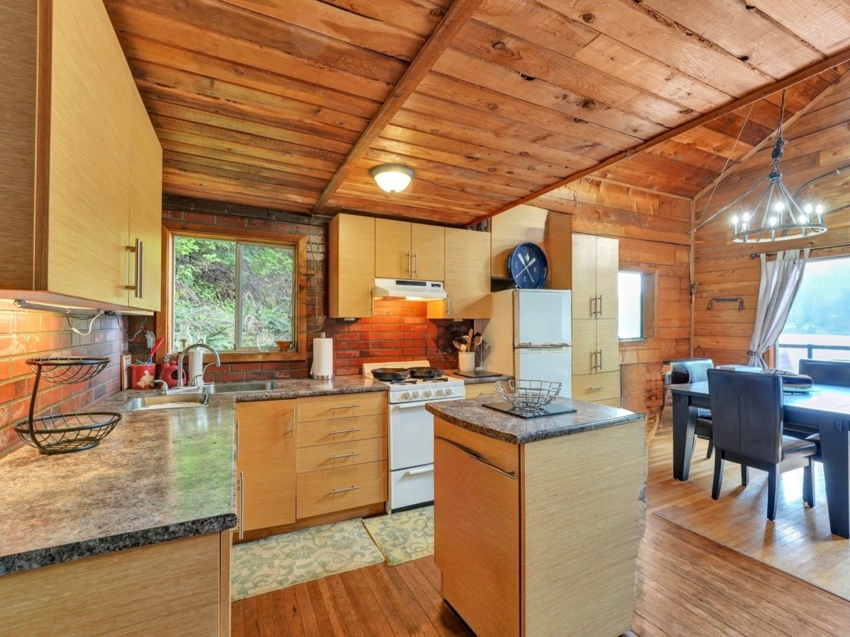 Forest Service ROAD ACCESS - FREEHOLD property. Escape to your lakeside haven on the pristine shores of Harrison Lake. Breathtaking panoramic lake & mountain views. Inside, enjoy the warmth of a fireplace, high ceilings & hardwood flooring. The spacious main floor exudes a rustic open feel, with a newer kitchen & a loft that has a divider creating 2 additional sleeping spaces. This cabin offers the primary bedroom on the main floor. Storage shed with BUNKIE above. Outside, huge wraparound deck with new aluminum/glass railing. Newer 12x16 pier/deck sits above the water. Fantastic beach. There is the opportunity to expand adding more cabins on this nearly 1-acre lot. Hot Water on Demand. Sleeps 12. Just minutes from Rainbow Falls. Lake Life is your Best Life!