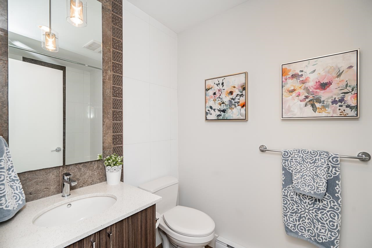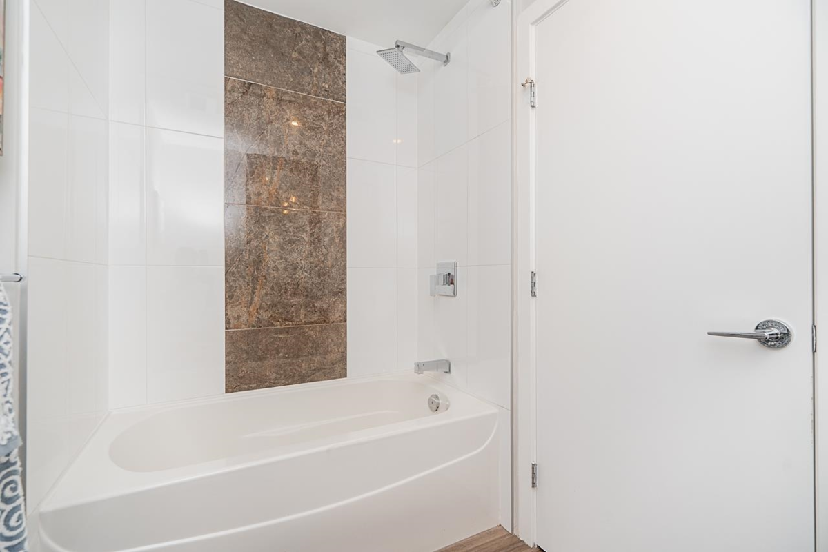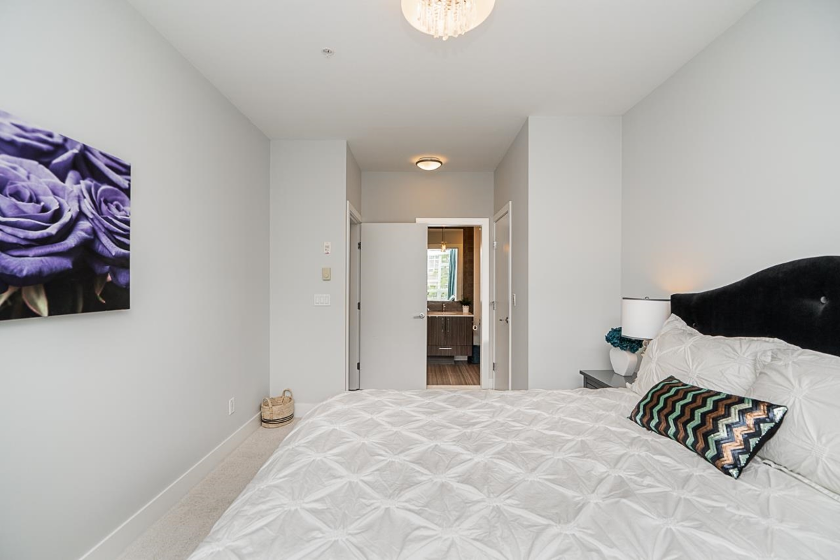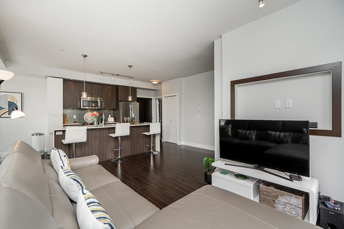 Bright and spacious 2 Bedroom, 2 Bathroom home in the highly desirable Elements community! This second-floor residence features an open-concept layout with plenty of natural light. Like new with a light, neutral paint scheme, quartz countertops in the kitchen and baths, and brand-new carpets in bedrooms. Good size bedrooms with a walk in closet in primary bedroom. Added conveniences include in-suite storage, a storage locker, and one parking stall. Tucked away in a quiet location, yet just steps from shops, dining, and everyday amenities.