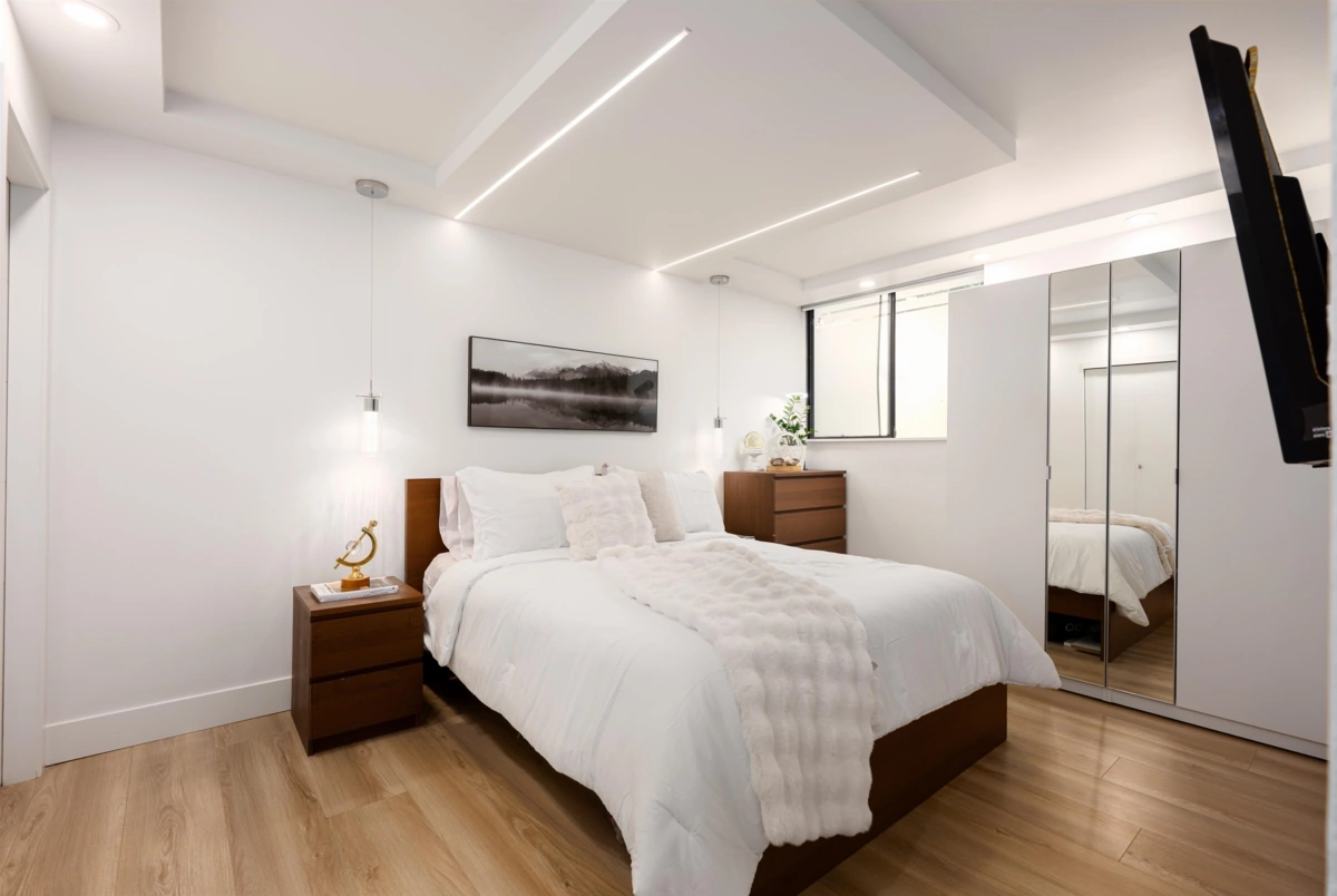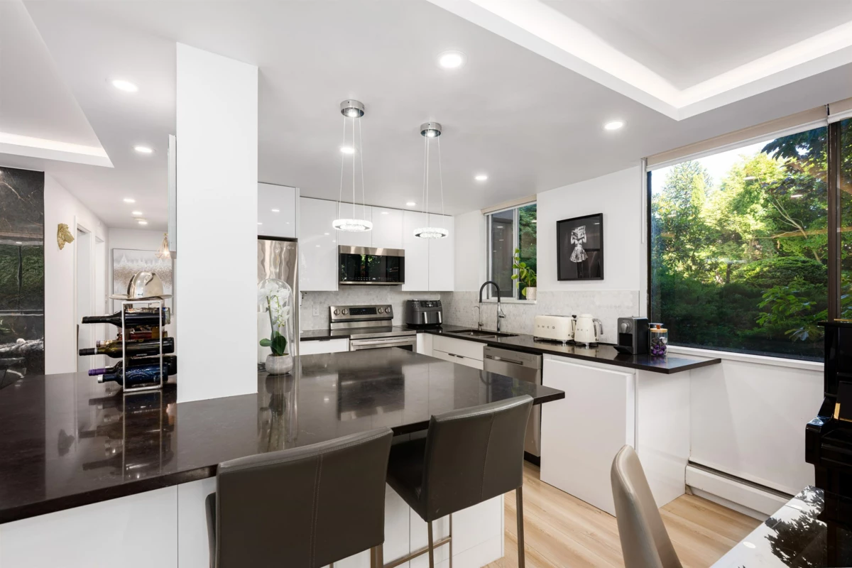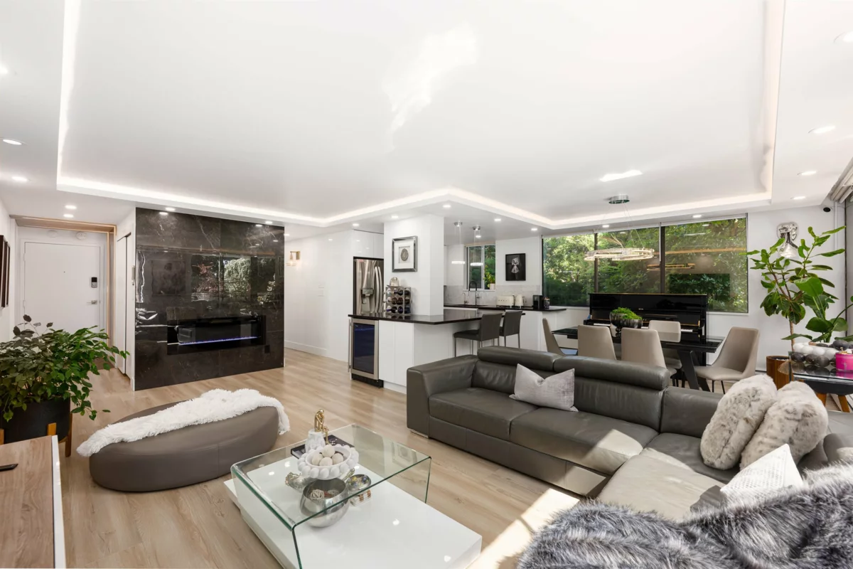 Experience refined West Coast living in this beautifully renovated 2 Bed + Den, 2 Bath corner residence at Parkview Tower in Ambleside. Designed by award-winning Kalu Interiors, this ground-level home offers 1,061 sqft of modern elegance with an open-concept layout, bespoke electric fireplace, and spa-like bathrooms. The gourmet kitchen features quartz counters, sleek cabinetry, and premium appliances. Enjoy a private garden patio oasis and curated finishes throughout. Resort-style amenities include an indoor pool, rooftop lounge, tennis court, and more. Located in a desirable neighborhood, steps to the seawall, beach, Park Royal, and top schools. Open House: Saturday, November 29, 2-4pm