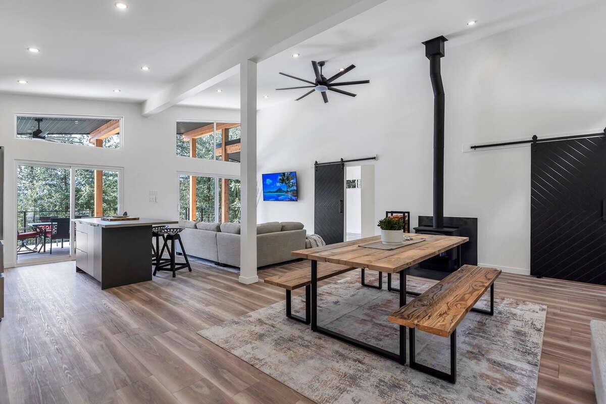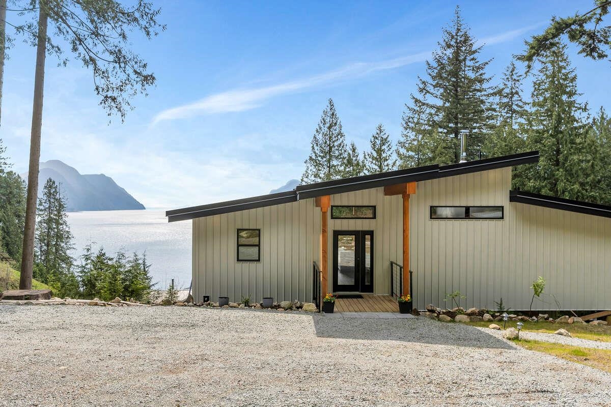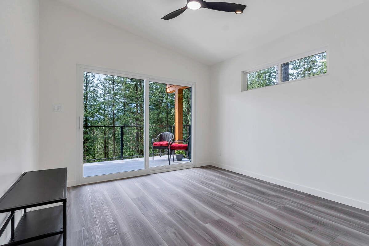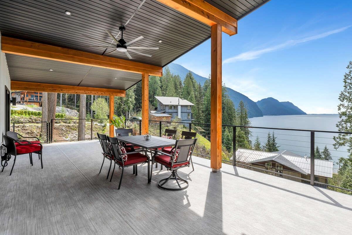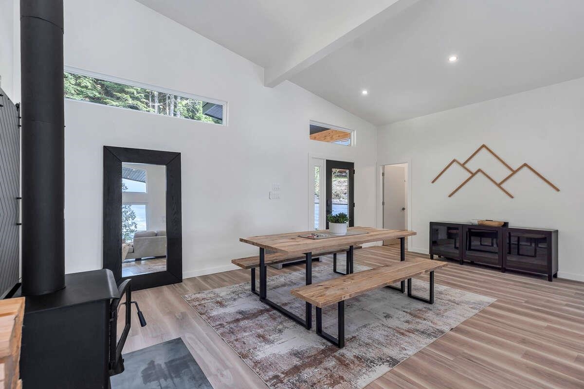 For more information, click the Brochure button. Cabin vibes, lake life, and laid-back living. This new boat-access-only retreat on Pitt Lake is just 15 minutes from Grant Narrows Regional Park, meaning adventure is literally in your backyard! With 3 beds, 2 baths, and 1312 sqft, this West Coast-style cabin is furnished, turn-key and sits on a sunny, south-facing, ½-acre lot, offering plenty of space to kick back, unwind and soak in the lake views. Every room spills out onto a 600 sqft covered deck, perfect for entertaining and golden-hour evenings. Barn doors, ceiling fans, rain showers, and a vessel tub keep things cozy and comfortable. Concrete and butcher block countertops add simple, stylish touches, while washer/dryer hookups let you settle in for the long haul.