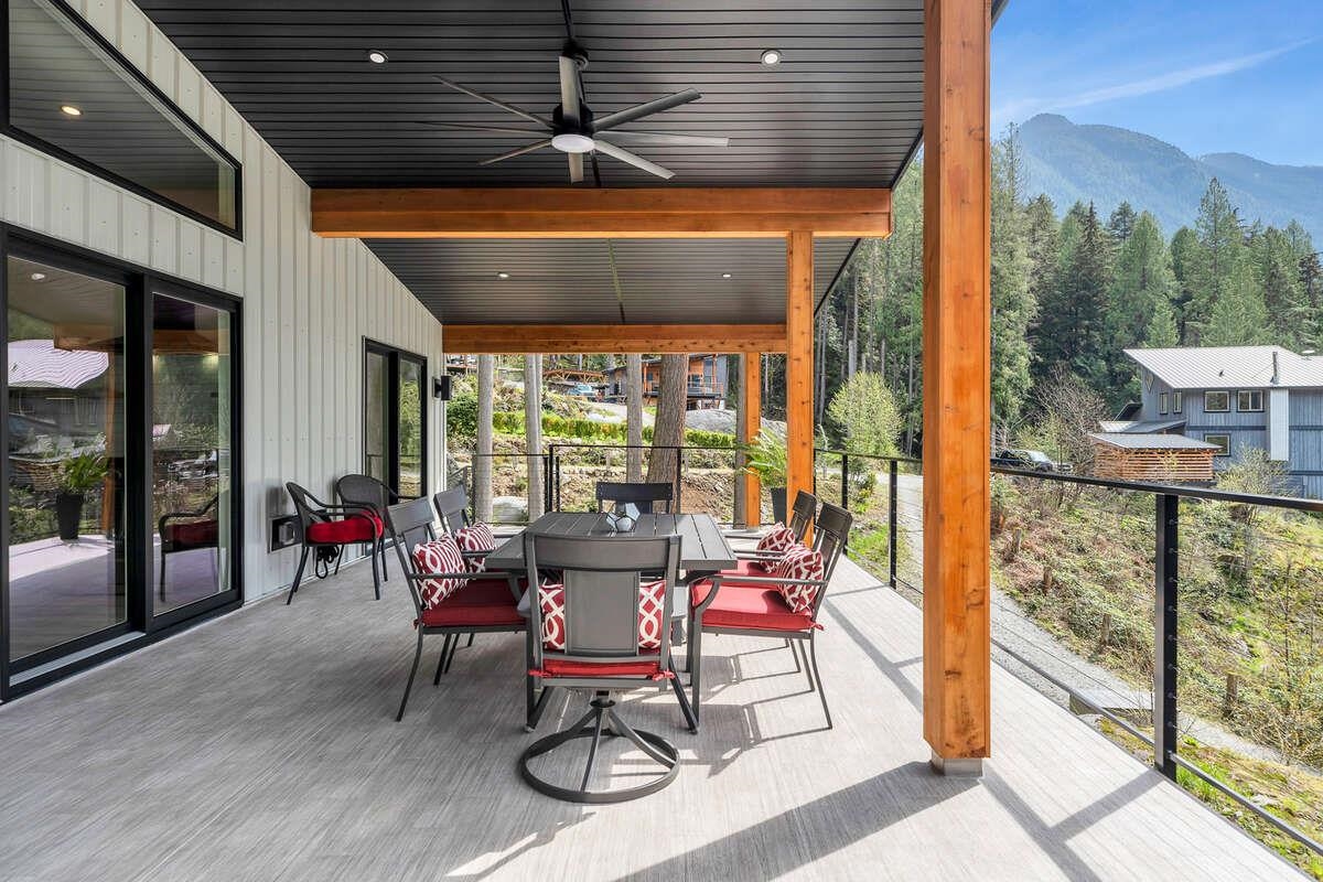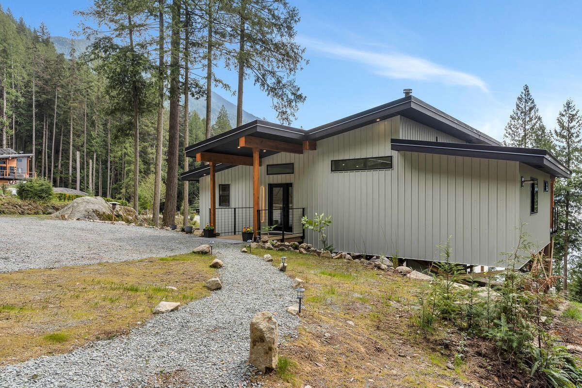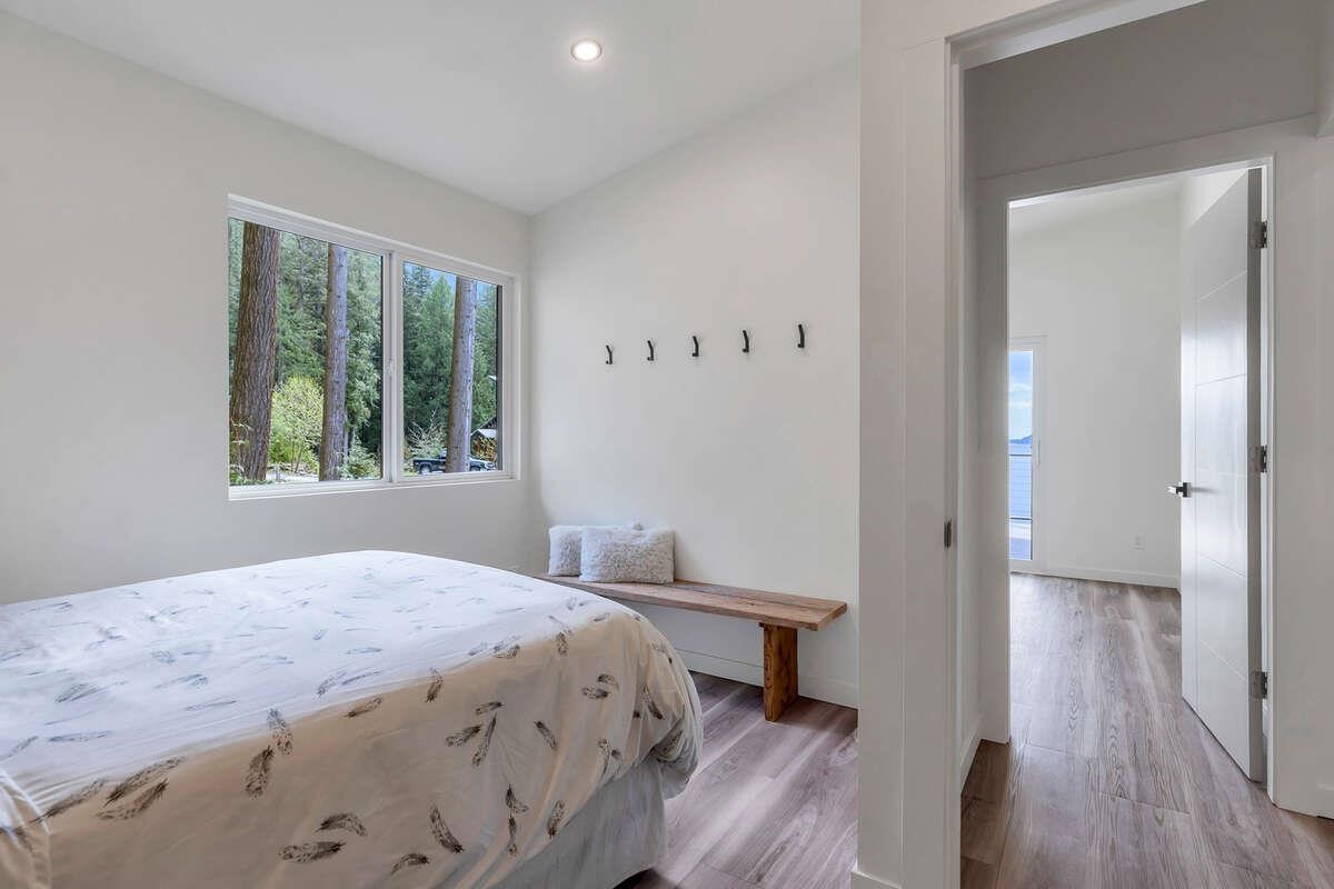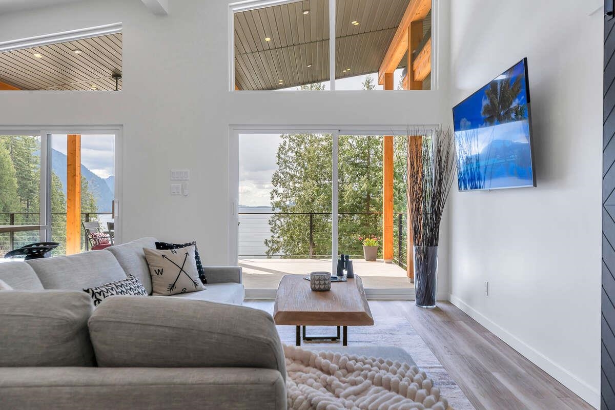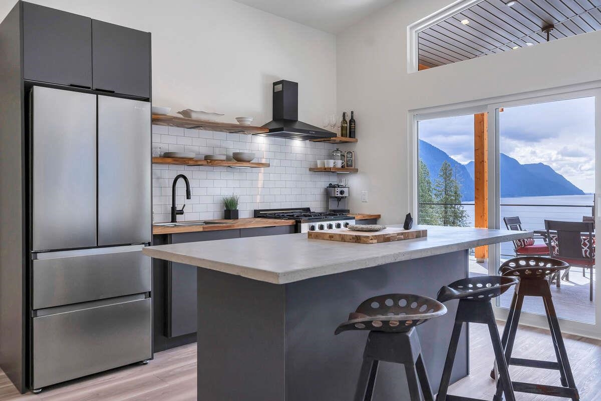 For more information, click the Brochure button. Cabin vibes, lake life, and laid-back living. This new boat-access-only retreat on Pitt Lake is just 15 minutes from Grant Narrows Regional Park, meaning adventure is literally in your backyard! With 3 beds, 2 baths, and 1312 sqft, this West Coast-style cabin is furnished, turn-key and sits on a sunny, south-facing, ½-acre lot, offering plenty of space to kick back, unwind and soak in the lake views. Every room spills out onto a 600 sqft covered deck, perfect for entertaining and golden-hour evenings. Barn doors, ceiling fans, rain showers, and a vessel tub keep things cozy and comfortable. Concrete and butcher block countertops add simple, stylish touches, while washer/dryer hookups let you settle in for the long haul.
