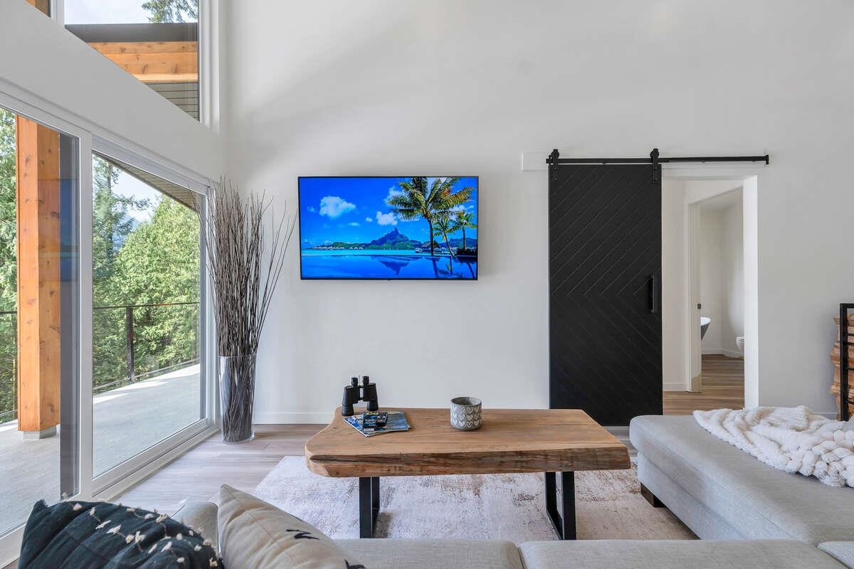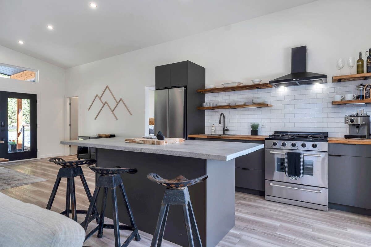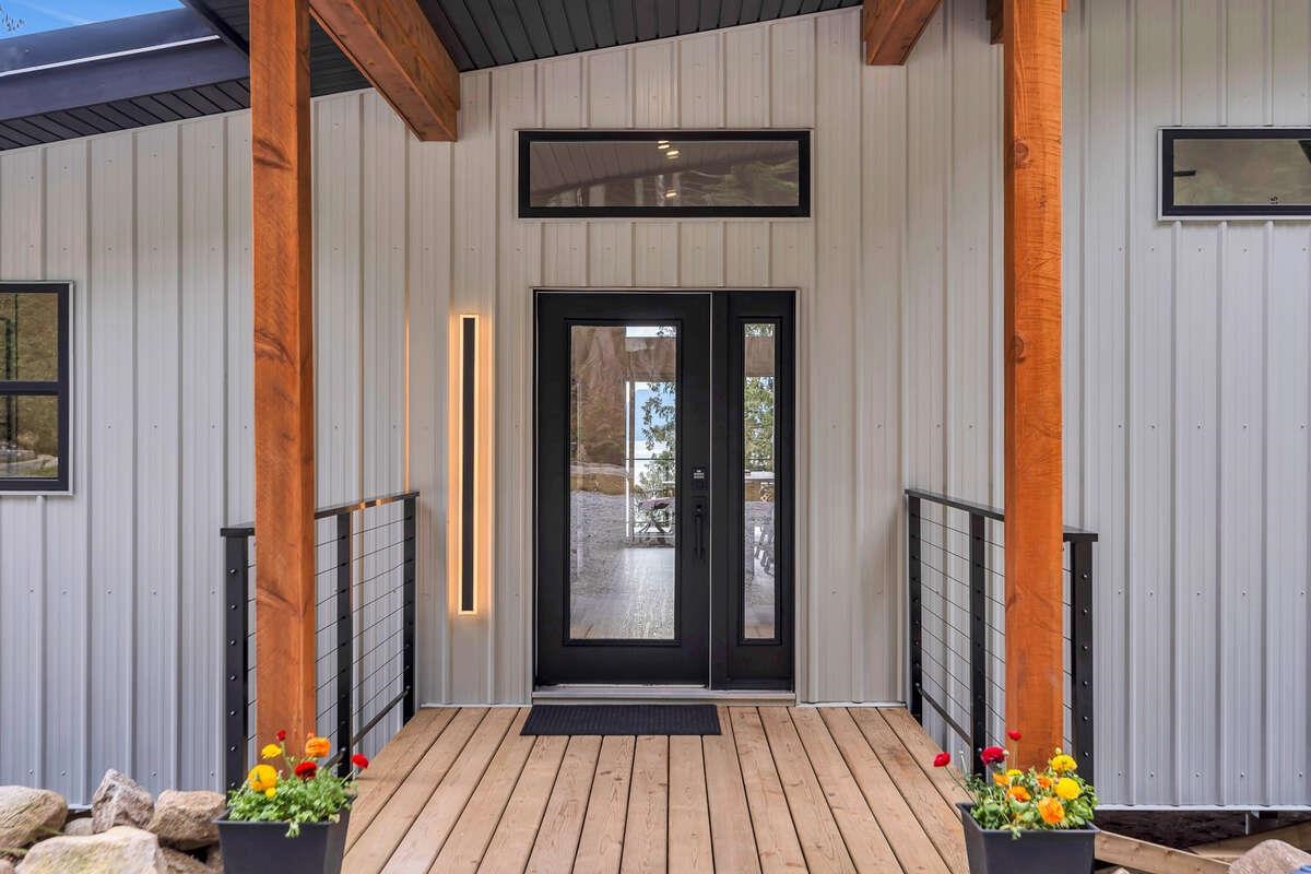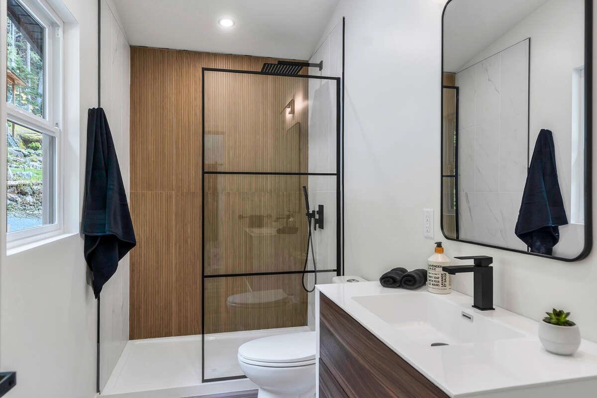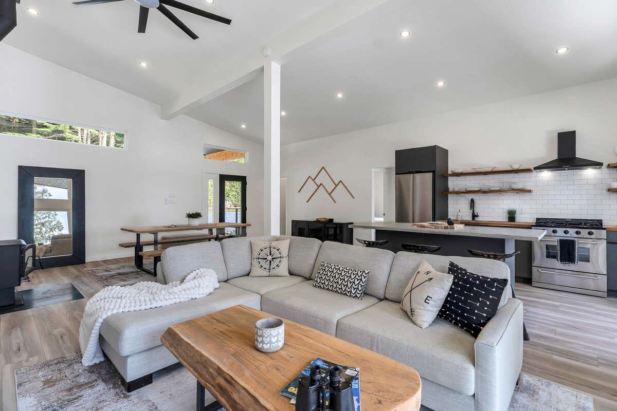 For more information, click the Brochure button. Cabin vibes, lake life, and laid-back living. This new boat-access-only retreat on Pitt Lake is just 15 minutes from Grant Narrows Regional Park, meaning adventure is literally in your backyard! With 3 beds, 2 baths, and 1312 sqft, this West Coast-style cabin is furnished, turn-key and sits on a sunny, south-facing, ½-acre lot, offering plenty of space to kick back, unwind and soak in the lake views. Every room spills out onto a 600 sqft covered deck, perfect for entertaining and golden-hour evenings. Barn doors, ceiling fans, rain showers, and a vessel tub keep things cozy and comfortable. Concrete and butcher block countertops add simple, stylish touches, while washer/dryer hookups let you settle in for the long haul.