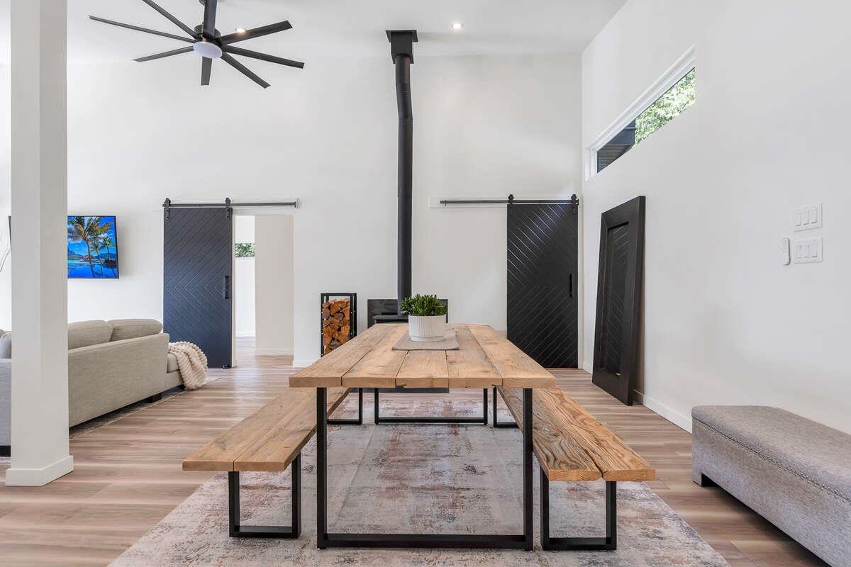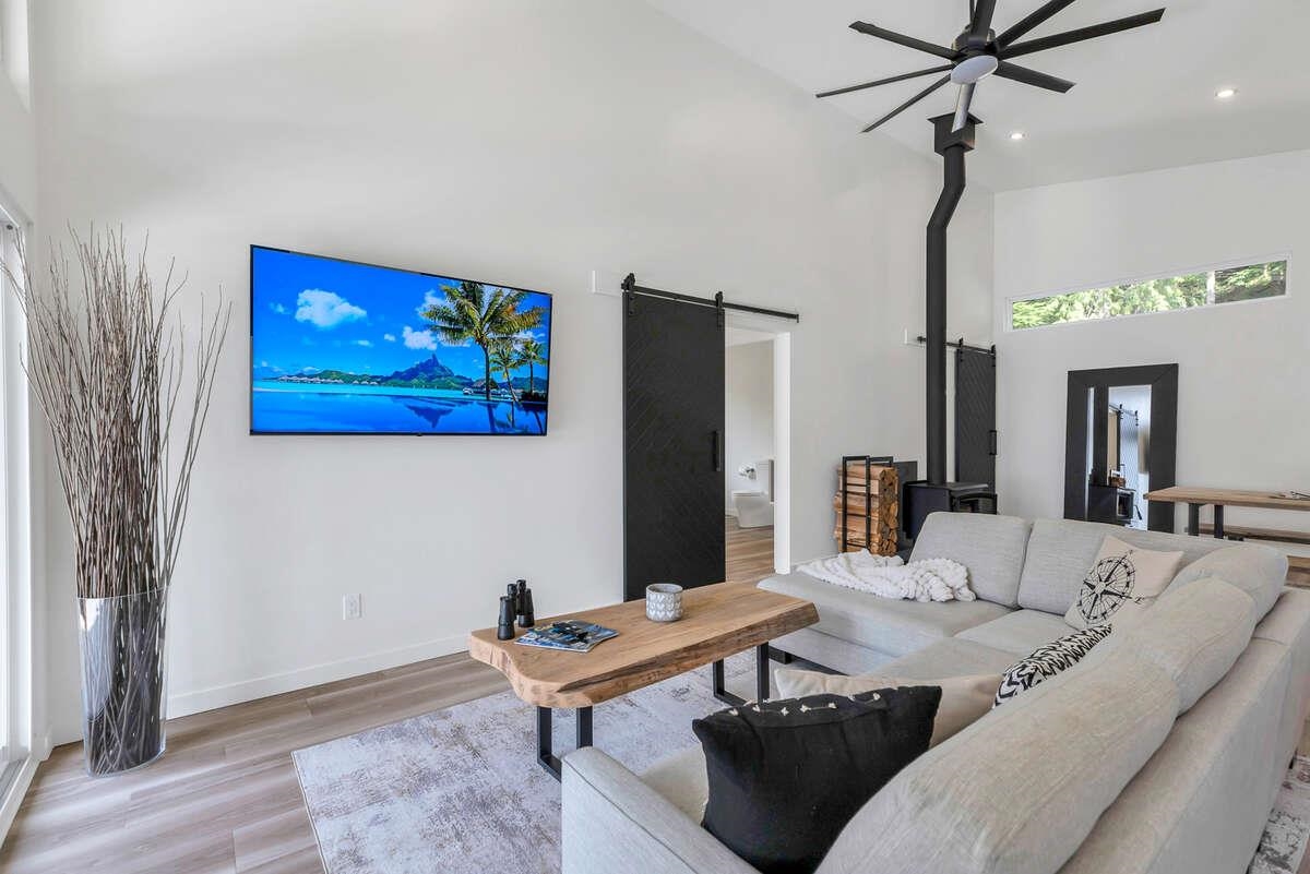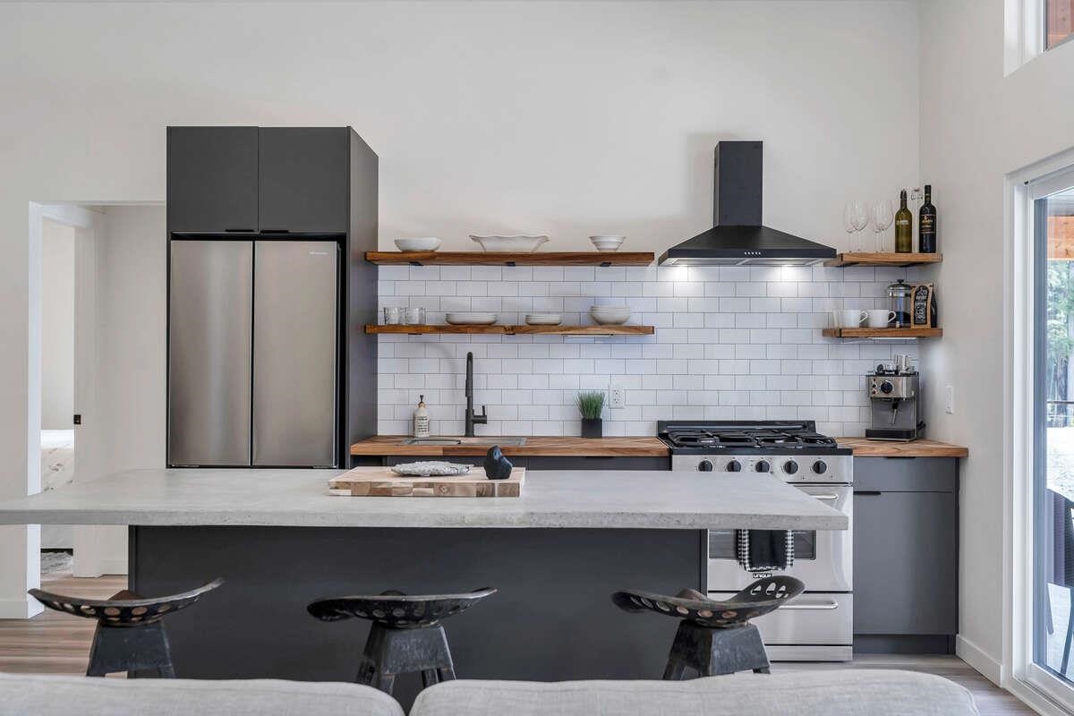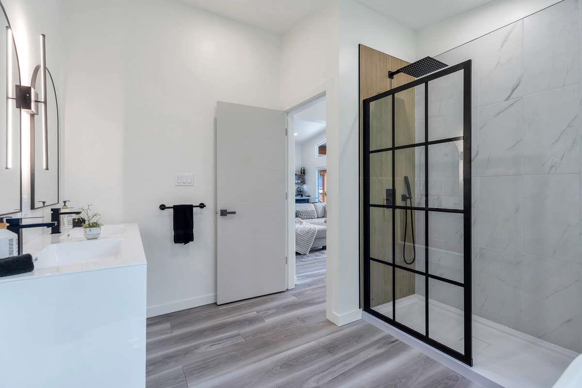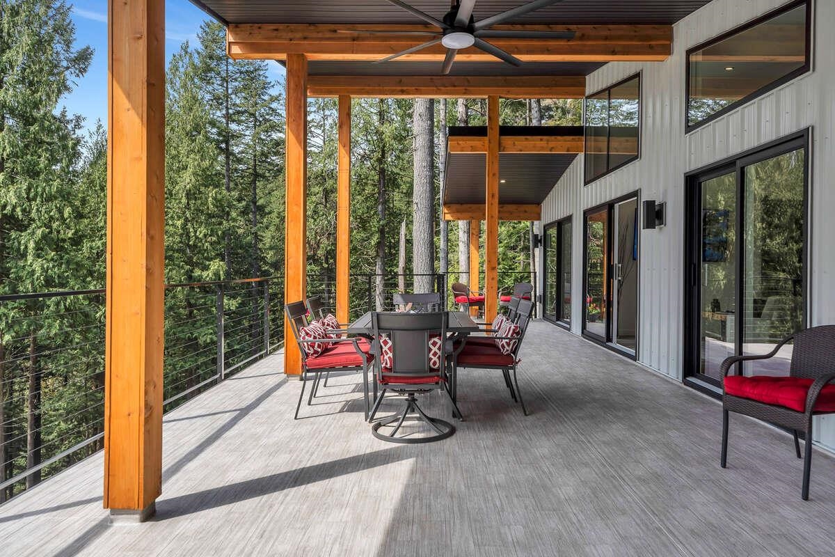 For more information, click the Brochure button. Cabin vibes, lake life, and laid-back living. This new boat-access-only retreat on Pitt Lake is just 15 minutes from Grant Narrows Regional Park, meaning adventure is literally in your backyard! With 3 beds, 2 baths, and 1312 sqft, this West Coast-style cabin is furnished, turn-key and sits on a sunny, south-facing, ½-acre lot, offering plenty of space to kick back, unwind and soak in the lake views. Every room spills out onto a 600 sqft covered deck, perfect for entertaining and golden-hour evenings. Barn doors, ceiling fans, rain showers, and a vessel tub keep things cozy and comfortable. Concrete and butcher block countertops add simple, stylish touches, while washer/dryer hookups let you settle in for the long haul.