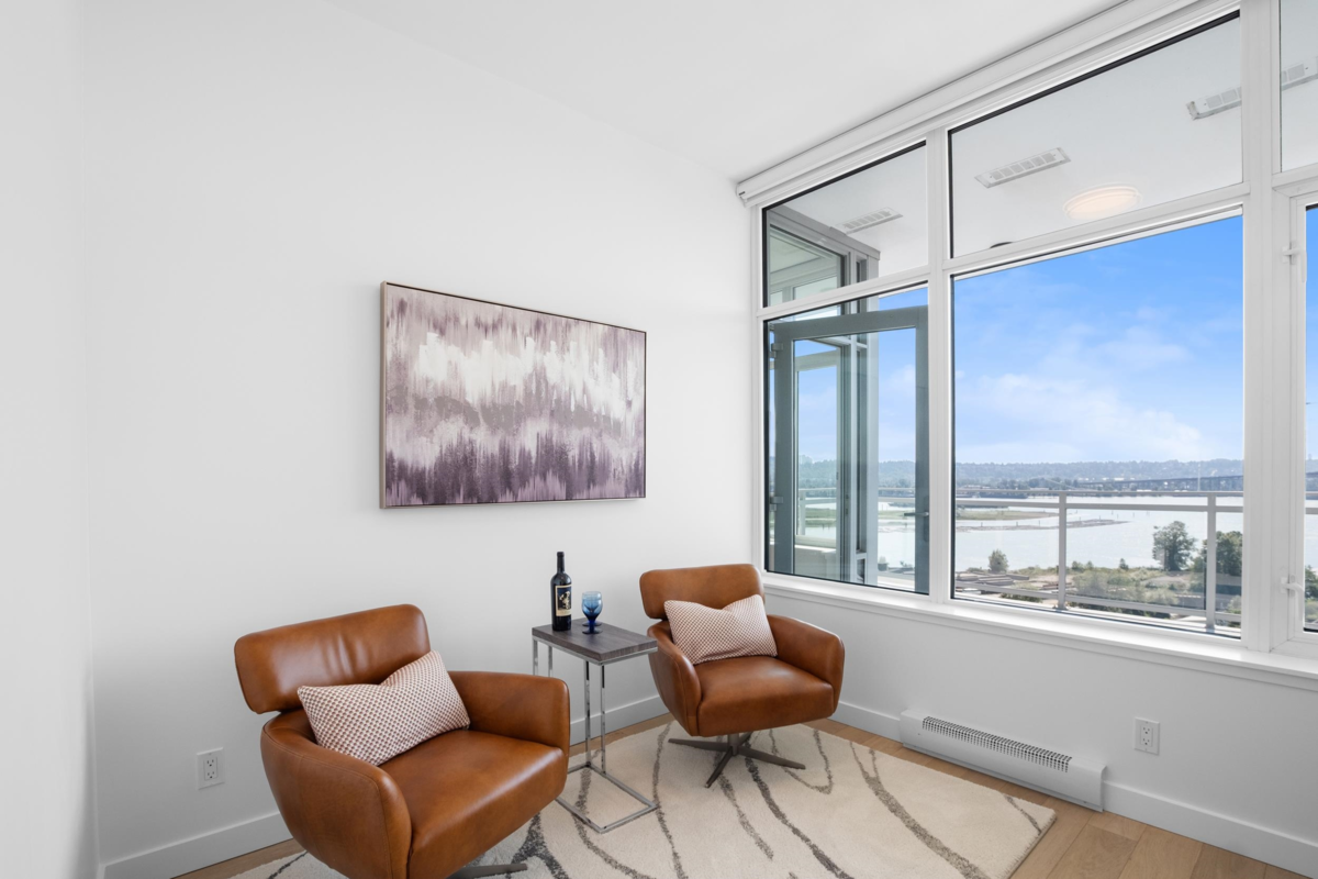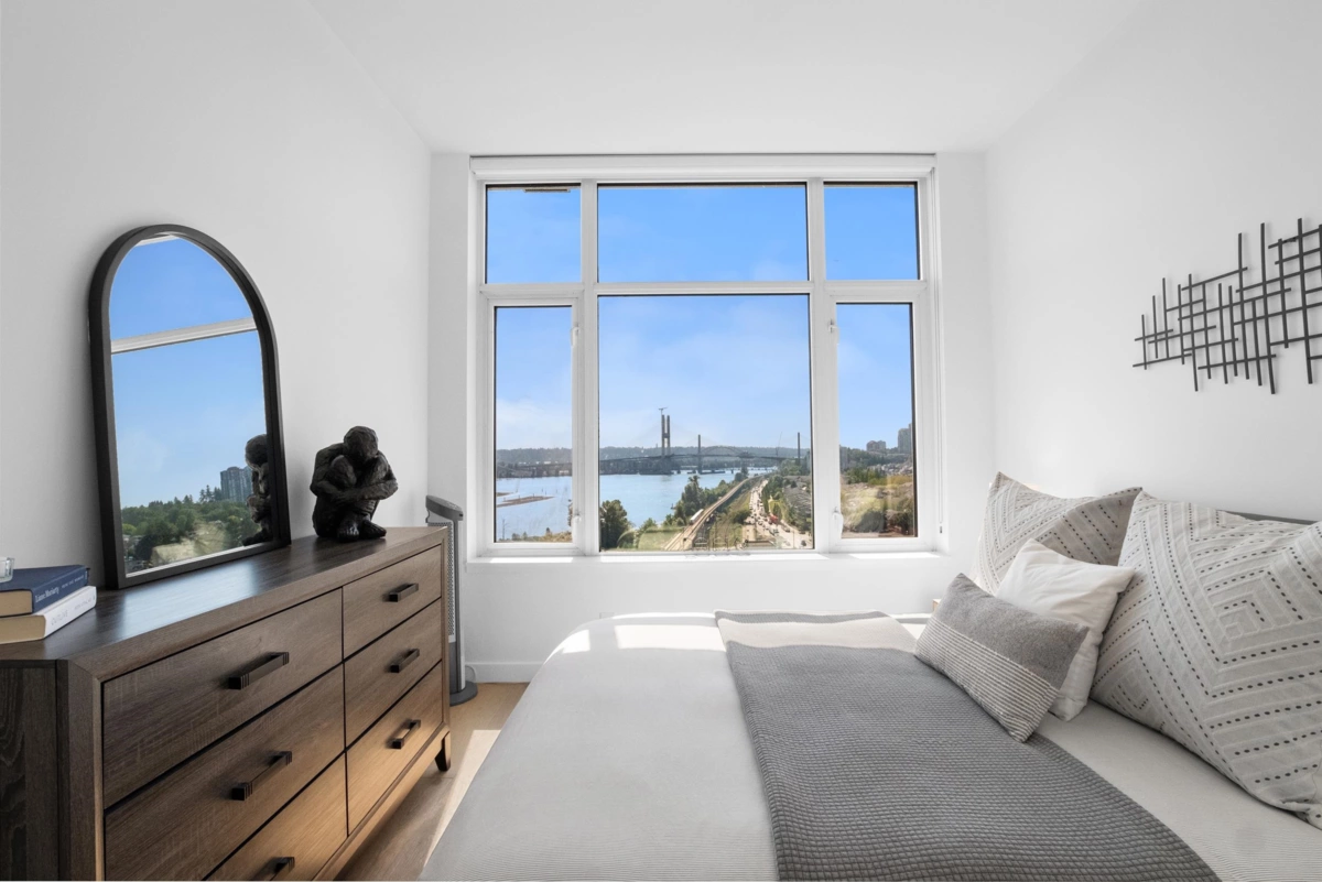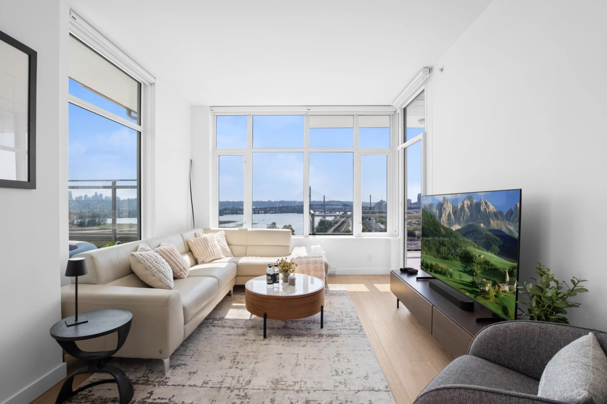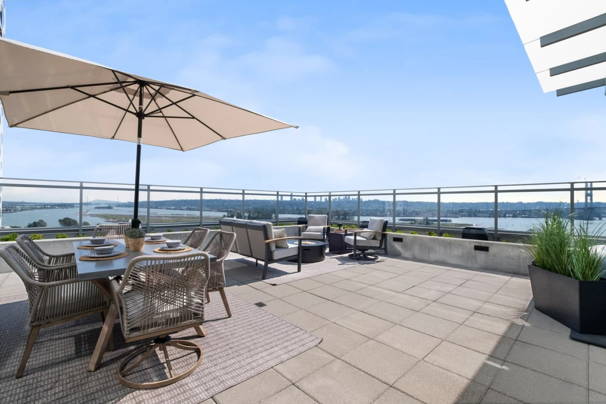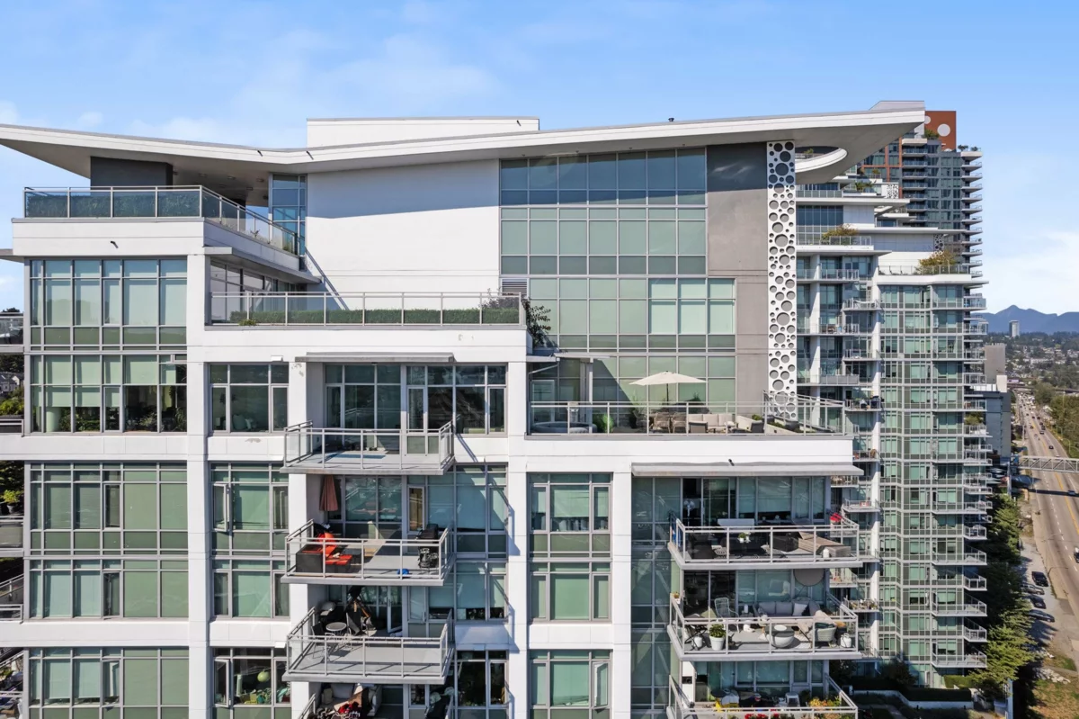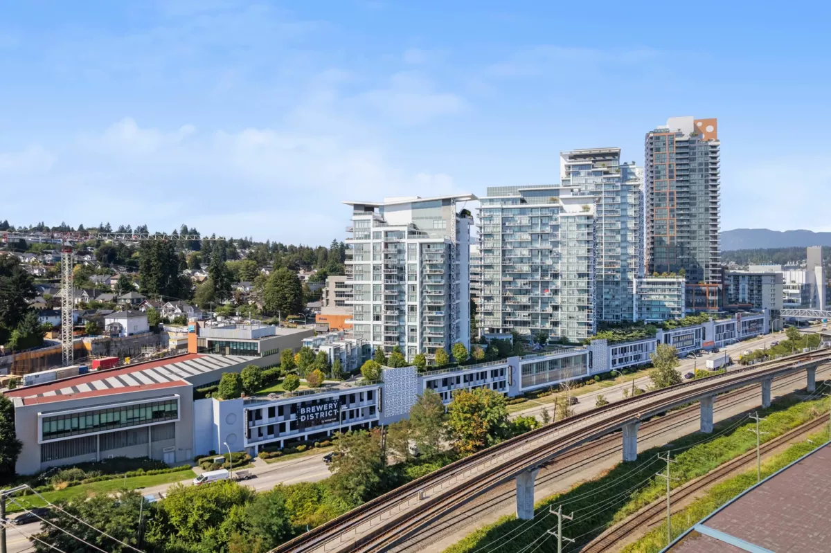 Rare sub-penthouse | 2 Bed, 2 Bath, 915 sq. ft. + 809 sq. ft. of outdoor living. A sexy, one-of-a-kind corner residence floating above the Fraser River with panoramic views of Mount Baker & Golden Ears. Featuring 9’ ceilings, floor-to-ceiling windows & $13K in luxury upgrades, this home flows seamlessly to 2 private patios — a 675 sq. ft. entertainer’s patio with gas/water hookups + a 134 sq. ft. retreat off the bedrooms. Resort-inspired living with a commercial gym, squash courts, yoga, steam, sauna & resident lounge. Includes 2 side-by-side parking + XL storage. Steps to SkyTrain, Royal Columbian Hospital, Save-On-Foods, Browns Socialhouse & Brunette Greenway. The Brewery District’s most exclusive lifestyle offering.