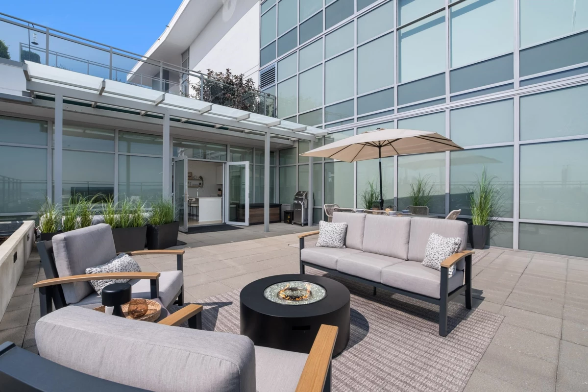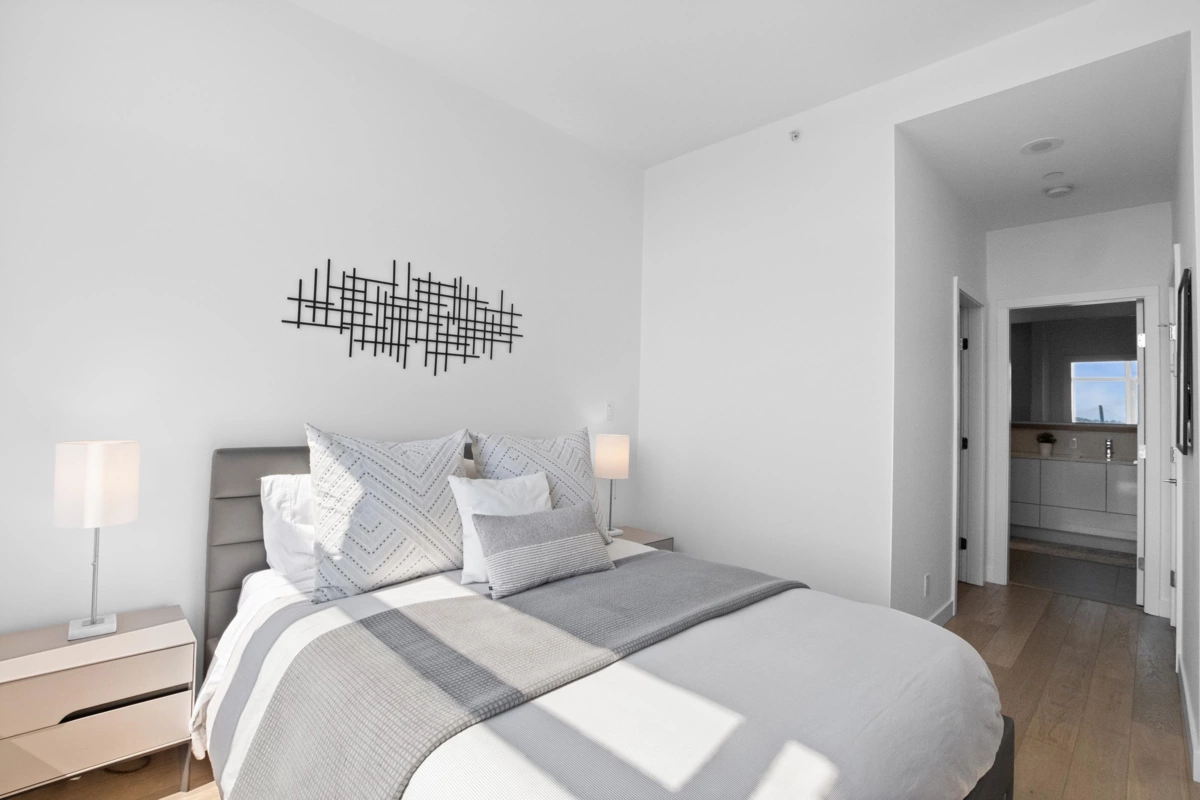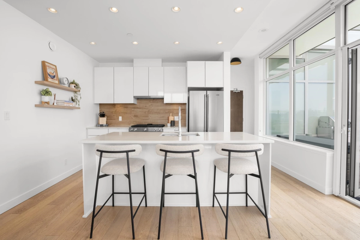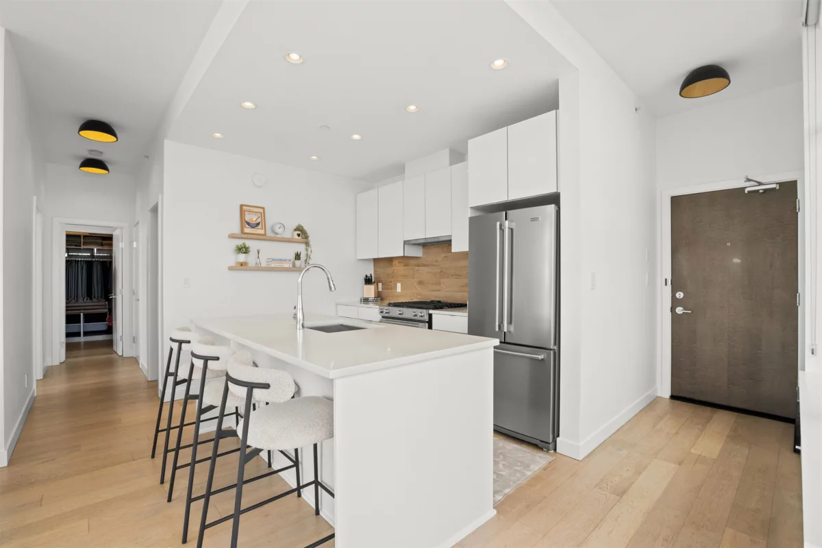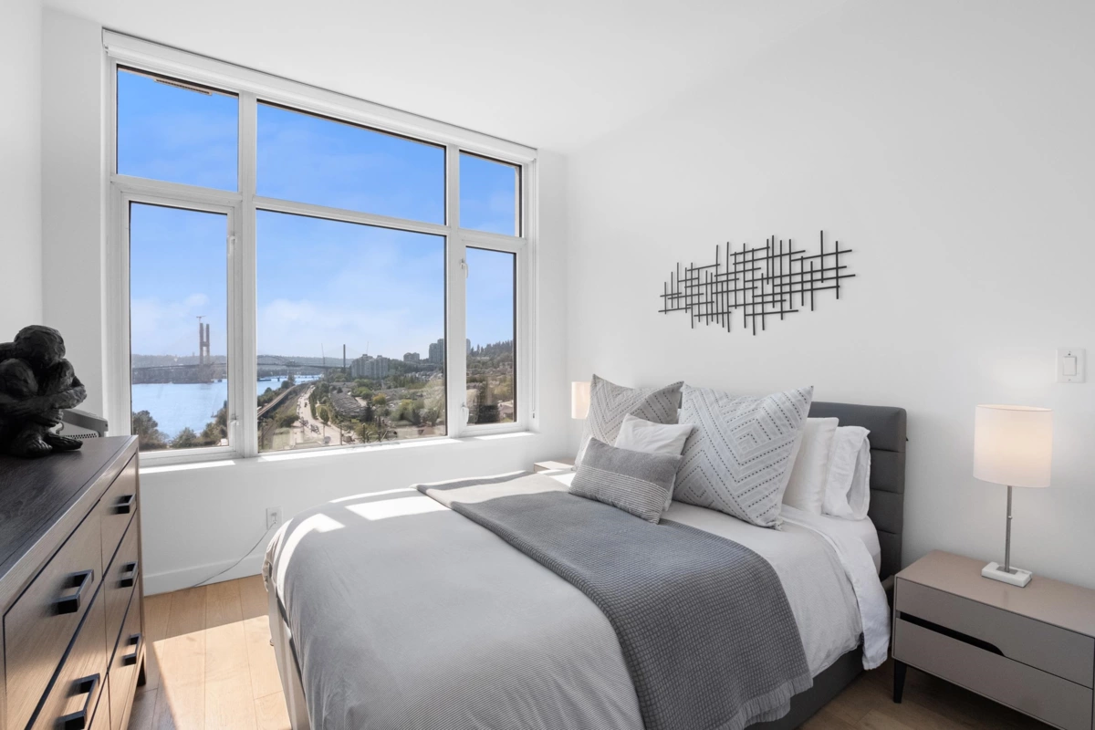 Rare sub-penthouse | 2 Bed, 2 Bath, 915 sq. ft. + 809 sq. ft. of outdoor living. A sexy, one-of-a-kind corner residence floating above the Fraser River with panoramic views of Mount Baker & Golden Ears. Featuring 9’ ceilings, floor-to-ceiling windows & $13K in luxury upgrades, this home flows seamlessly to 2 private patios — a 675 sq. ft. entertainer’s patio with gas/water hookups + a 134 sq. ft. retreat off the bedrooms. Resort-inspired living with a commercial gym, squash courts, yoga, steam, sauna & resident lounge. Includes 2 side-by-side parking + XL storage. Steps to SkyTrain, Royal Columbian Hospital, Save-On-Foods, Browns Socialhouse & Brunette Greenway. The Brewery District’s most exclusive lifestyle offering.