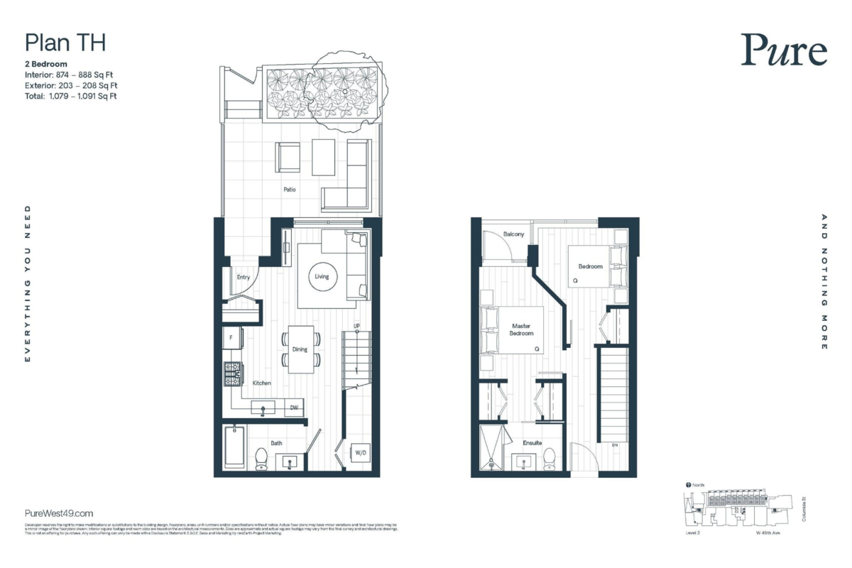 Introducing Pure, a 'biophilic centered' designed condo development with pure intention. Pure is centrally located at 49th & Columbia, across from the popular Langara Park, in the West Side’s rapidly evolving Cambie corridor. Coming home never felt this good. Comfort and functionality have been prioritized above all else. Our homes offer two nature infused colour palettes inspired by water and earth that give interiors a warm, seamless feel. This concrete Townhome plus EV ready parking features 2bed2bath on 2 levels. Easy access to your storage room which is conveniently located on the same floor. Contact us for our buyer's incentives. Completion Spring 2026