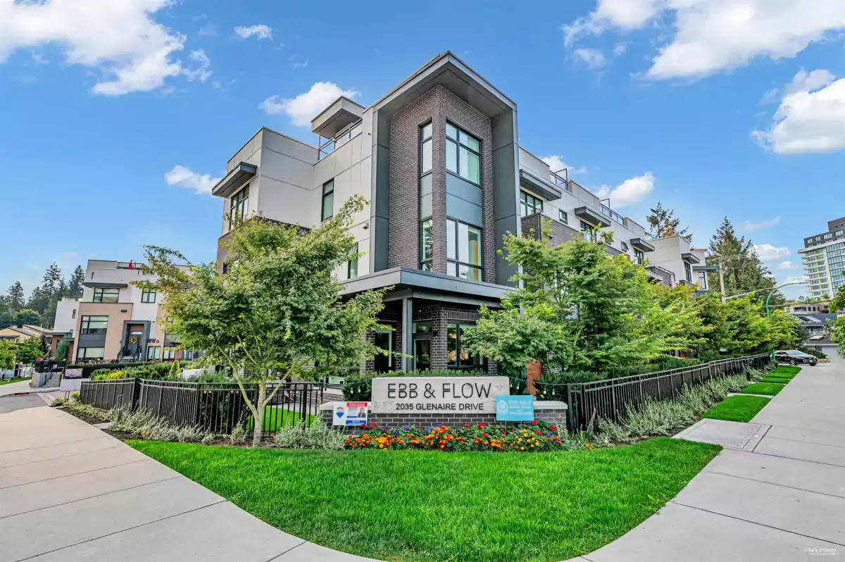 A true standout, the best unit at Ebb & Flow! This corner residence was fully upgraded w/ hardwood flooring carried into the bedrooms, a waterfall island, Bosch apps, A/C on every level, & elegant chandeliers! Offering 1,390sqft across 3 lvls + a 346sqft rooftop deck, this 3bed 3bath home is bathed in natural light, & the view of the bridge at night is something you need to experience! The landscaped yard is the most private in the complex, framed by hedges & greenery, & the sellers cover regular maintenance/cleaning out of pocket to keep it in pristine condition. Rare 4sidebyside parking stalls w/ 3EV chargers complete this exceptional property ($35k value each already paid by the seller!) PRIME LOCATION minutes from Park Royal, Grouse Mountain, Lions Gate Bridge.