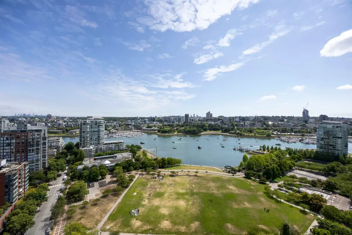 PANORAMIC WATERFRONT VIEWS at Governor's Tower! Experience unobstructed, breathtaking vistas of False Creek and David Lam Park through stunning floor-to-ceiling windows in this spacious 2 Bedroom + Den home. Thoughtfully designed with an open layout and abundant natural light, offering both comfort and functionality. Enjoy the tranquility of waterfront living right in the heart of vibrant Yaletown. Features include updated flooring and appliances (approx. 4 years old), generous in-suite storage, and a rare offering of 5 secured parking stalls — including triple tandem + side-by-side, ideal for collectors or multigenerational households. Comes with an oversized locker for even more convenience. Resort-style amenities include an indoor pool, fitness center, and 24-hour concierge. Steps from