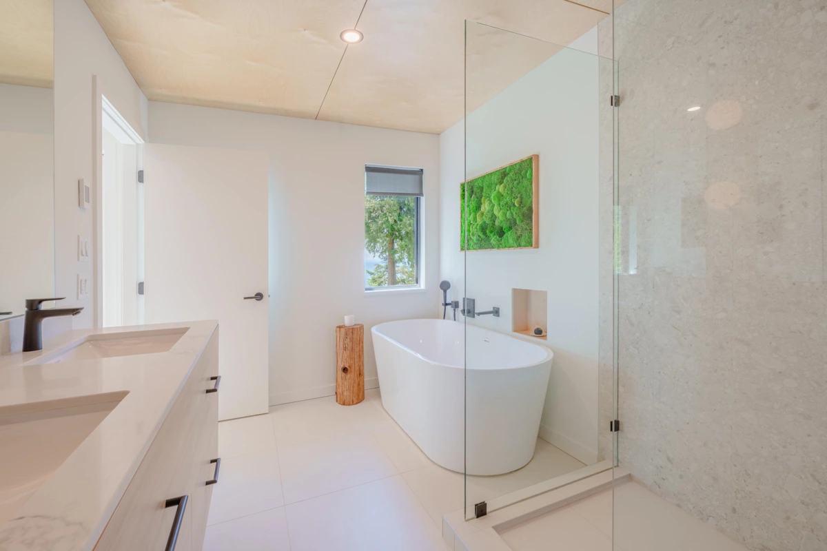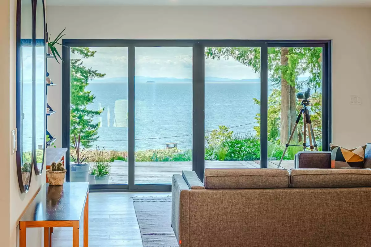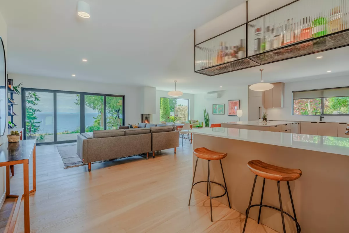 This stunning coastal home offers panoramic ocean views and every luxury upgrade imaginable. Inside: all-new plumbing, LED dimmable lighting, heat pump system, wide-plank white oak floors, a state-of-the-art Fisher Paykel kitchen with Caesar Stone counters, and a show stopping Bellfire fireplace. Spa-inspired bathrooms boast heated floors, European tile, and Duravit fixtures. A separate suite above the garage with its own entrance is ideal for guests or rental. Outside: new cedar siding, metal roof, custom decks, and mature gardens. Bonus: a charming 2-bed/2-bath timber-frame bunky with separate utilities. Underground irrigation, mature landscaping. Only a 5-min stroll to Secret Beach! Too much to list - please request the full feature sheet!