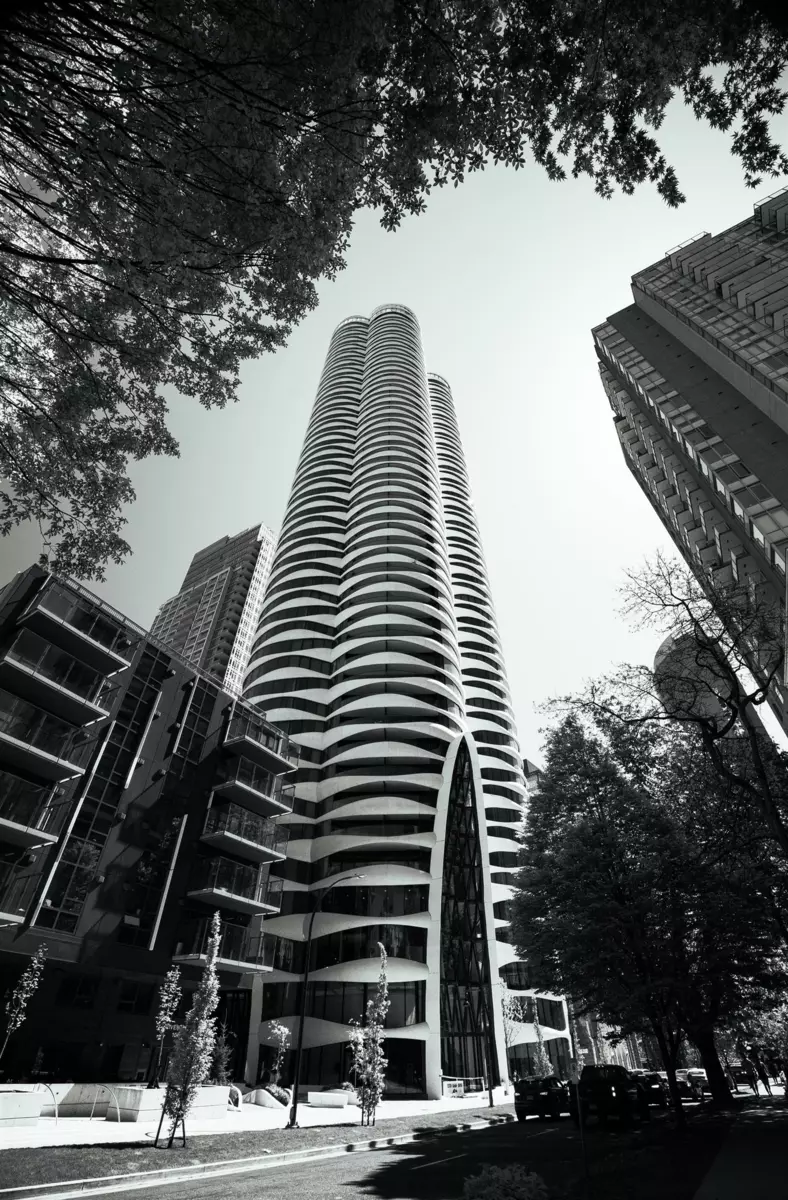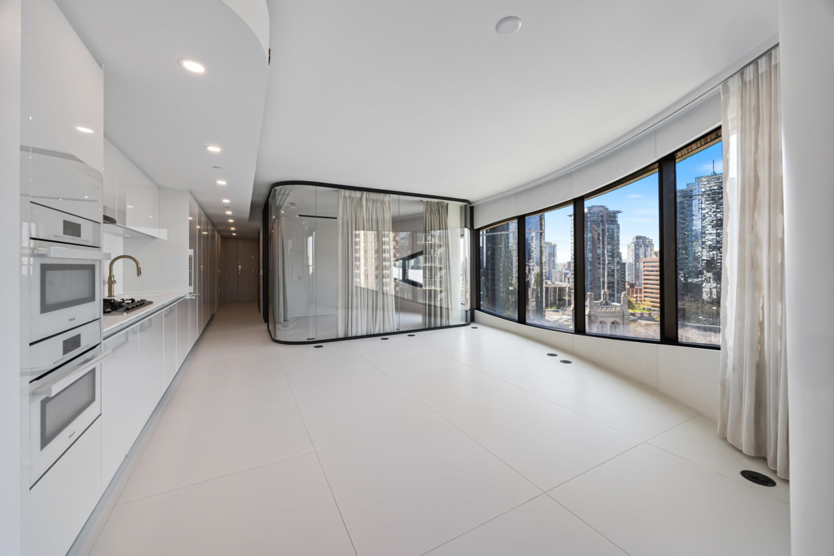 Float above the city on the 12th floor of The Butterfly by Westbank, a sculptural icon envisioned by Bing Thom. Where architecture meets art. This 1,214 sq.ft. sanctuary (including a 124 sq.ft. terrace) wraps you in soft curves and shimmering glass, with 1,090 sq.ft. of interior elegance that dances with light. Wake each morning to panoramic city, ocean, and mountain views, framed by floor-to-ceiling drapes and curved glass walls. Your Italian-crafted kitchen whispers sophistication with Miele appliances, porcelain tile flooring, and custom cabinetry sculpted for the modern aesthete. Certified LEED Gold and rich with resort-like pleasures: a 50m sky pool, rooftop retreats, serene sky gardens, and 24-hour concierge service. Not just a home...it is a symphony of space, design, and serenity.