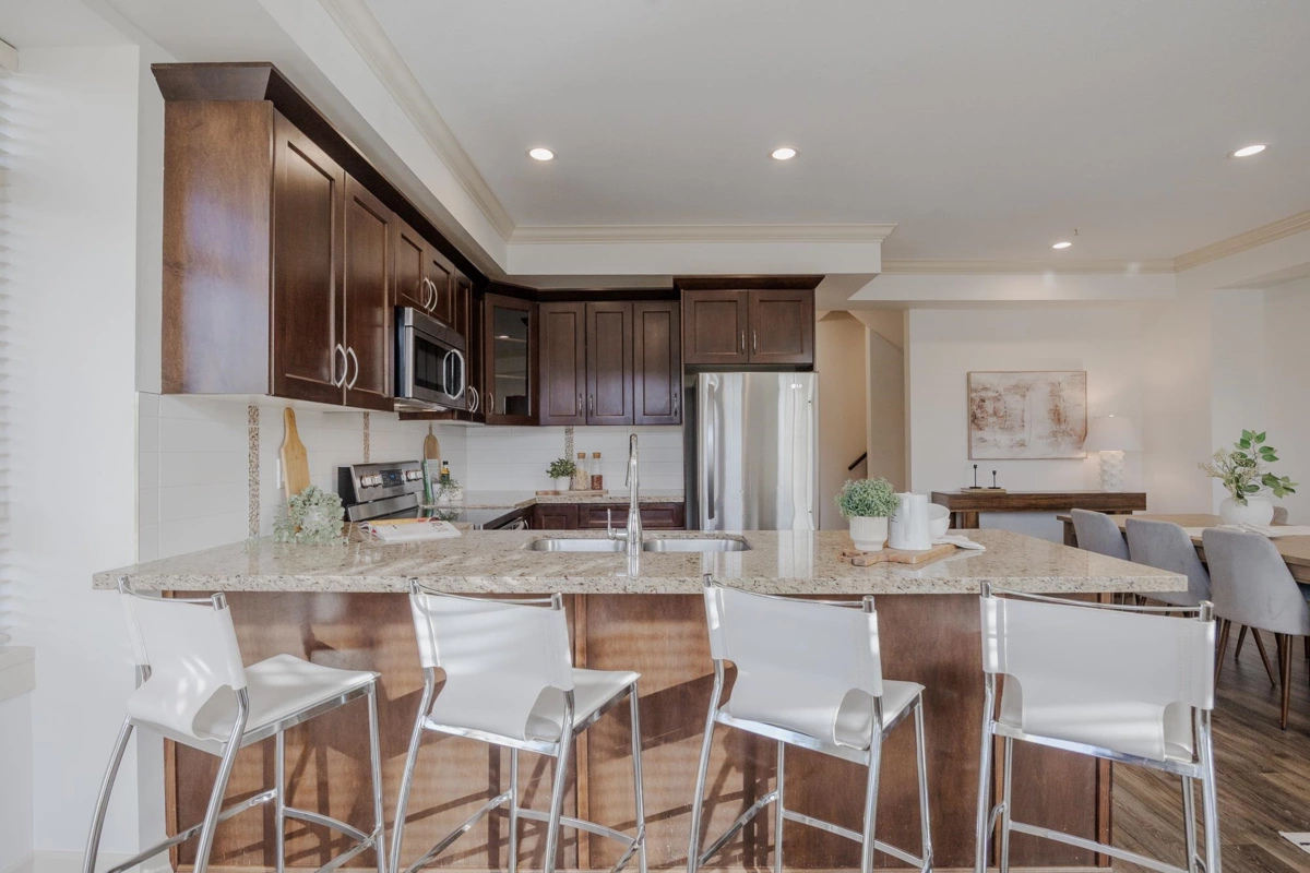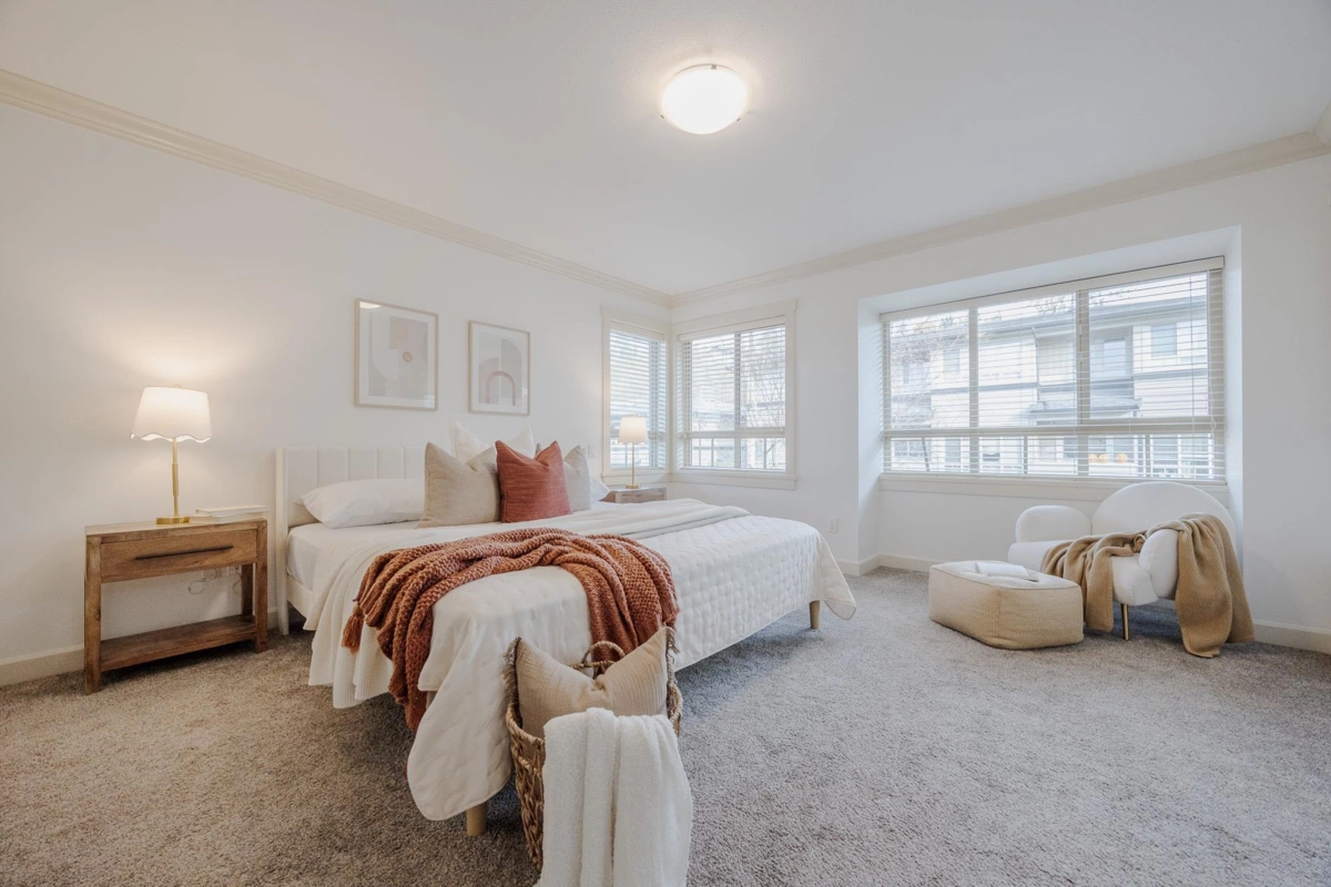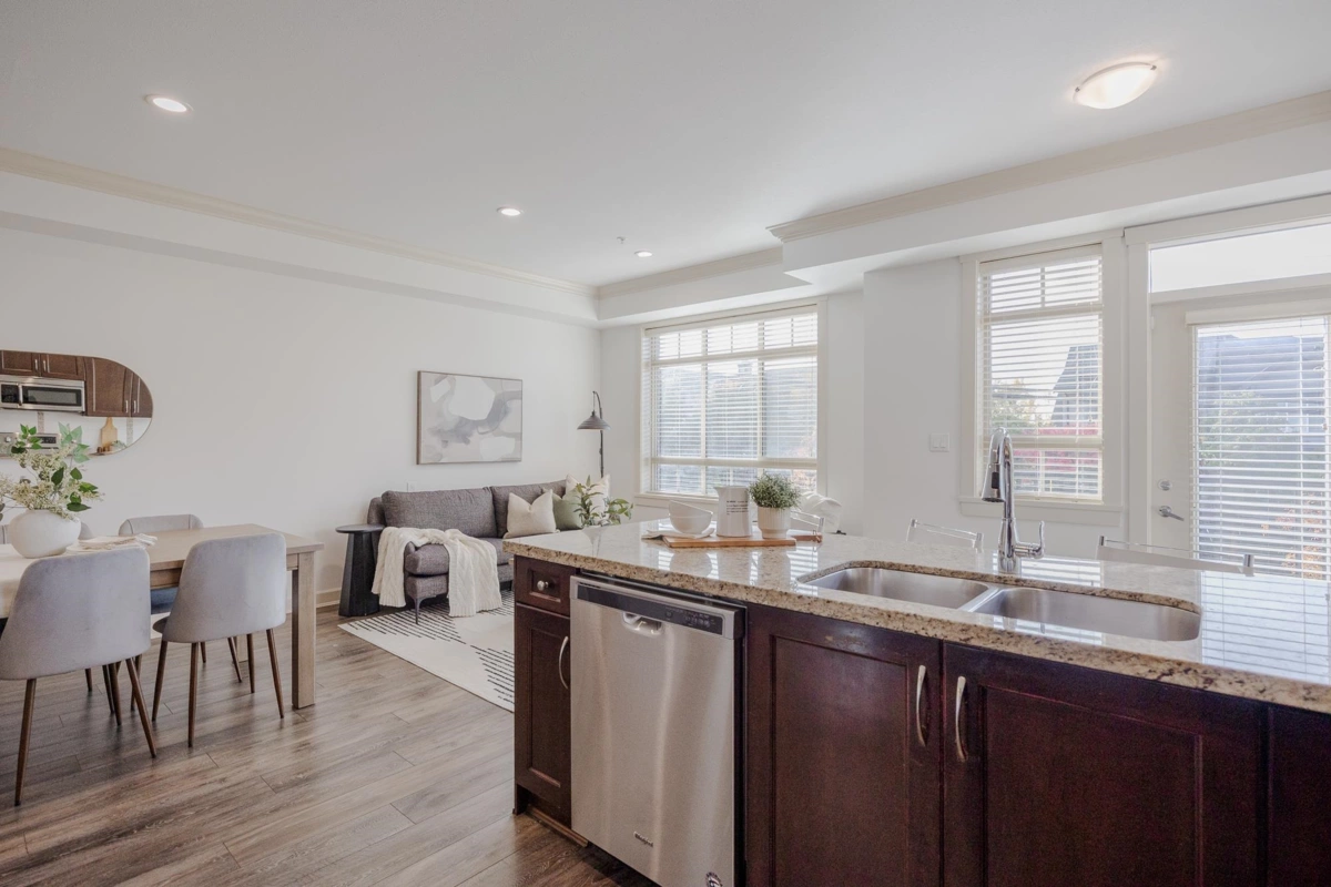 Don't miss this massive end unit townhome in highly coveted Silver Valley area. Welcome home to Silver Heights Estates. This large unit offers an open concept main floor with Maple Kitchen featuring Stainless appliances and granite counters. Gleaming wood floors create an inviting ambiance. The upper floor includes 3 bedrooms and a convenient laundry room. The primary bedroom is oversized with a walk-in closet and full bathroom. The basement includes an additional full bathroom and walk-out to the large fully fenced rear yard. Pets and kids are welcome here. Parking for 4 cars. What more could you ask for? Maybe a mountain view? Well guess what, you get that too. This is the one.