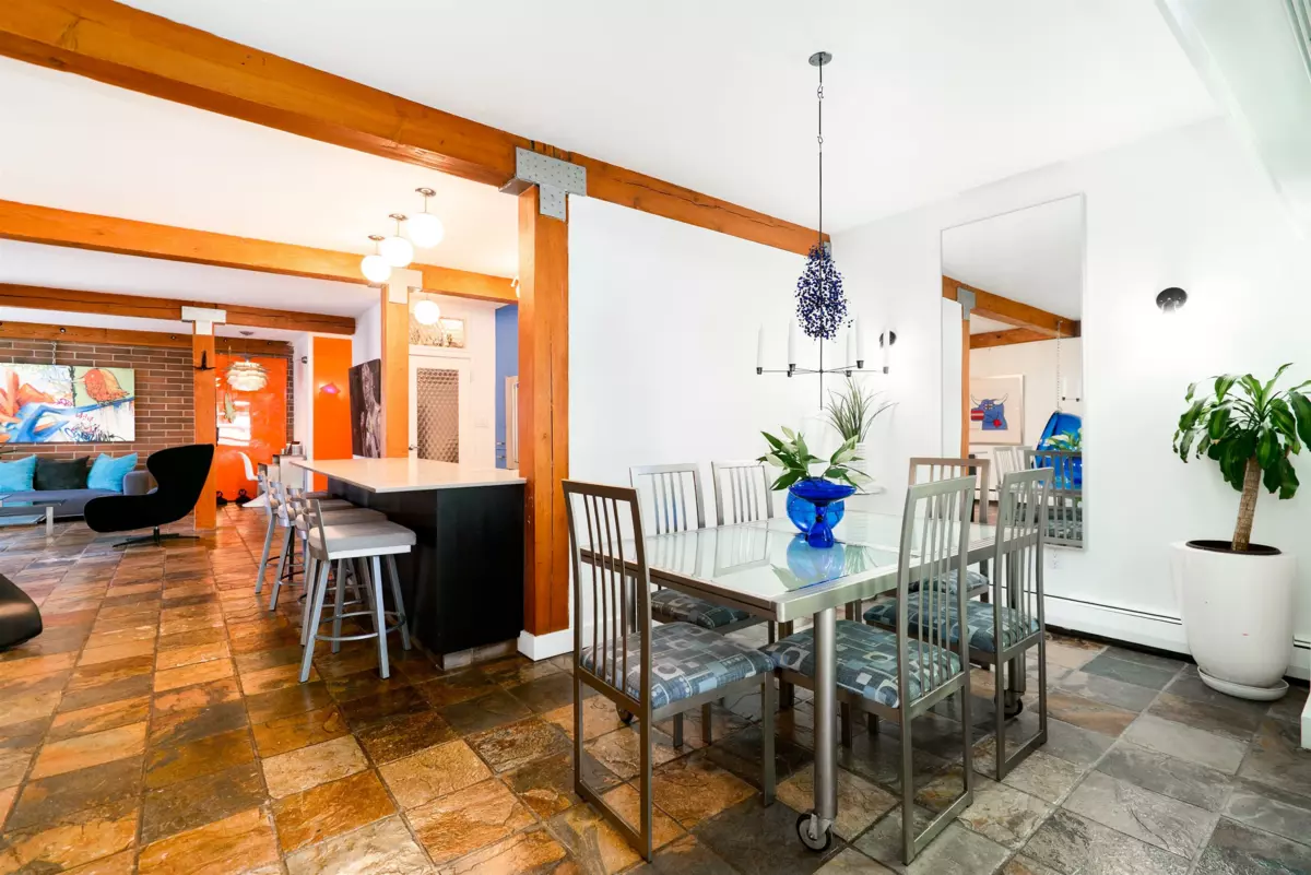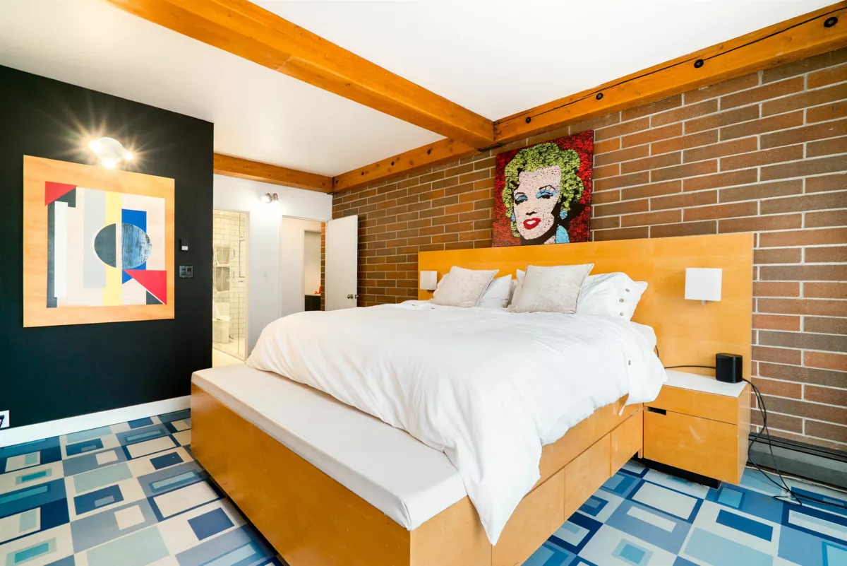 This one-of-a-kind vibrant urban retreat on coveted, tree-lined Nelson Street offers a rare blend of character & style in the heart of the West End. Spanning 1,308 sqft this corner home was originally a 3 bed/2 bath & has been transformed into a spacious 1 bed/2 bath sanctuary w/ in-suite laundry & the option to revert. Striking exposed wood beams, rich brick feature walls, and slate floors set an unforgettable tone. The chef’s kitchen boasts bold cabinetry, stone counters, & a generous space perfect for entertaining, while the open-concept layout flows seamlessly into the living & dining areas. Complete w/ 2 parking spots, this private oasis is just steps to beaches, shops, cafes and the best of DT living.