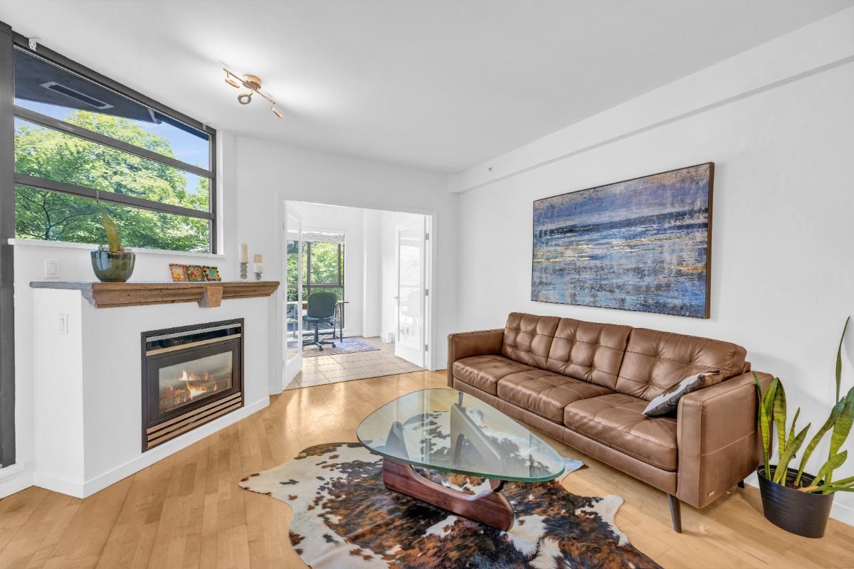 MASSIVE 1-Bed + Den + Solarium in the heart of Kitsilano. Nestled between Connaught Park and Arbutus Greenway, this 800 sq ft home brings the functionality of a 2 bedroom at the price of a 1 bedroom. The spacious layout includes a generous den—ideal for a home office or nursery—and a bright, oversized solarium that easily doubles as a second bedroom. The chef’s kitchen, outfitted with updated fixtures and a recently replaced range, flows into a bright and open living area with high ceilings and a cozy gas fireplace (gas included in strata fees). A near perfect walk score means a plethora of parks, an abundance of shops, and numerous cafes are all just a short stroll away. Two blocks from future Arbutus Station. Gym, social lounge, 1 parking.