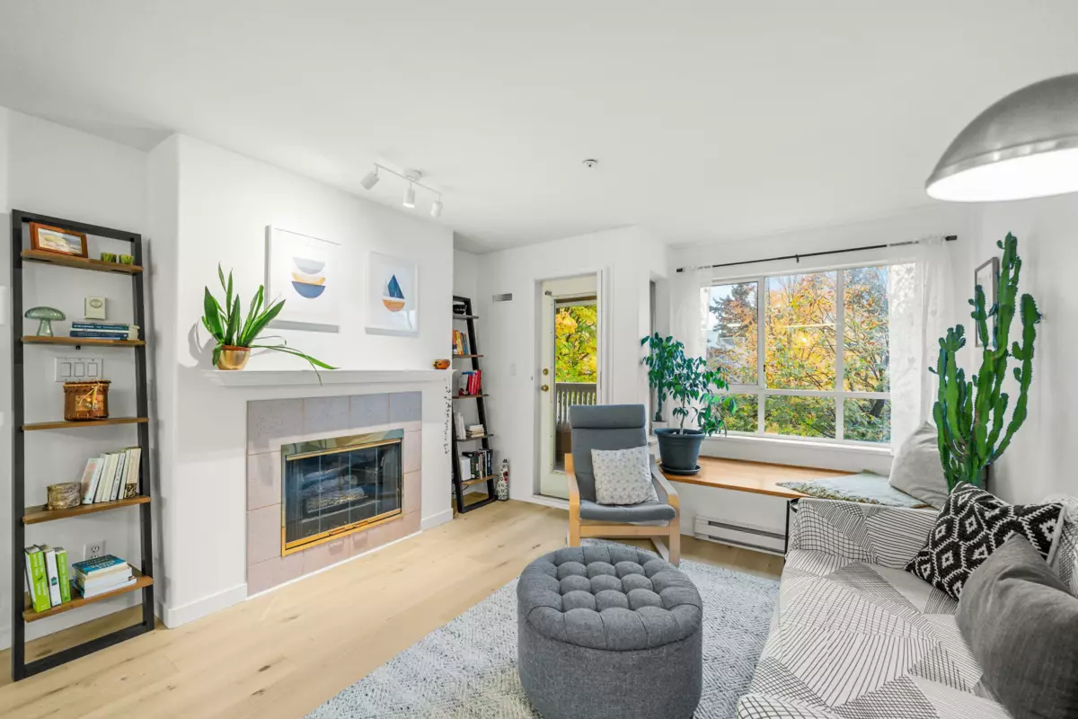 SERENE. MODERN. 1 bed w/ open layout & S/W treed outlook. Spacious patio, engineered oak flooring, cozy fireplace, extra-large window seat perfect for read/relax. Ample dining space, work-from-home nook, & in-suite laundry. Updated kitchen w/ Caesarstone counters, bar stool overhang, S/S LG appliances & abundant counter/cupboard space. Renovated bath w/ spa-like feel, quartz countertops, Riobel fixtures, soaker tub, & extra storage. Lg bedrm w/ picture window, walk-through closet & ensuite. Saltspring is quality-built, w/ proactive strata. Wonderful neighbors & comn garden plots. Pets & rentals allowed. Has parking, storage, bike rm, guest prk, & car wash stall. Byrne Creek steps away w/ 3 km trails. Blks to Skytrain & Kim's Mart. Highgate, Market Crossing 10 mins.