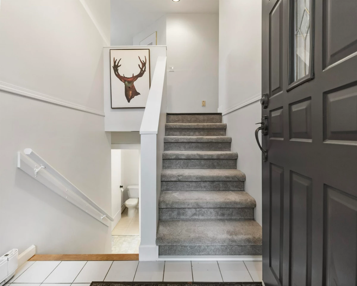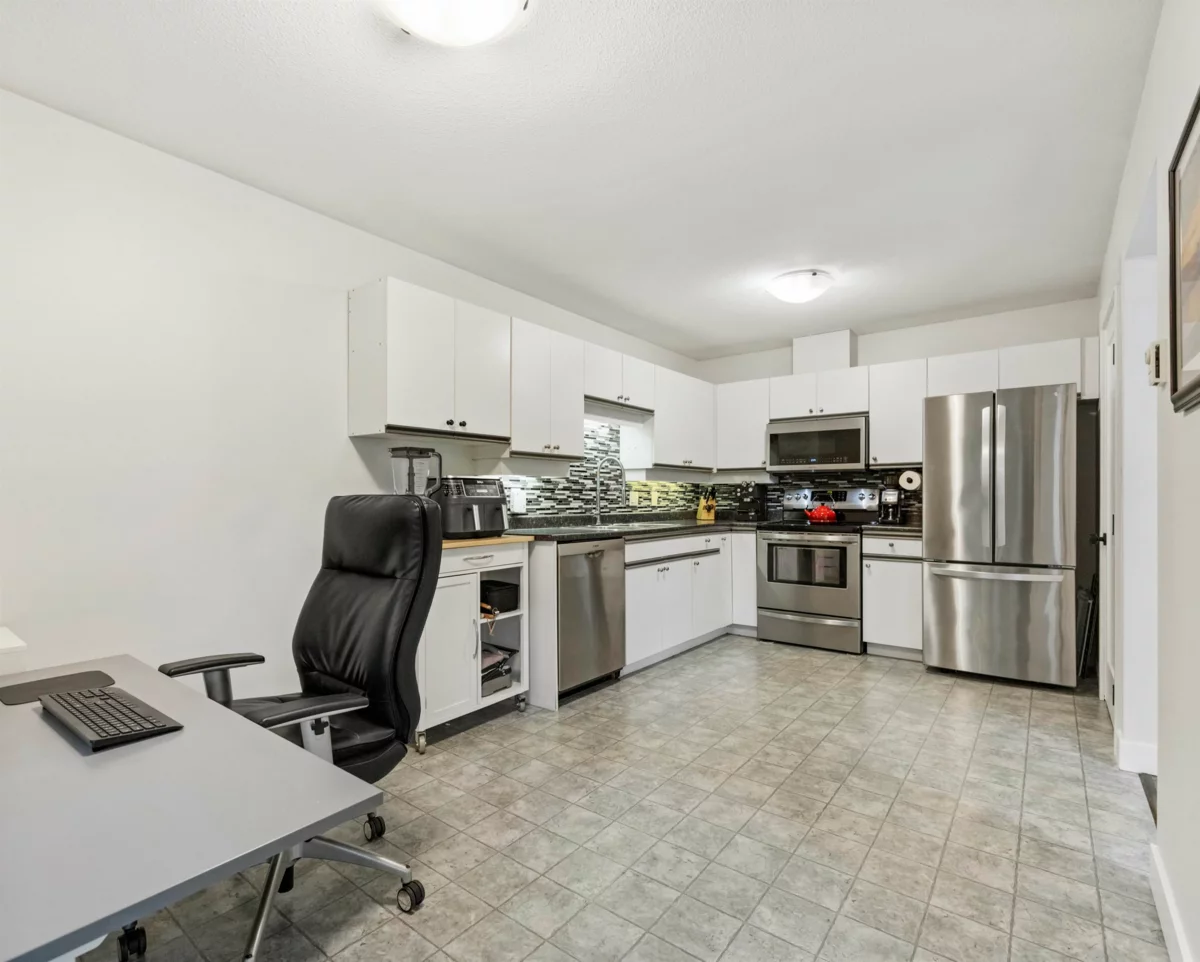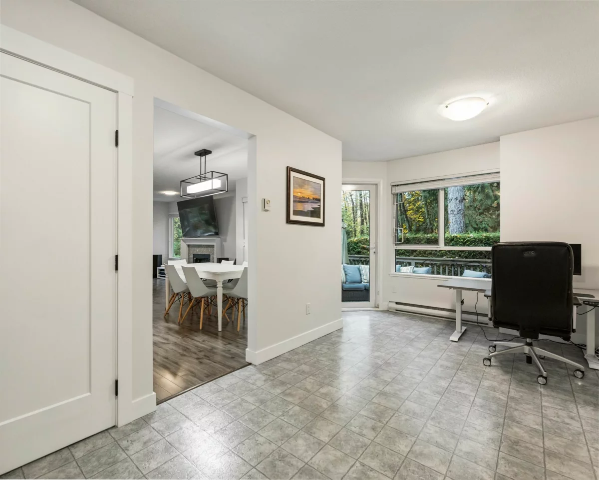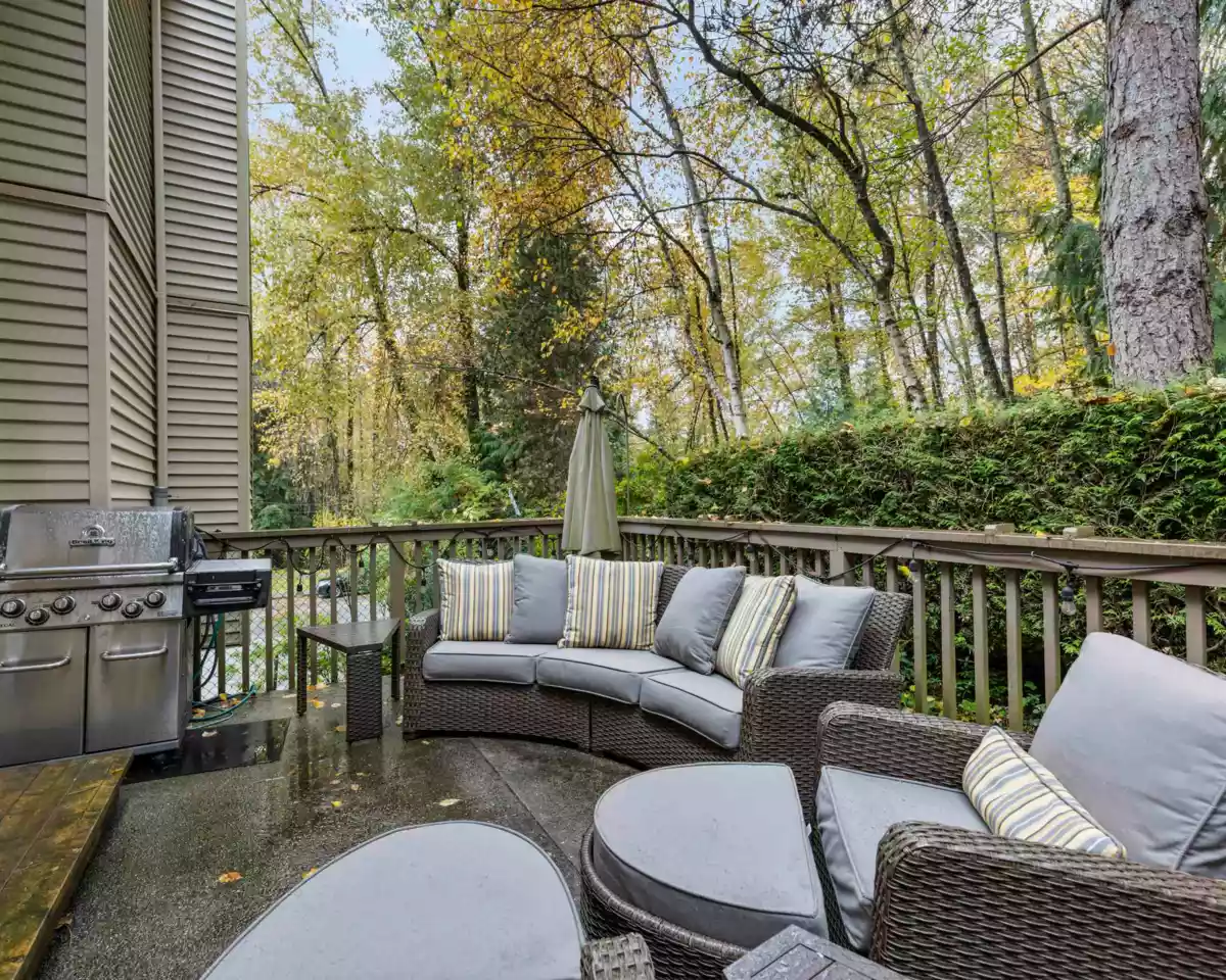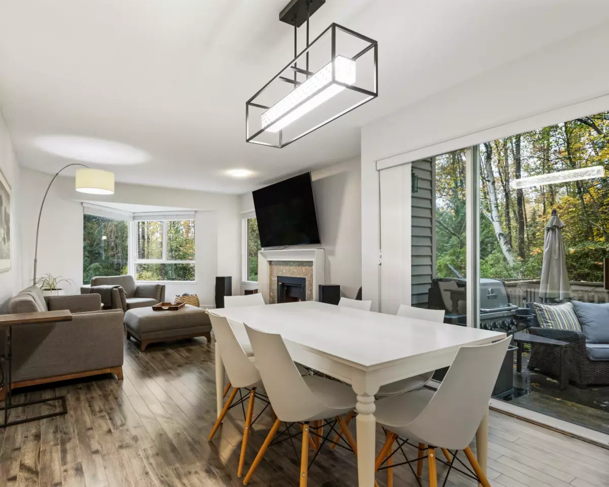 Discover this rarely available end-unit, two-level, south-facing, duplex style townhome tucked beside peaceful green space, offering the perfect balance of nature & city living. Bright, beautifully maintained, & move-in ready 3 BR, 3 bath home. Step inside to a spacious, light-filled LR with a cozy gas fireplace - perfect for relaxing evenings. The open DR area leads to a private 200SF patio, ideal for year-round outdoor enjoyment. Upstairs the expansive primary suite features a large ensuite and generous closet space and the 2nd BR & full bath. Downstairs, you’ll find a large 3rd BR & a full bath. The oversized (547SF) side-by-side double garage offers plenty of room for storage/workshop. This complex is located close to schools, parks, shopping, and transit. Don’t miss your chance.